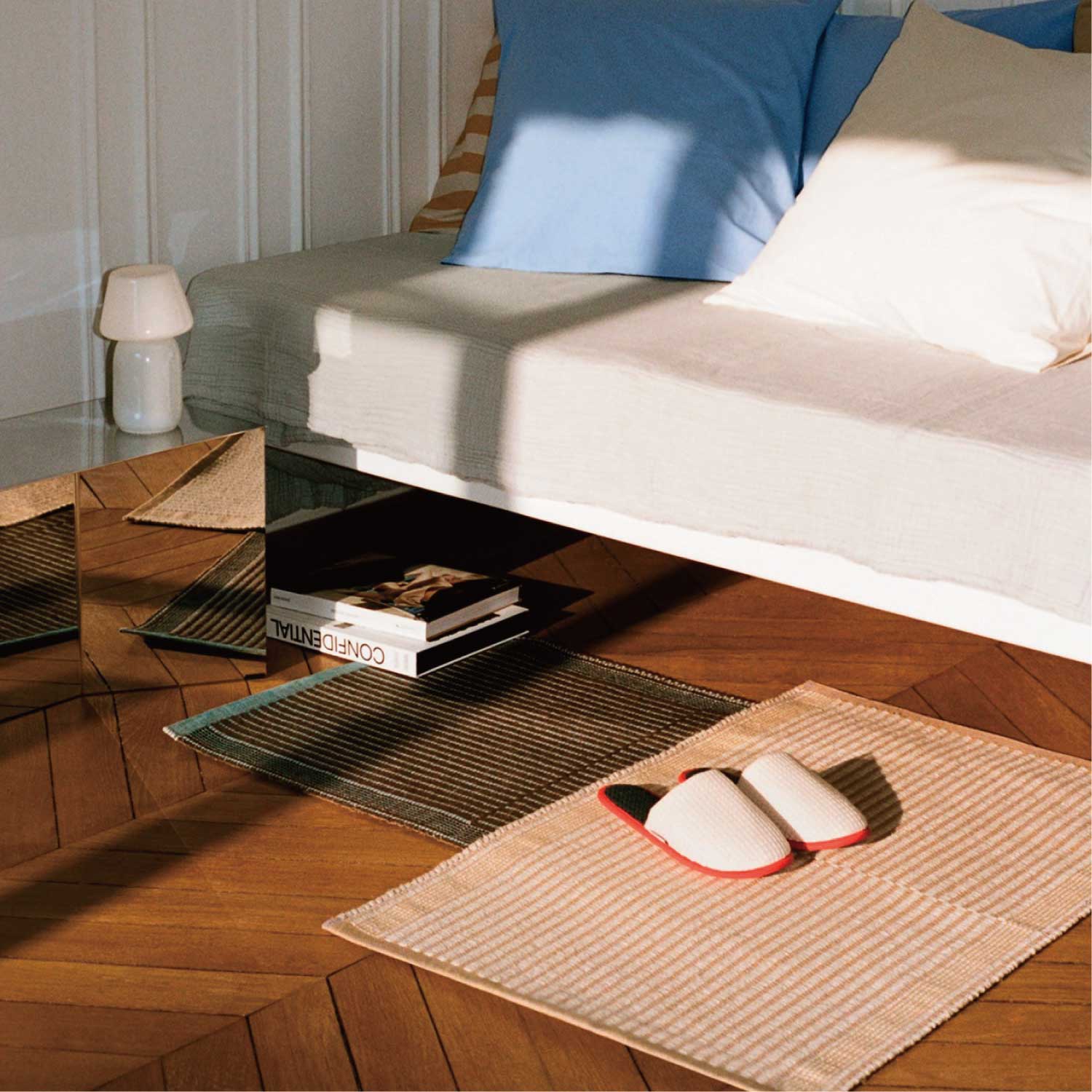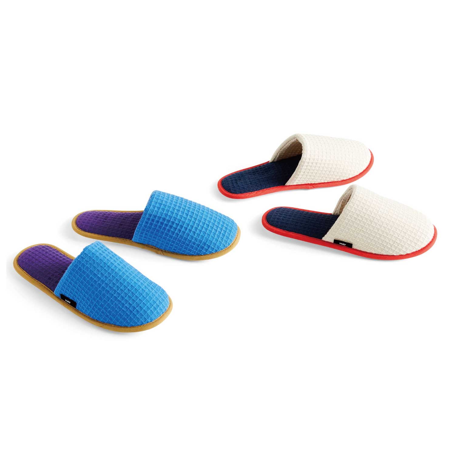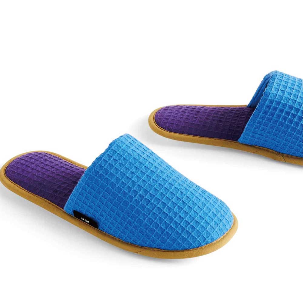立体的なワッフル生地にすることで柔らかさが増し、履き心地のよいスリッパに仕上げました。また、吸収性の良いコットンを採用。滑り止めとしてラバーソールもついているので、日常使いに最適です。フリーサイズ。