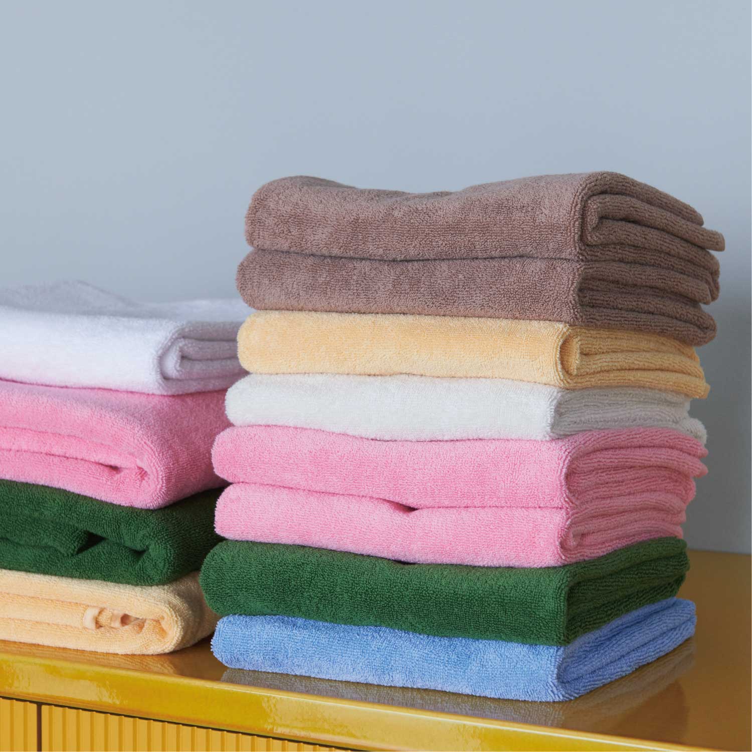 丈夫なOEKO-TEXⓇ(エコテックス)コットンを使用し、ソフトな風合いに仕上げたMONO TOWELシリーズは、HAYのロゴを型押ししたクラシックなデザインが特徴のタオルです。洗い替えがしやすく大判なので、タオルケットやお子様の肌掛けとして、ソファや車に常備しておくと便利です。
