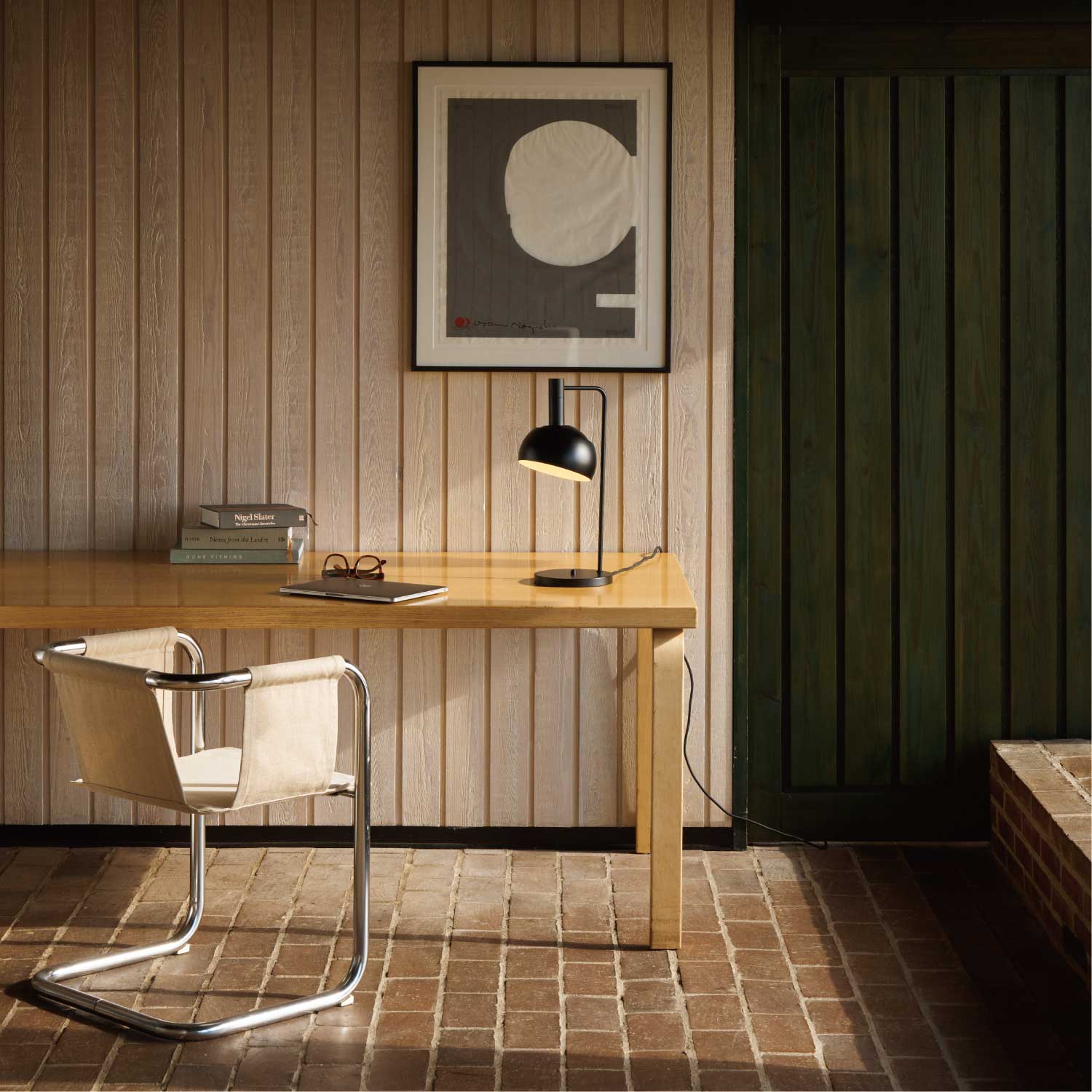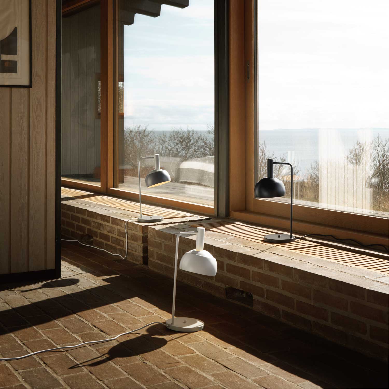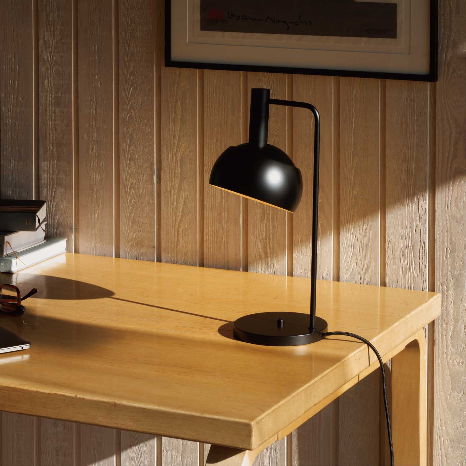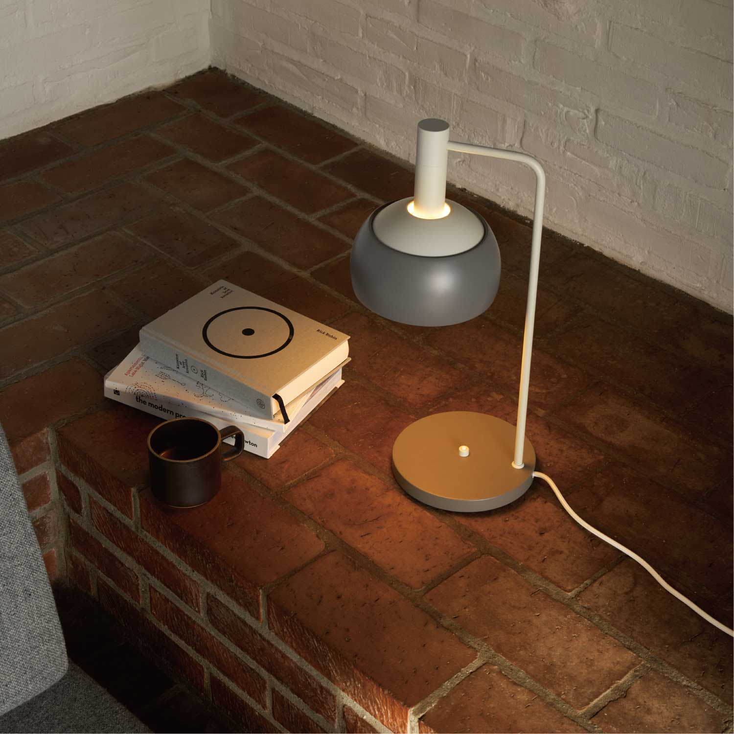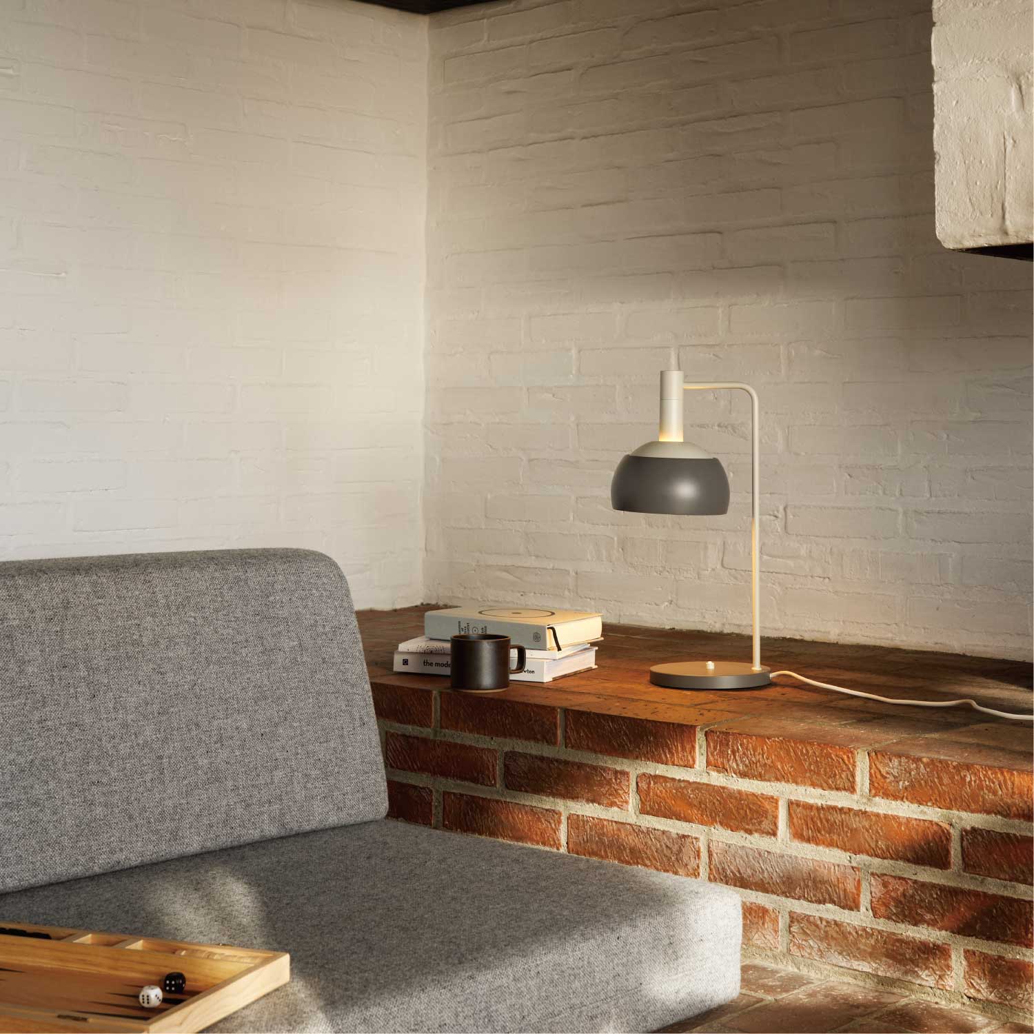 FJ エレメンツ テーブルランプは下方に光を放ち、眩しさのない、目に快適な光を生むディフューザーを備えています。上下2つのシェードで構成され、下部シェードを回転させて光の向きを調整することが可能です。さらに、上部シェードとハウジング部の隙間から、ソフトな光を上方に漏らします。