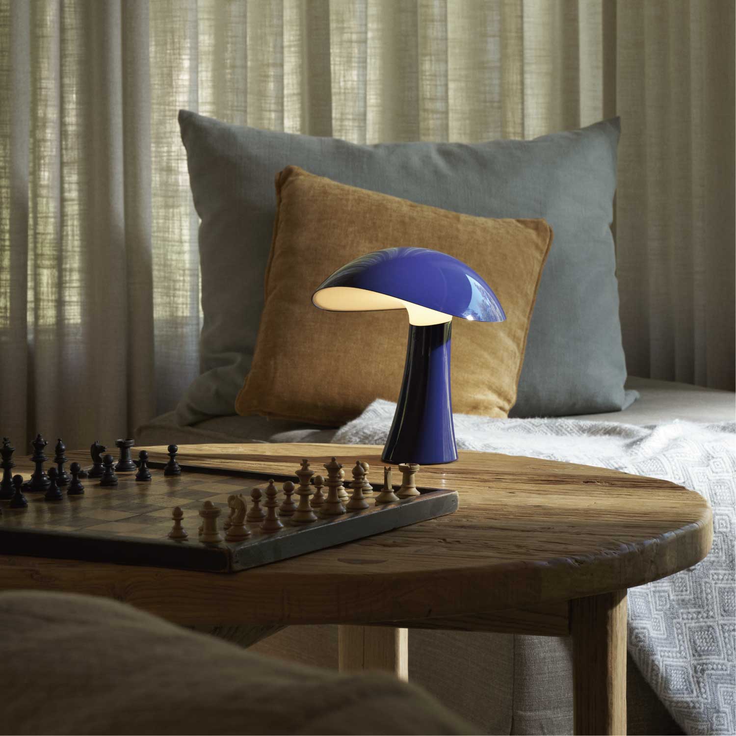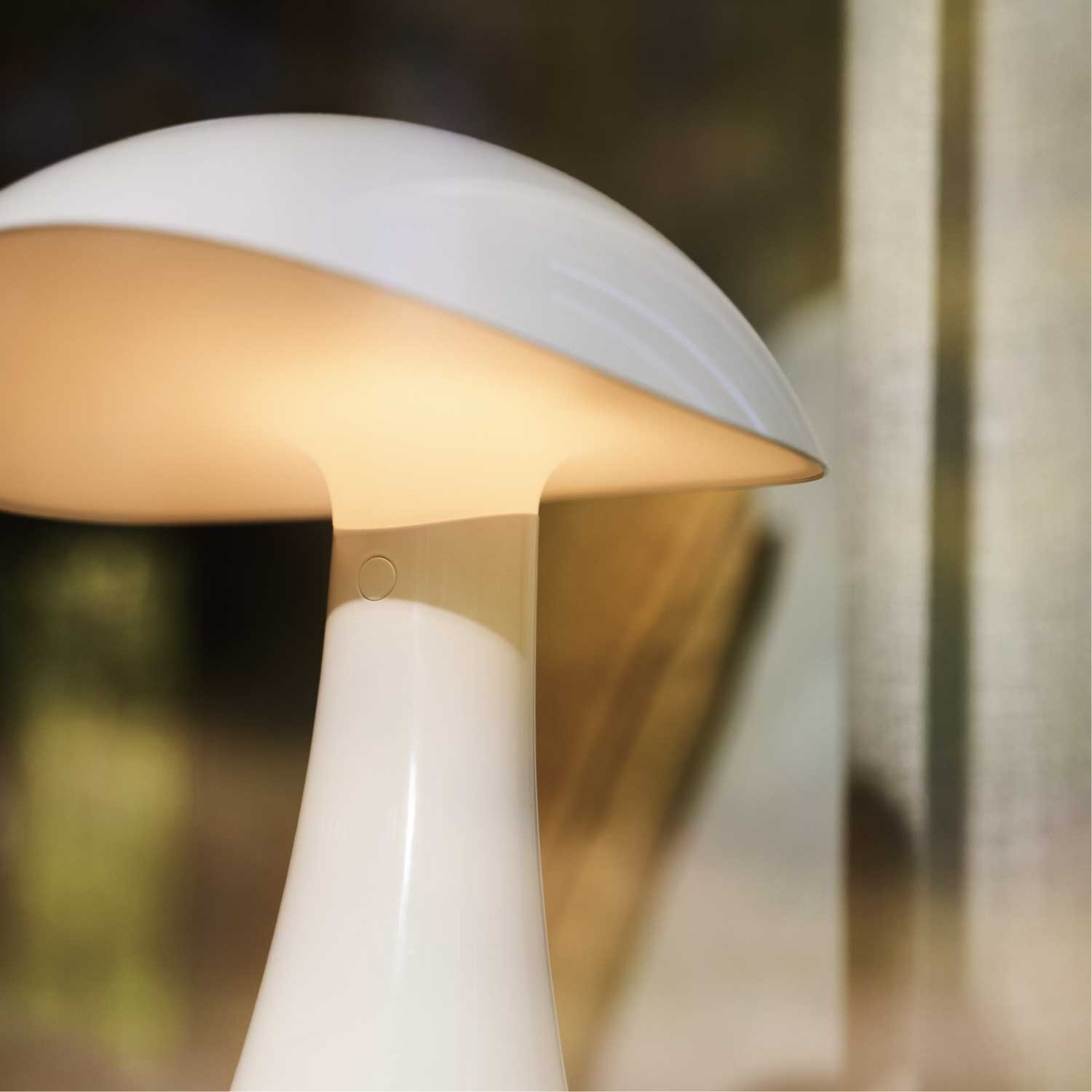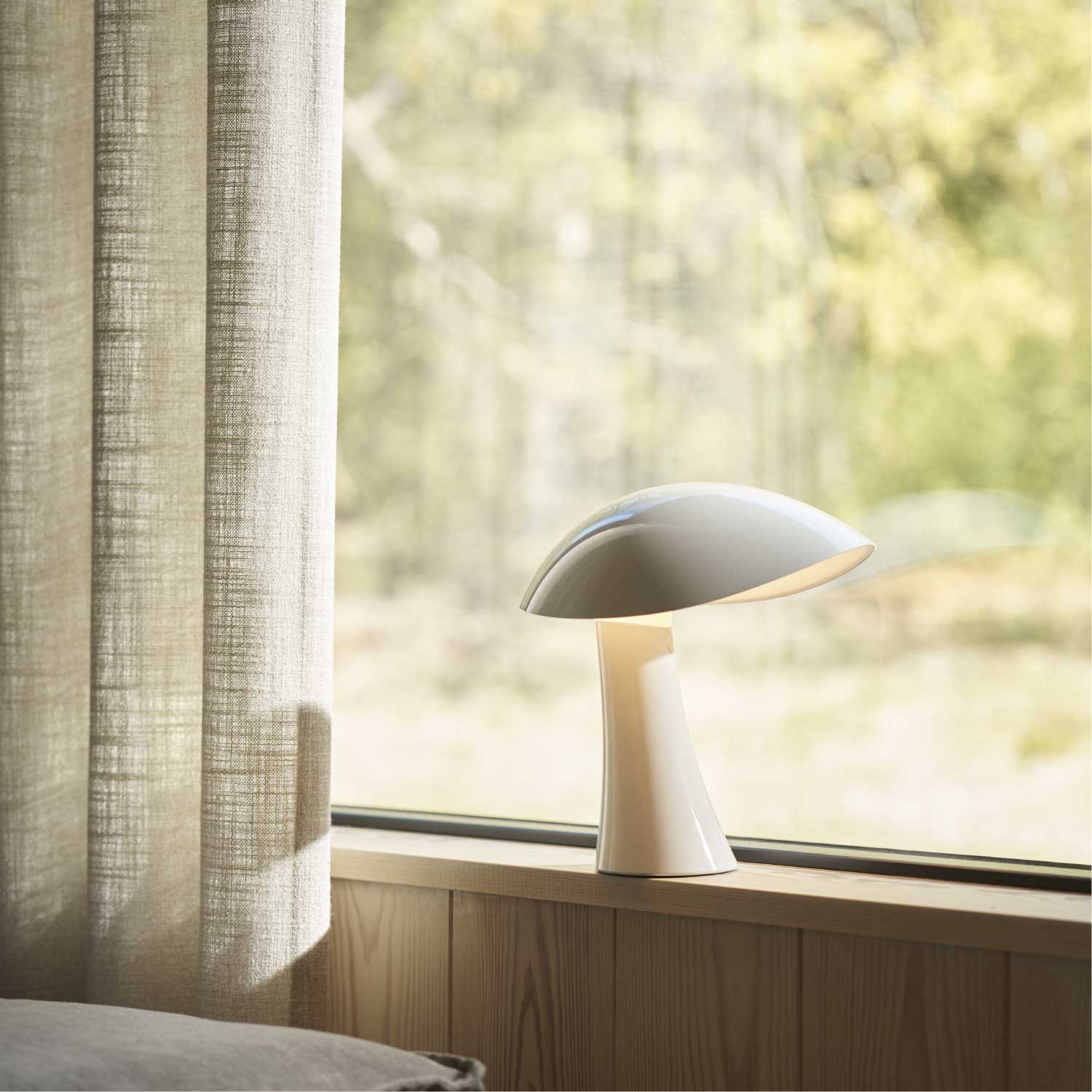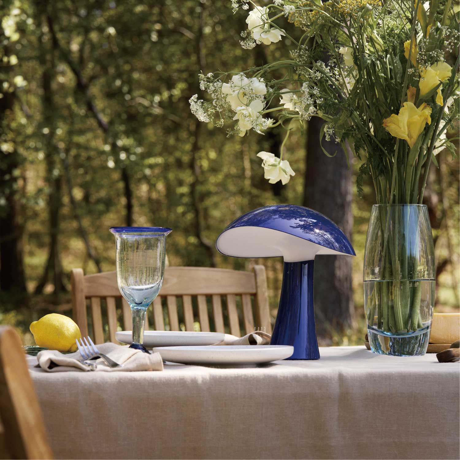 ガブリエル・タンは、大きな帽子のうねるような曲線からRumee ポータブルランプを着想しました。そのデザインは自然界の要素を想起させ、彫刻的です。近い位置から卓上を照らしますが、卓上面での反射光が間接照明となって周囲を柔らかく照らします。下面にはディフューザ―が装着され、グレアがなく、調光も可能です。Rumee ポータブルランプは見た目に美しいだけでなく、持ちやすく、場所から場所に手軽に持ち運ぶことができます。