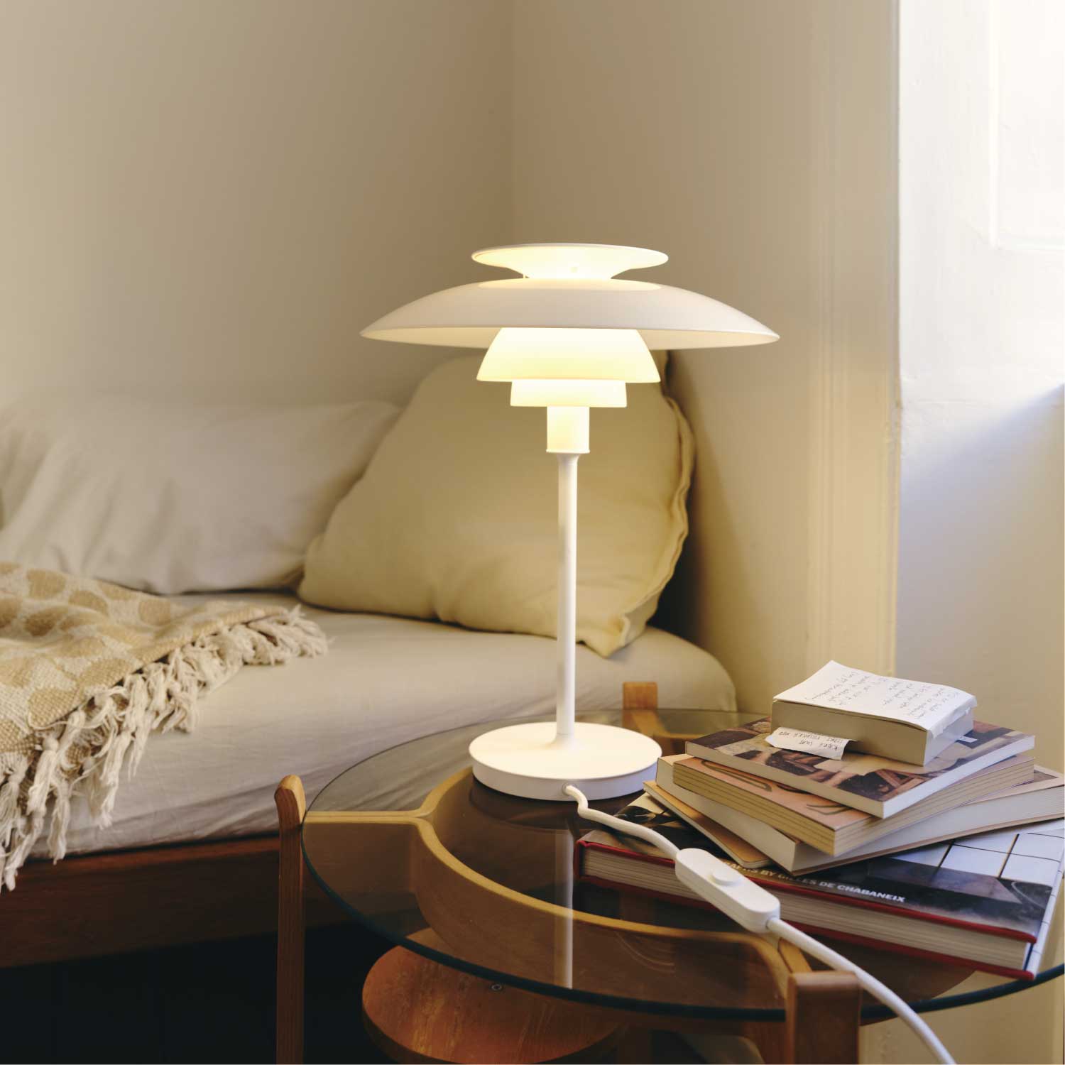 オリジナルのPH 80はヘニングセンの有名な「PHシリーズ」の一部であり、複数のシェードによってグレアのない照明を生みだす、彼のデザイン原理を継承しています。機能性と美しさを兼ね備えるPH 80 テーブルランプは暖かみのある拡散光を発し、住宅と建築施設の両方の環境で活躍します。