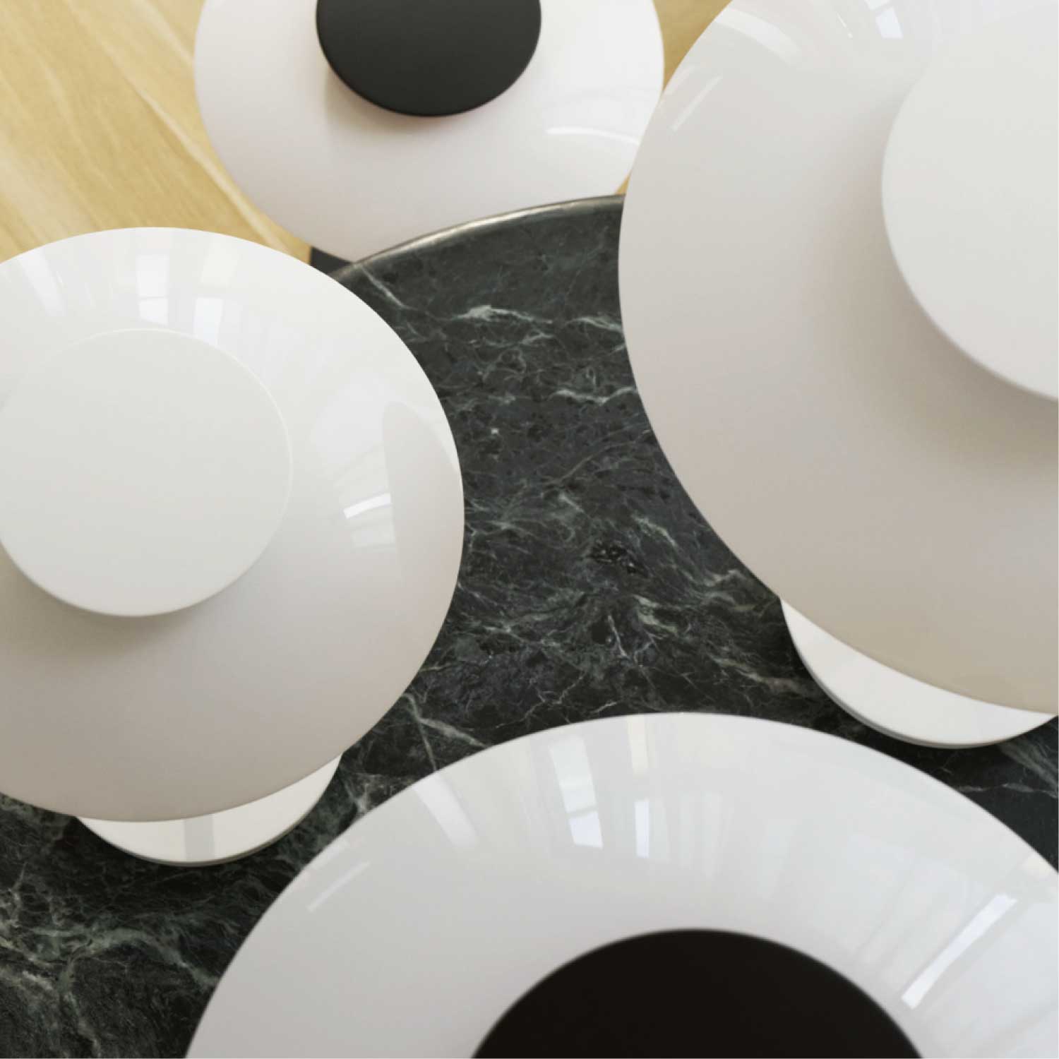 PH 80 テーブルランプは、拡散光と反射光を放ち、光の多くは下方に向けられます。乳白色のアクリルシェードは、快適なアンビエントライトを提供します。クロームメッキのタイプは、赤いトップ・リフレクターが光に暖かみを加えます。ホワイトタイプは、白いトップ・リフレクターがクリーンでエレガントな印象をもたらします。