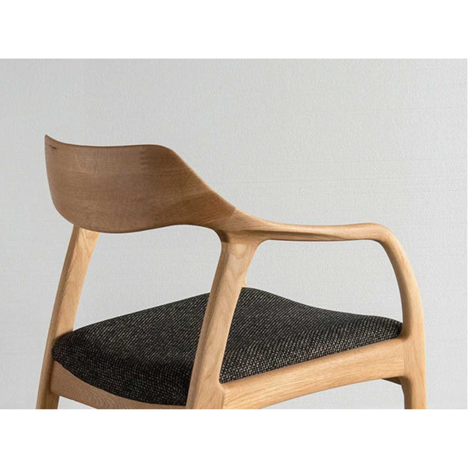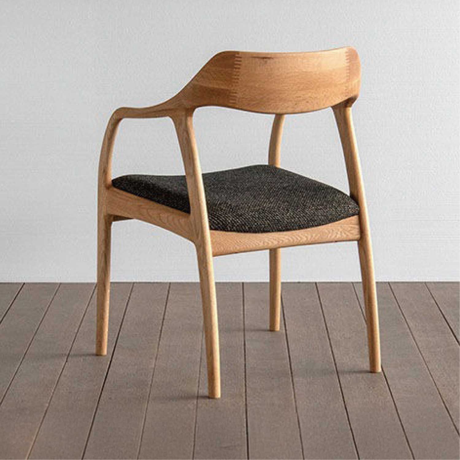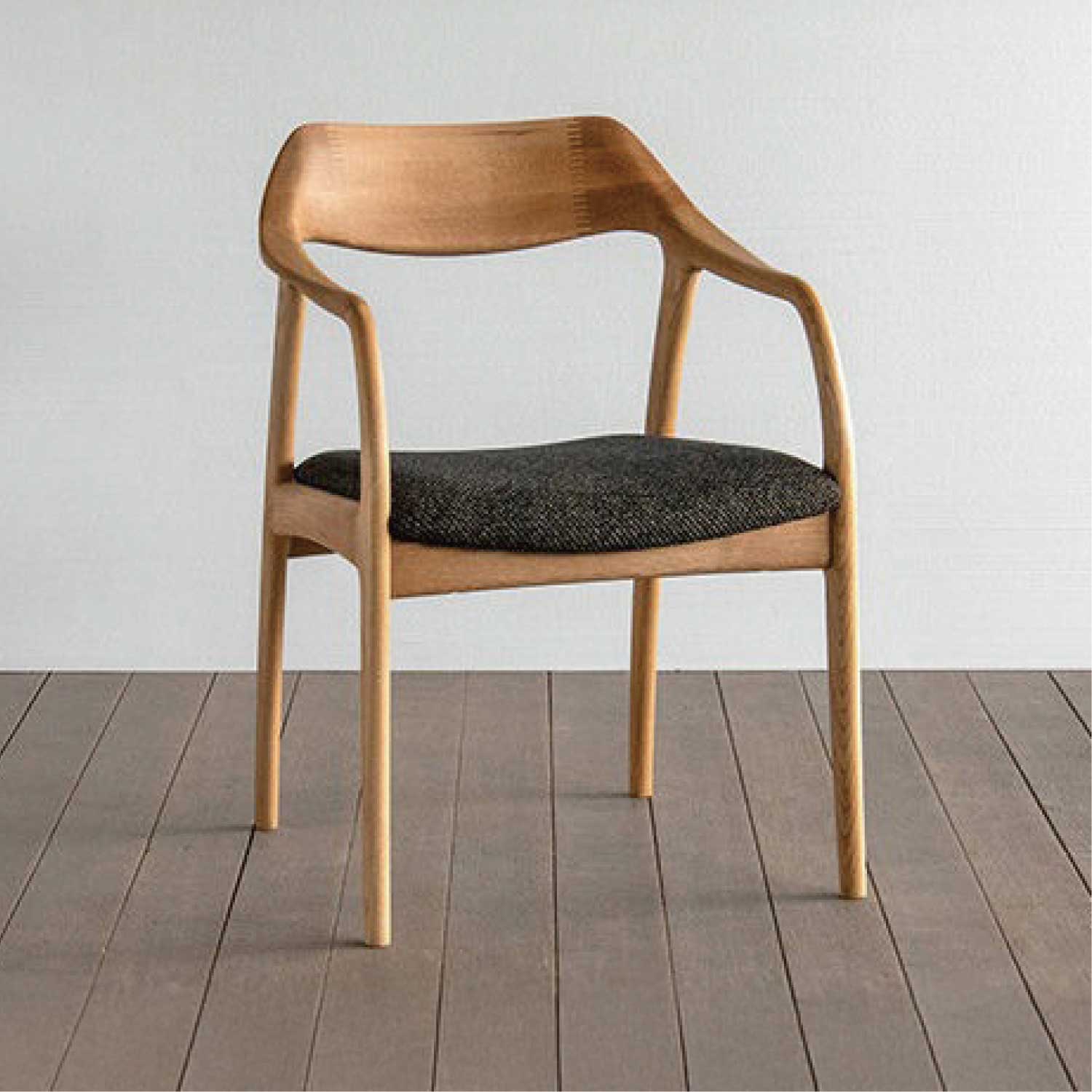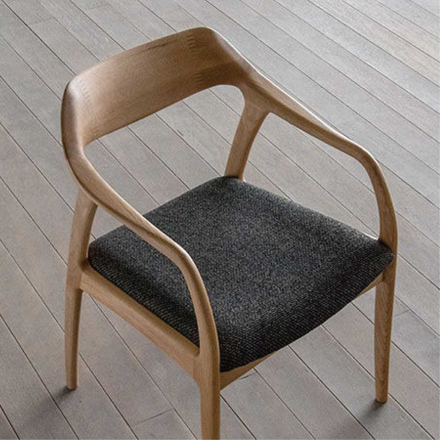 ワープの座の部分を変更したタイプのアームチェアです。ウッディなアームチェア。柔らかな曲線と大きな面取りによる優しい手触り。座は成形合板を張り込んだ仕様です。材は4種類が用意され、張り地もいろいろと揃えられています。