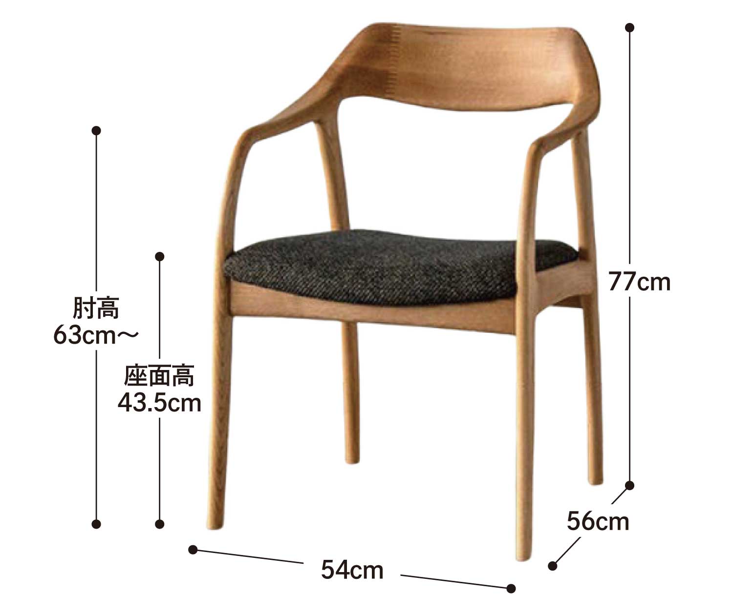 | サイズ | W54 × D56 × H77cm | SH43.5cm | AH63cm~ |