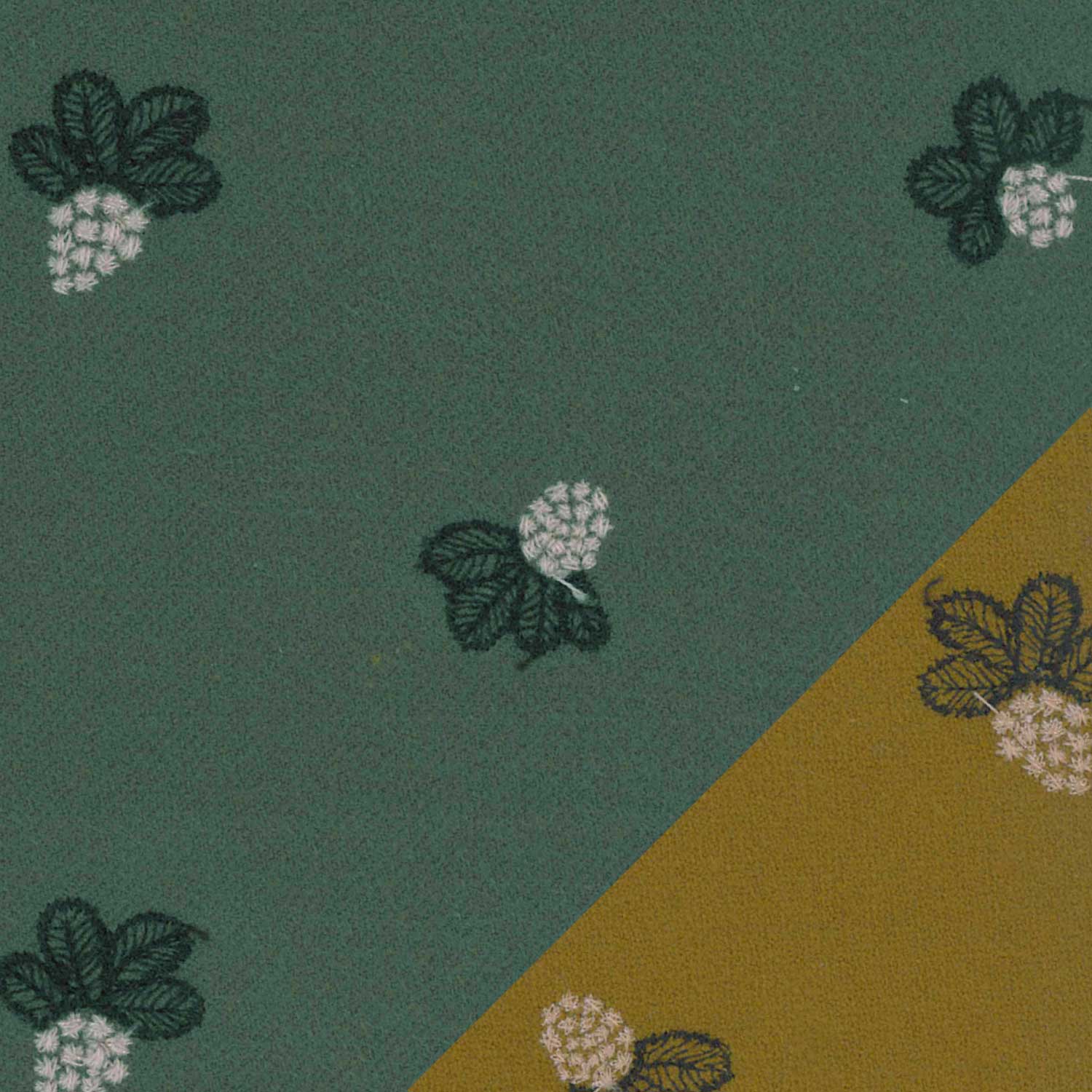 当店でお取り扱いするミナペルホネンの生地(タンバリン、チョウチョ、ライトベリー)は、すべて ダブルフェイス(両面使える構造) のテキスタイルです。これは、表と裏でカラーが異なる2面を持つ仕様となっており、どちらの面を「表(前面)」として使うかをお選びいただけます。左上に表面、右下に裏面の生地を表示しております。