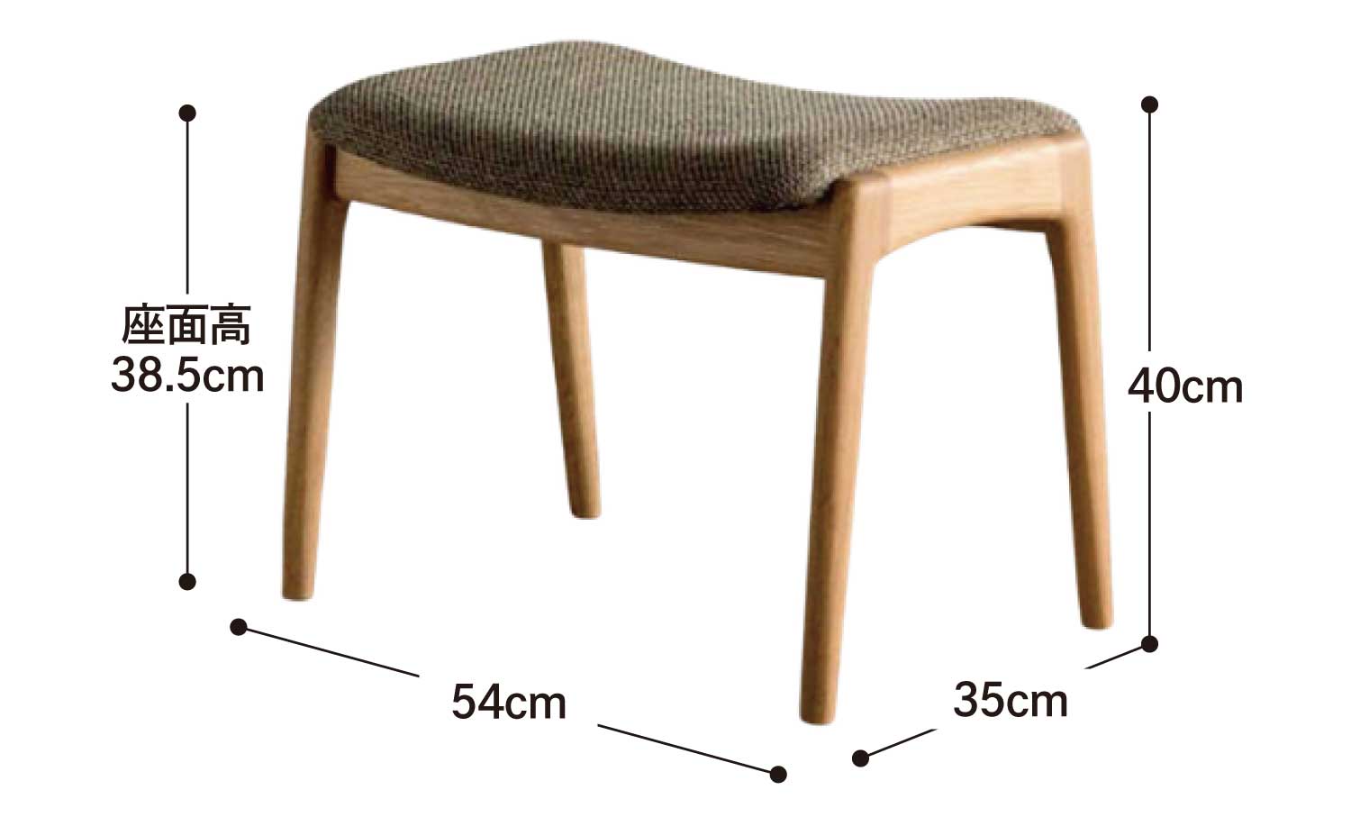 | サイズ | W54 × D35 × H40cm | SH38.5cm |