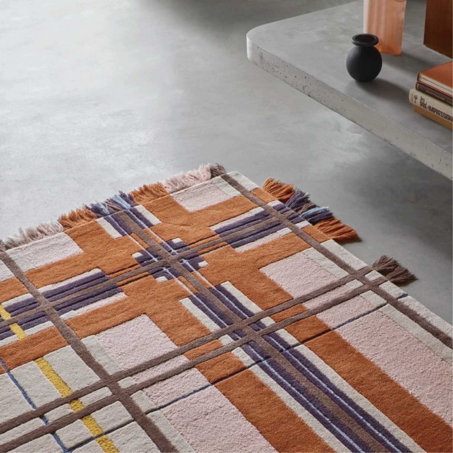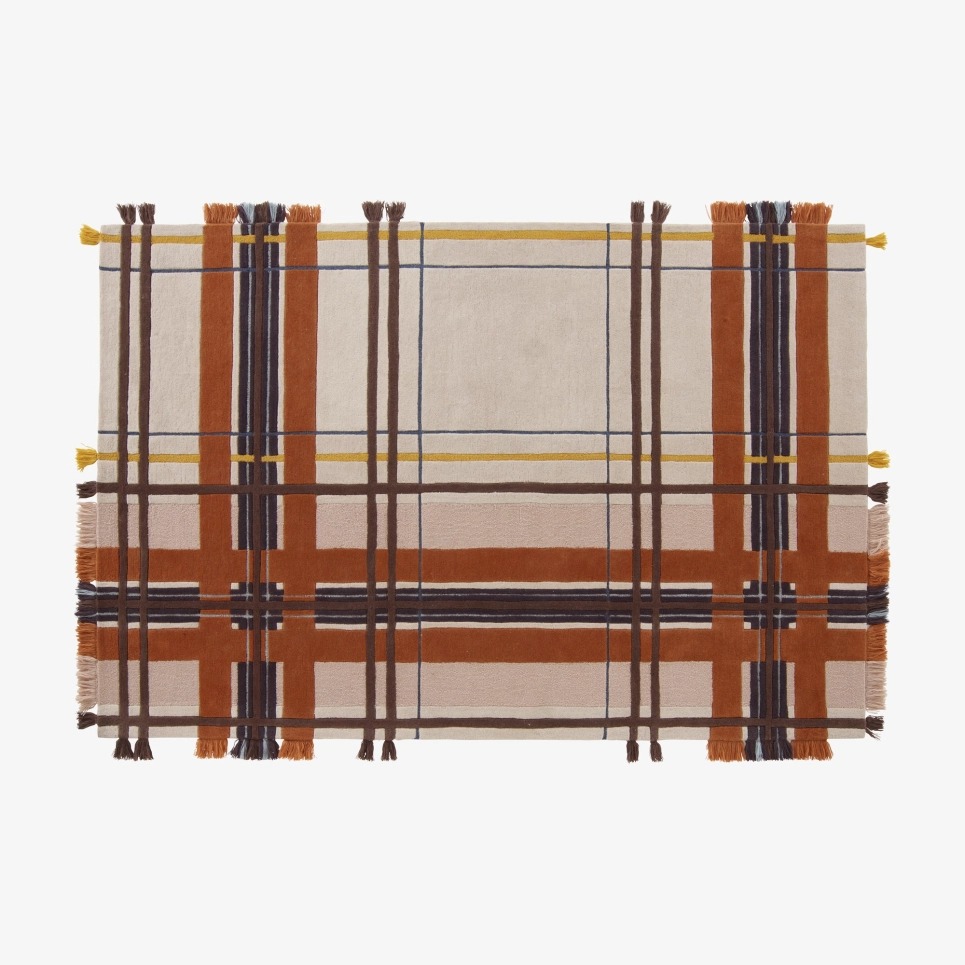 パリで活躍するコンスタンス・フラポリは、機能性や実用性があり、かつ詩的で感情に訴えるデザインを追求しています。「ファーガス」は、スコットランドのゲール語で「誇り高い」を意味します。このラグは、スコットランドのケルト人の伝統衣装「キルト(KILT)」に施されたタータン柄からインスピレーションを得ています。四方に施されたフリンジは民族衣装への敬意を表し、落ち着いたモダンなソファや家具にアクセントを加えるラグです。