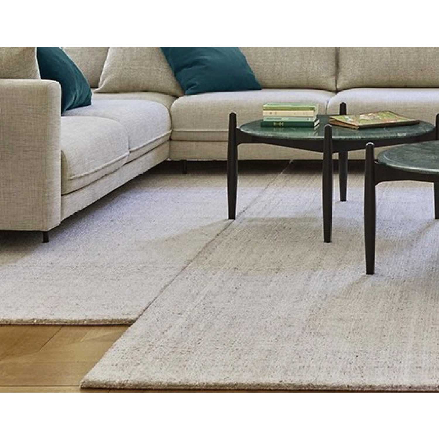 レーヨン100%のソフトな肌触りが魅力のラグです。約7mmのループ状の毛足により、クッション性があります。部分的にループをカットすることで、光沢感のある部分とない部分が生まれ、1つのモチーフになります。床暖房やホットカーペットにも対応しています。