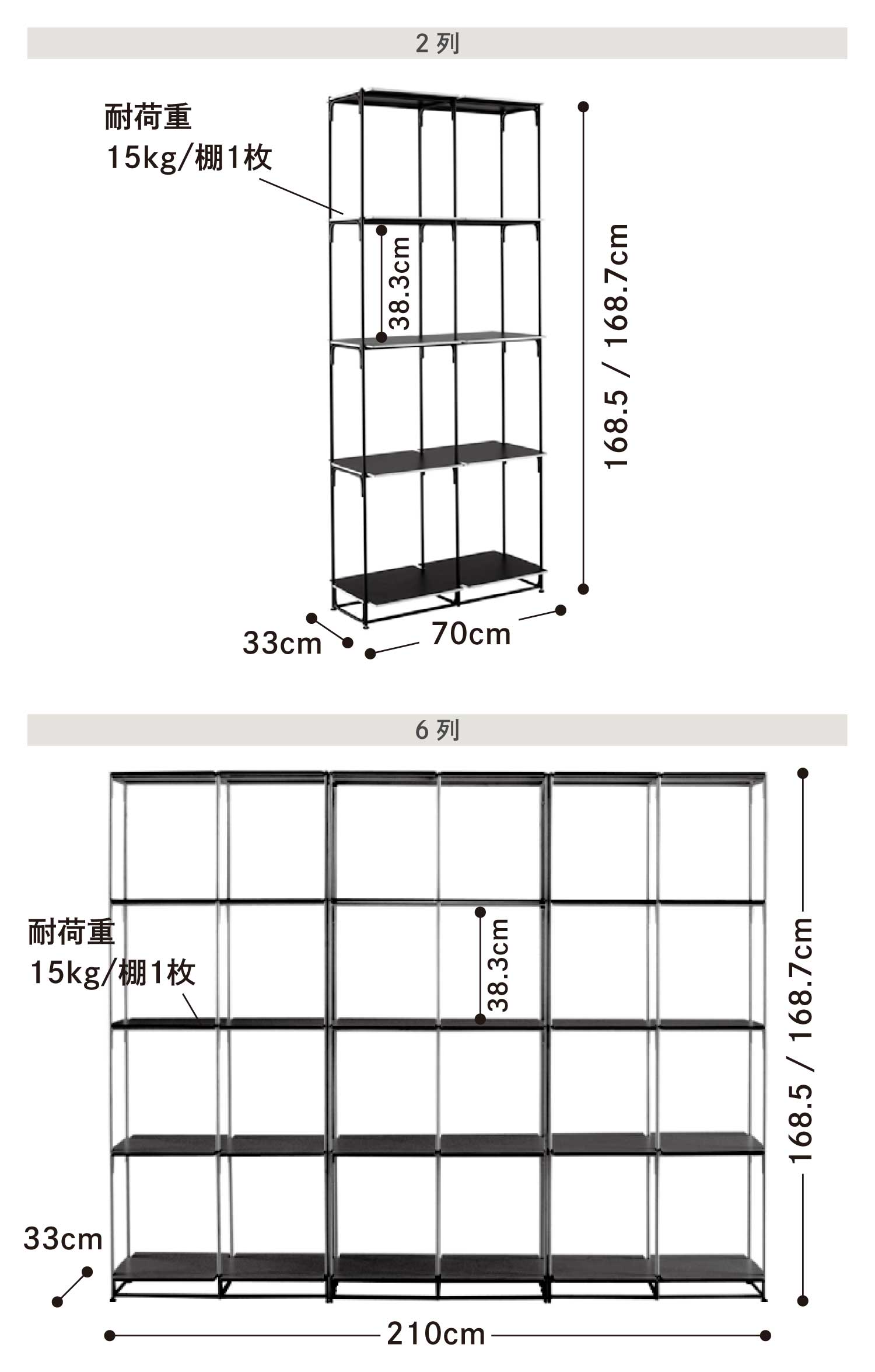 | サイズ | 2列:W70 × D33 × H168.5 / 168.7cm 6列:W210 × D33 × H168.5 / 168.7cm |