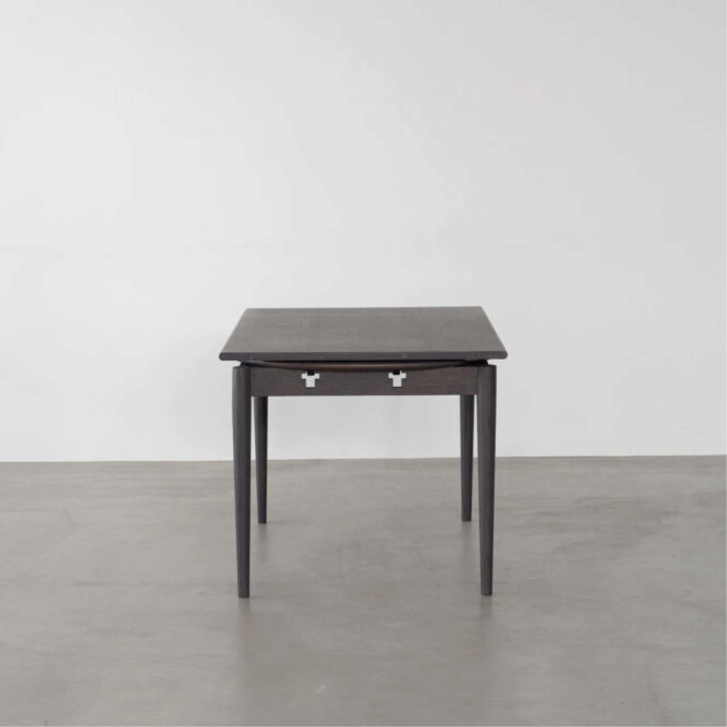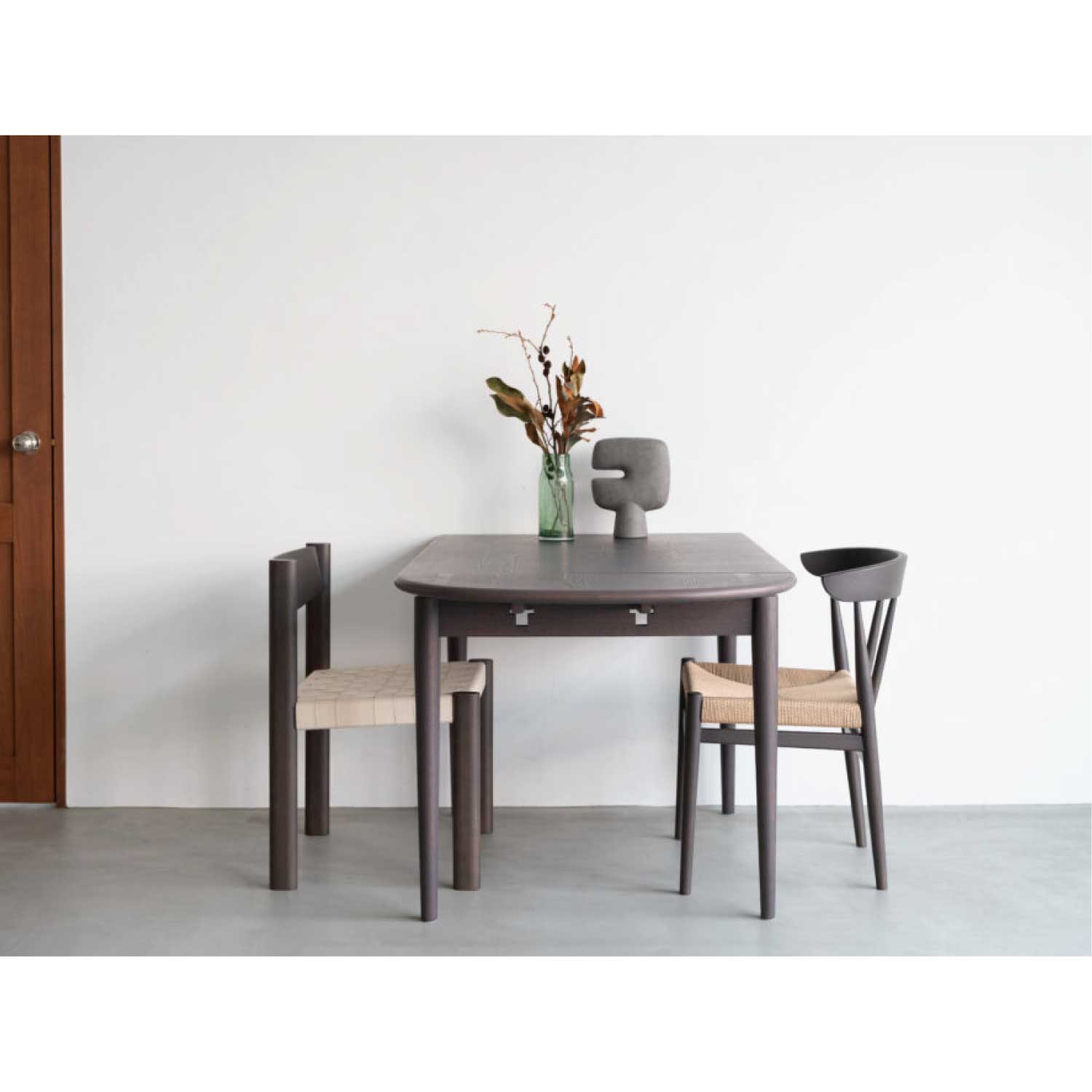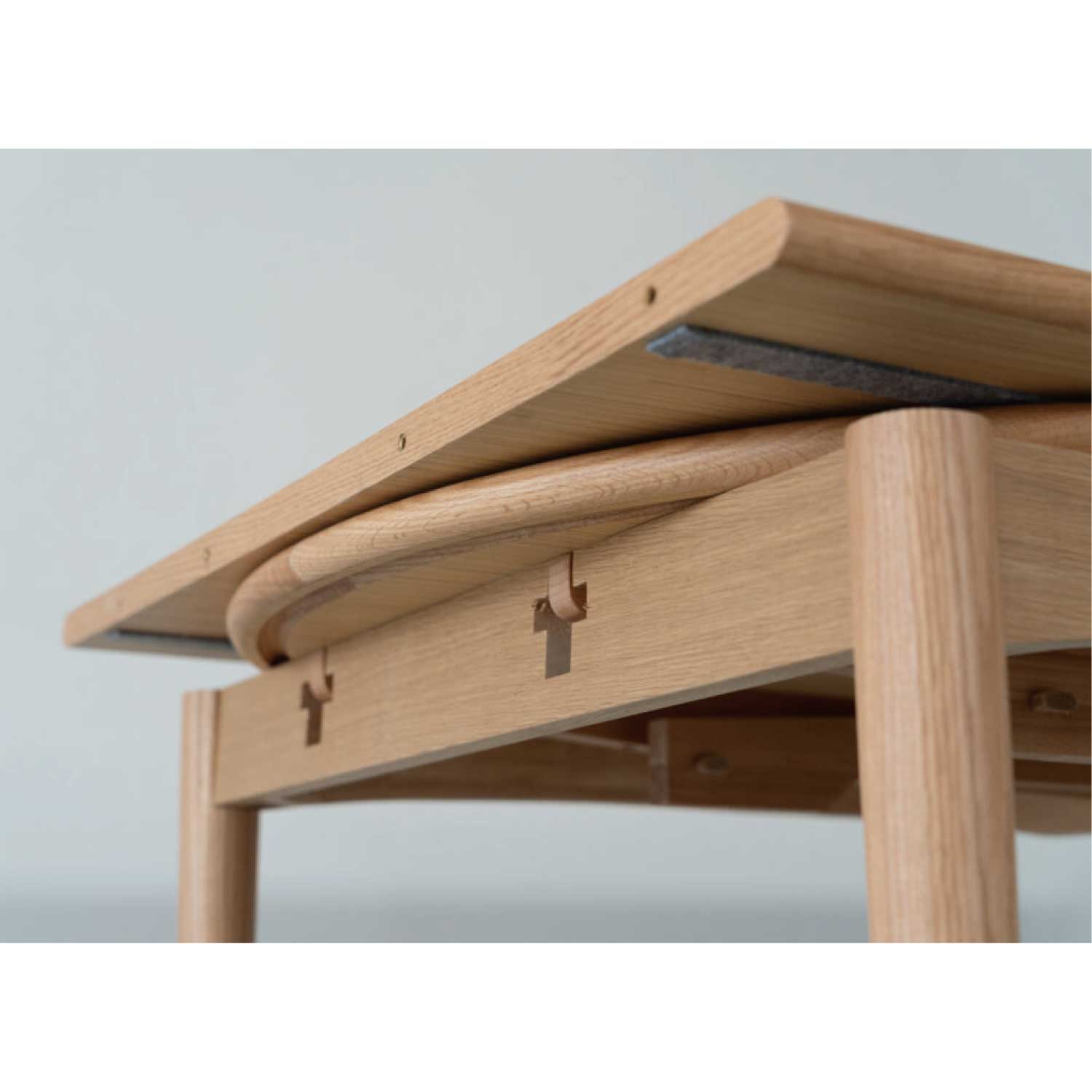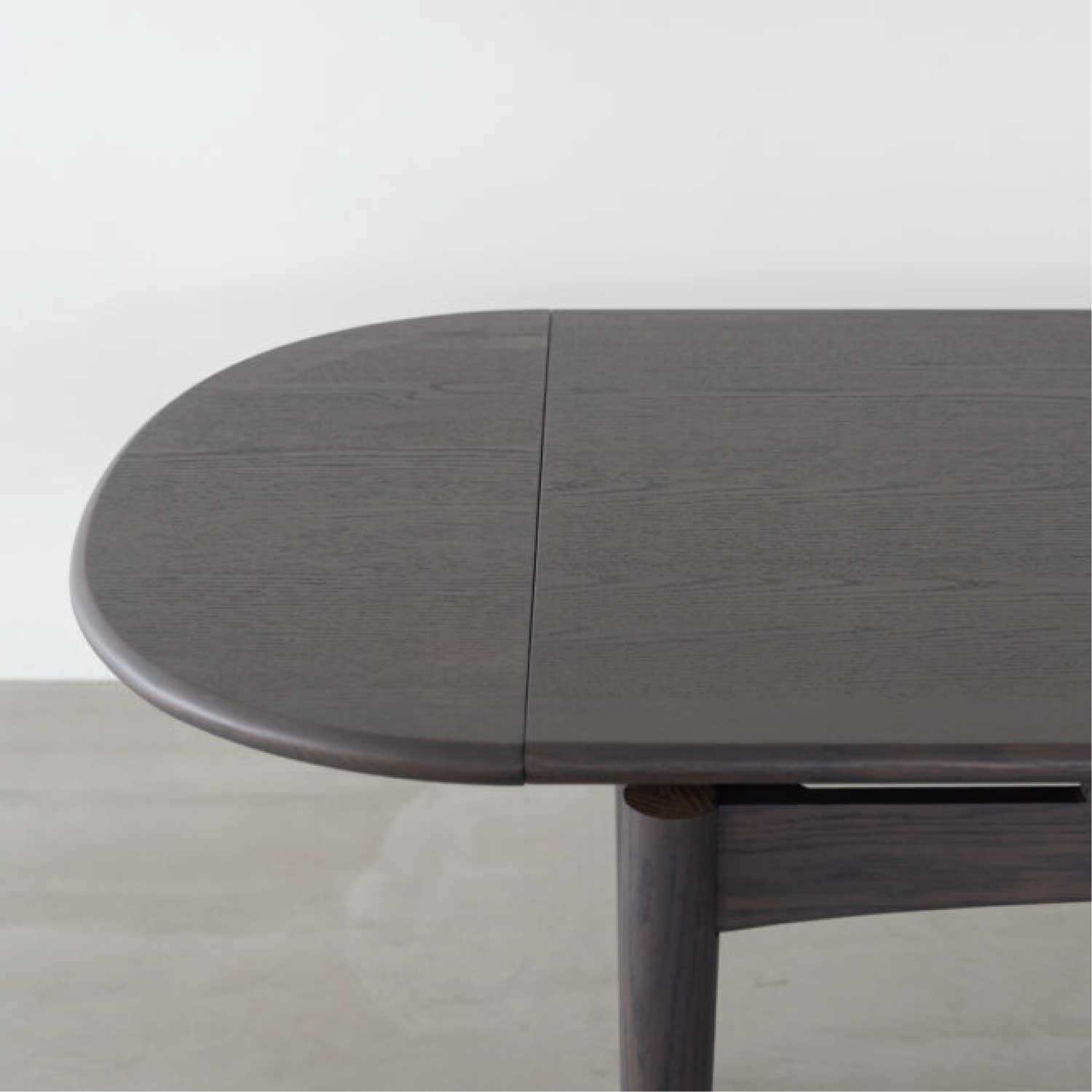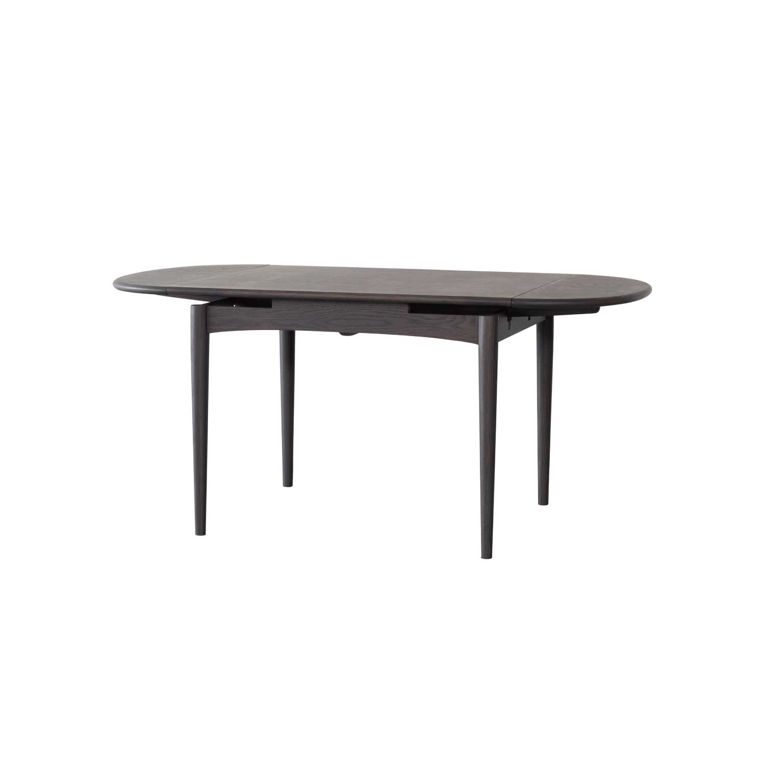 優しいフォルムが特徴の楕円形の伸長式テーブル。伸長天板を引き出して持ち上げるだけで、簡単にサイズを広げることができます。気軽に伸長できる仕様のため、来客時はもちろん、普段の食卓やちょっとした作業台としても活躍します。片側だけを伸長し、半円形スタイルとしてもお使いいただけます。