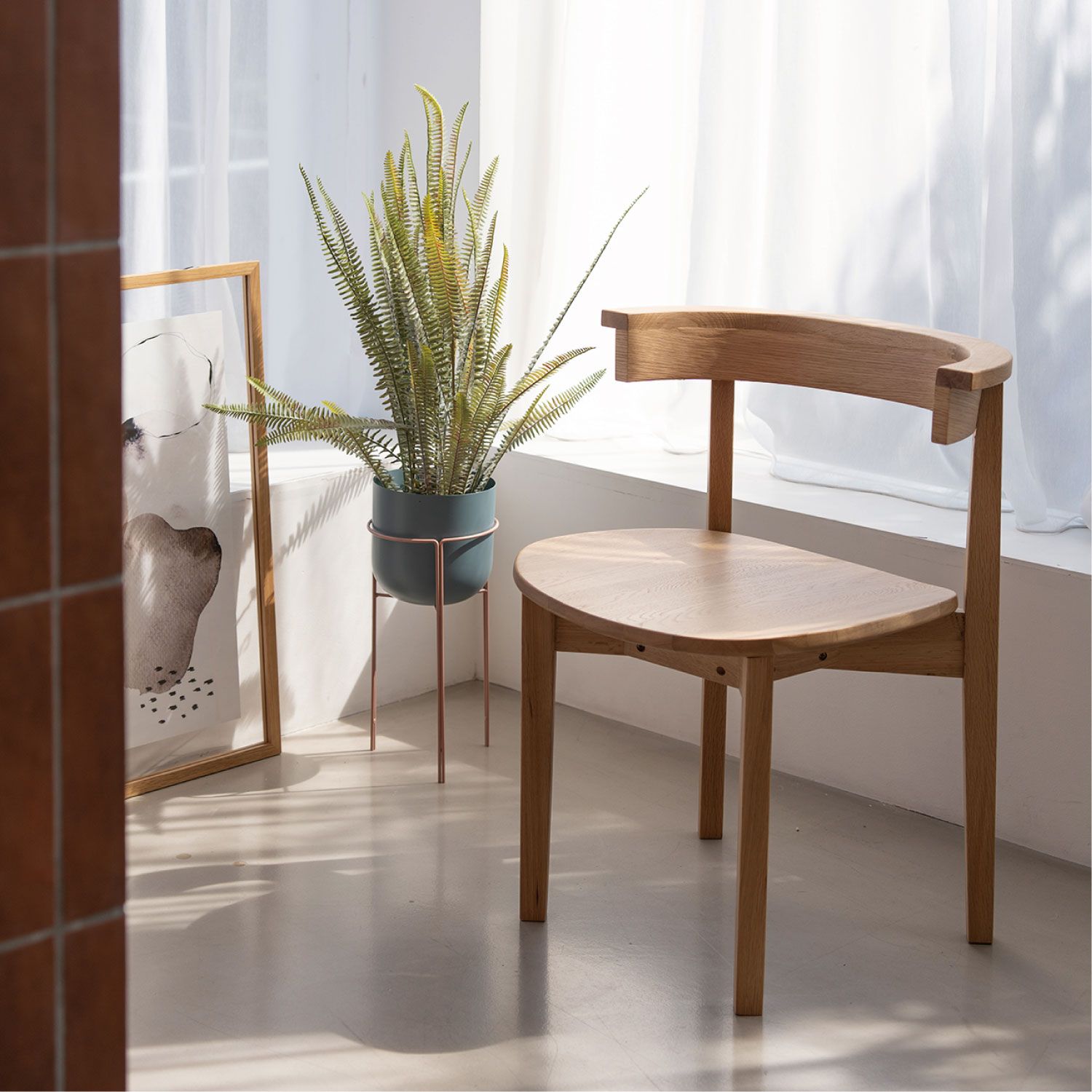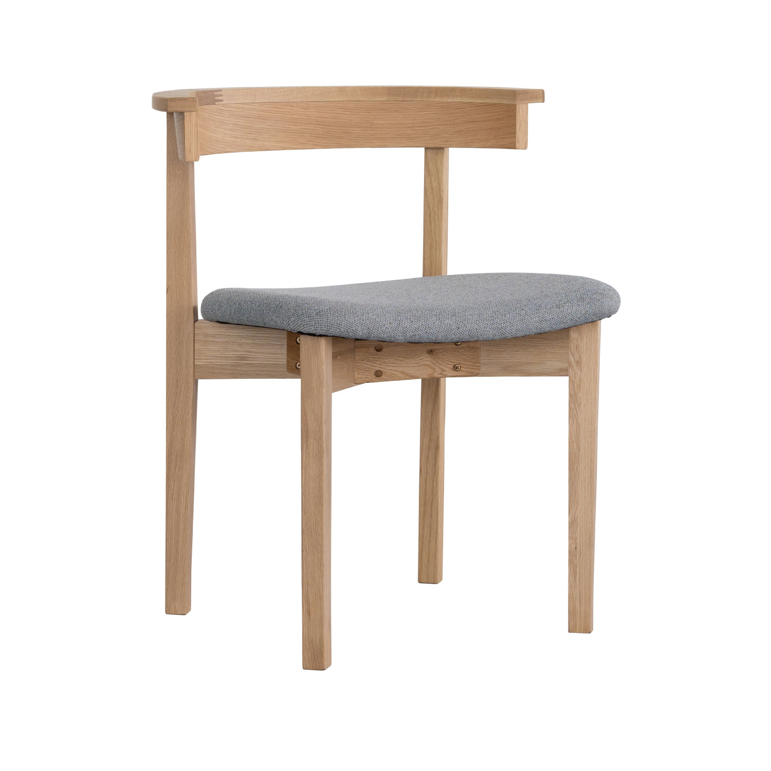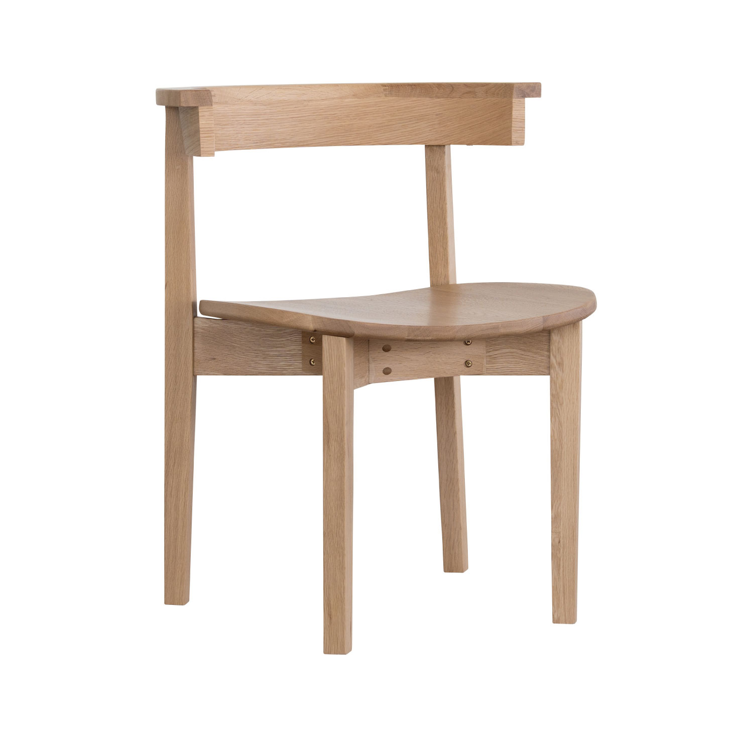 直線と曲線のバランスがかわいらしいダイニングチェア。たっぷりの木感とクラフト感のあるデザインが、お部屋に温かみのある雰囲気をもたらします。ハーフアームのため軽く肘を置くことができ、横向きに腰掛けた時も座り心地が安定します。