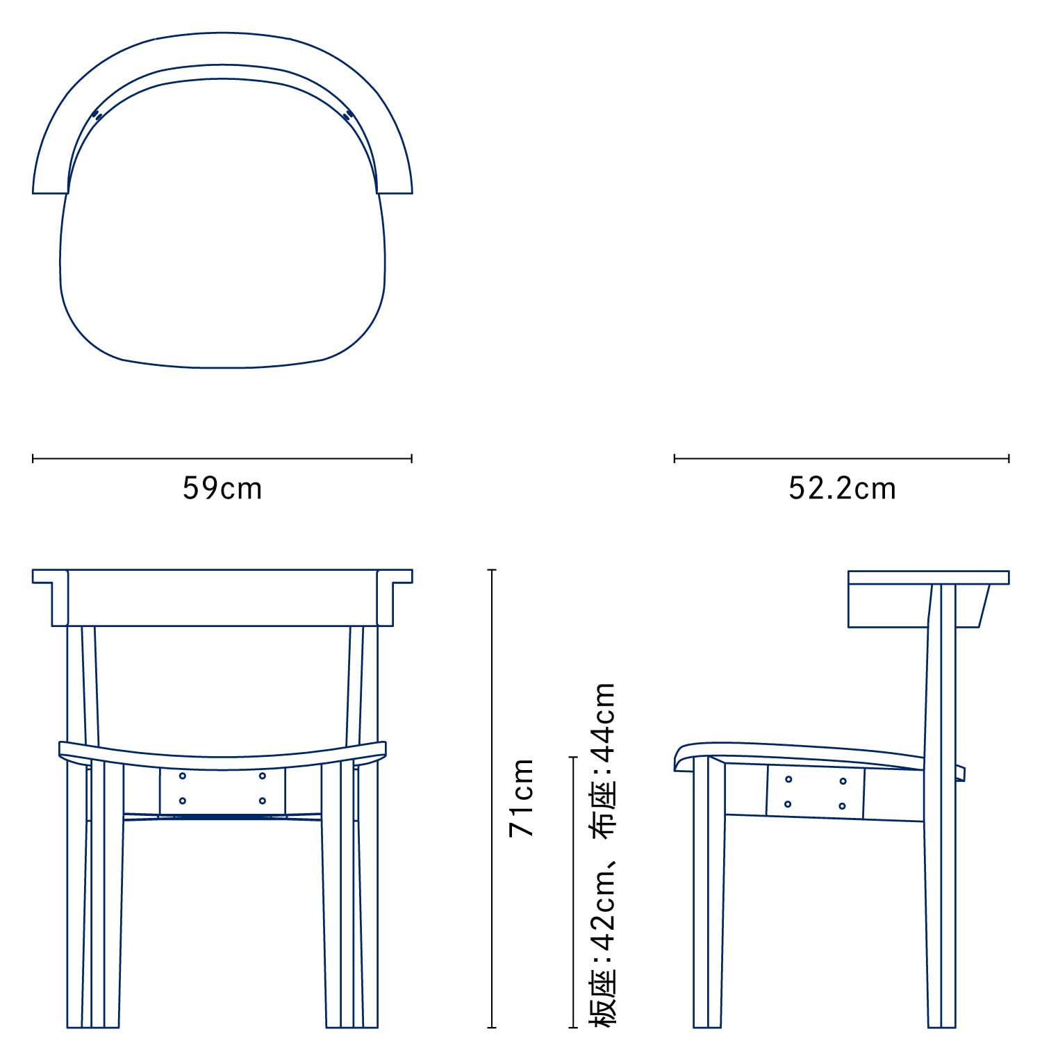 | サイズ | [板座]W59 × D52.2 × H71cm | SH42cm [布座]W59 × D52.2 × H71cm | SH44cm |