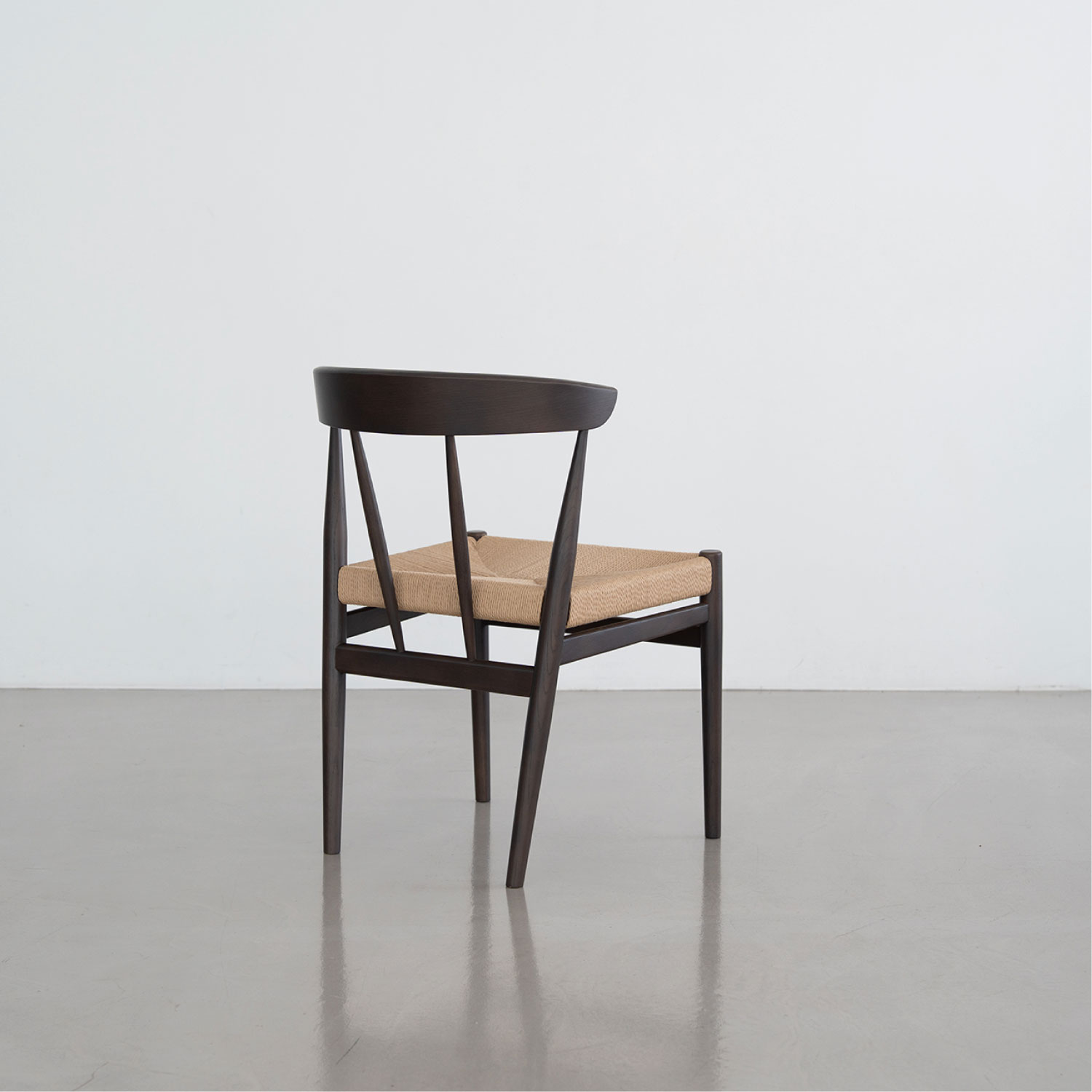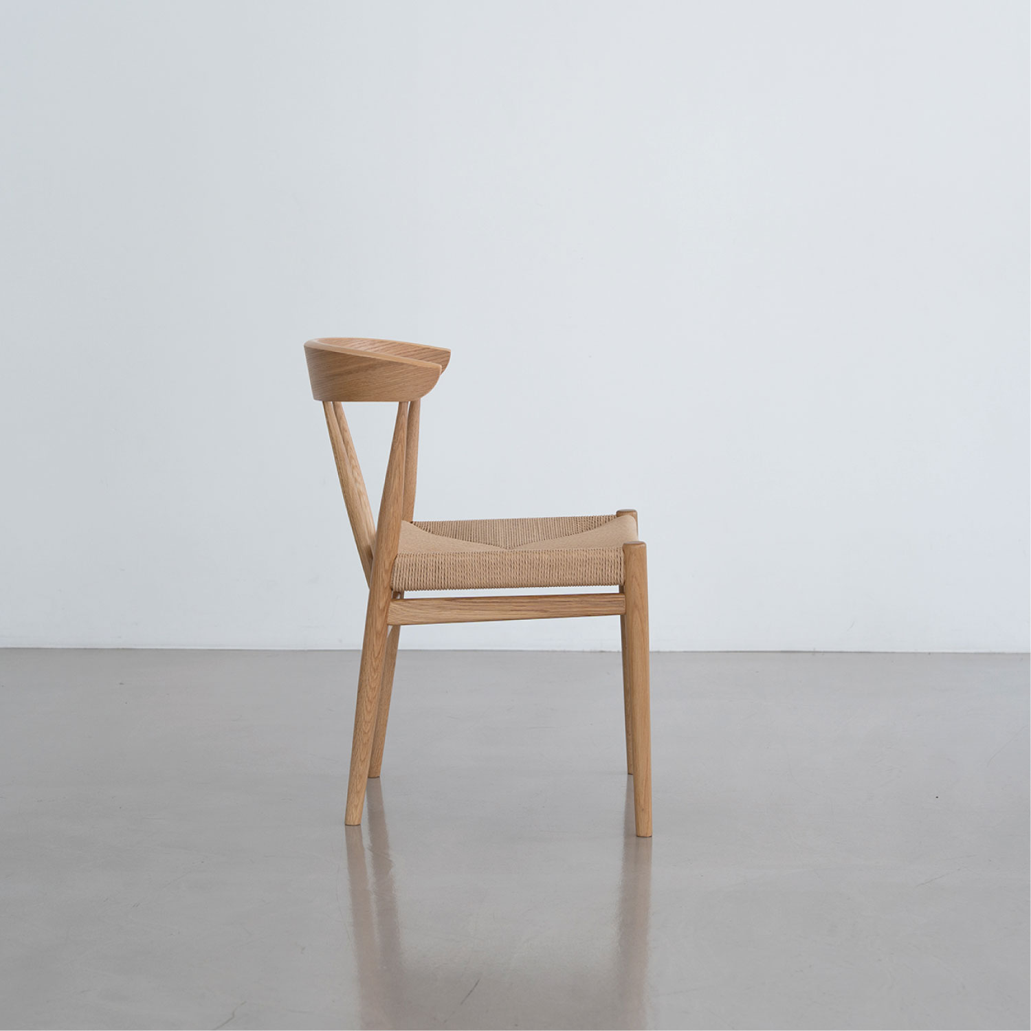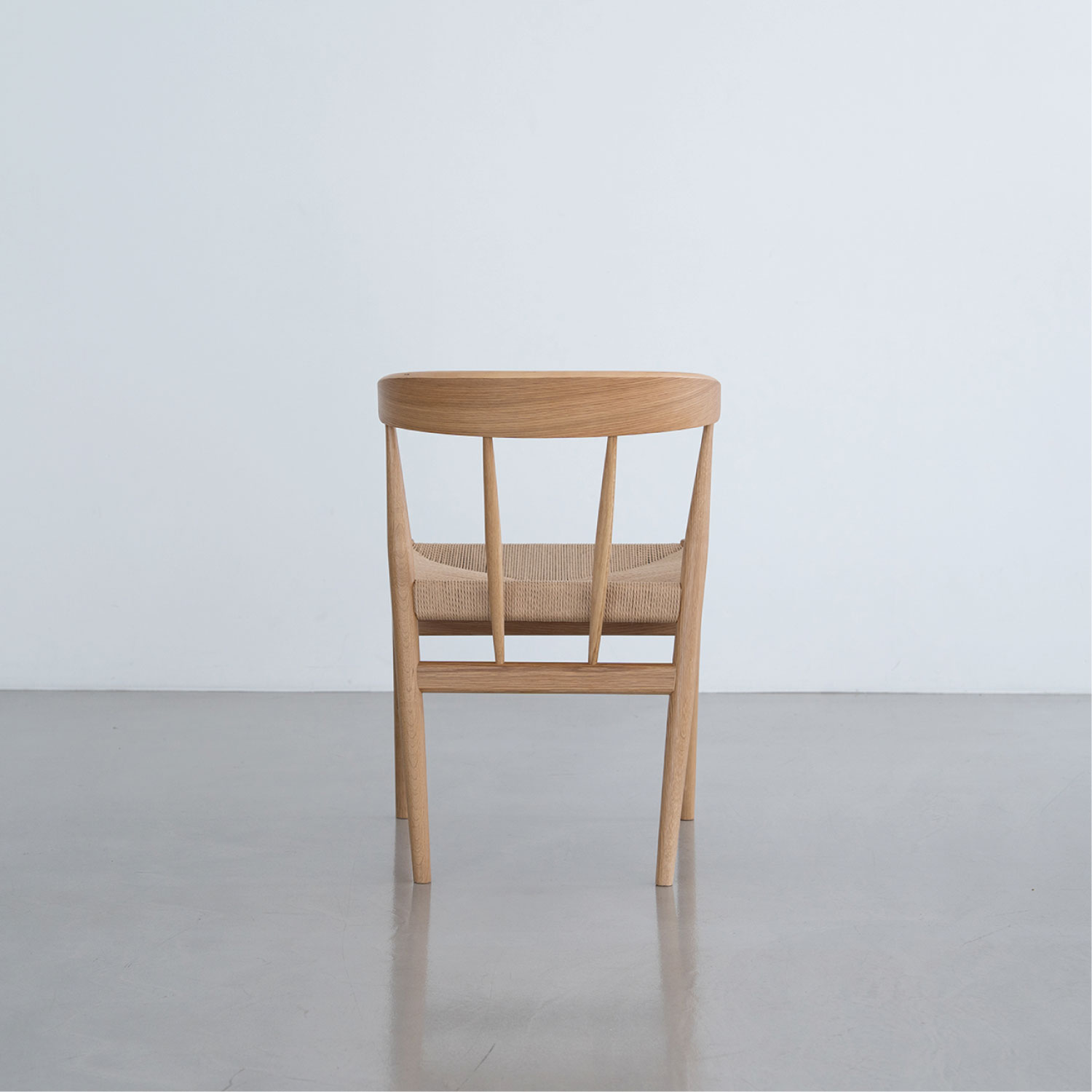 座面にペーパーコードを張り込んだハーフアームチェア。成型合板の笠木が背にフィットし、ちょっとした肘掛けにもなります。トラディショナルな北欧のデザインを踏襲し、後ろからの見た目も美しいデザインです。