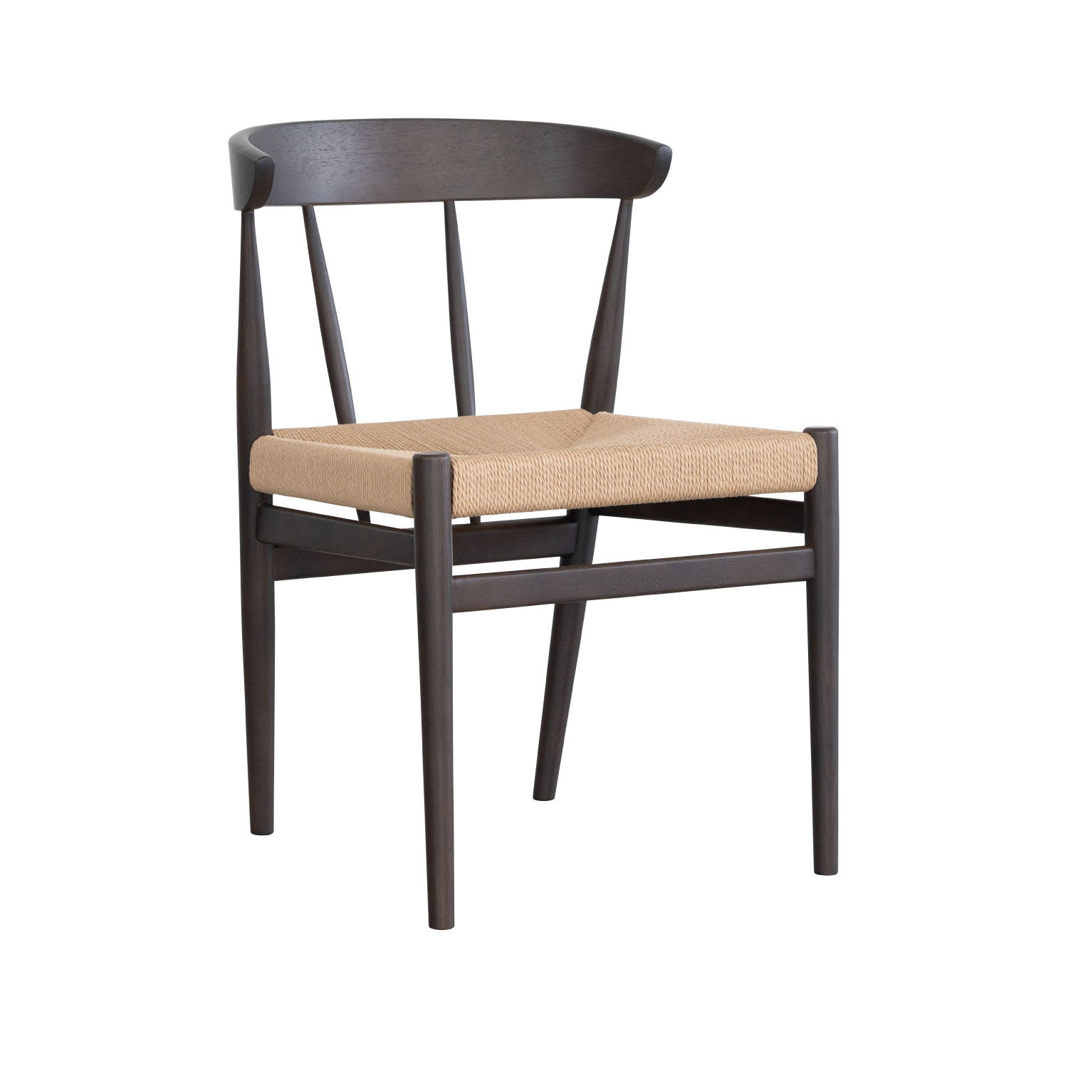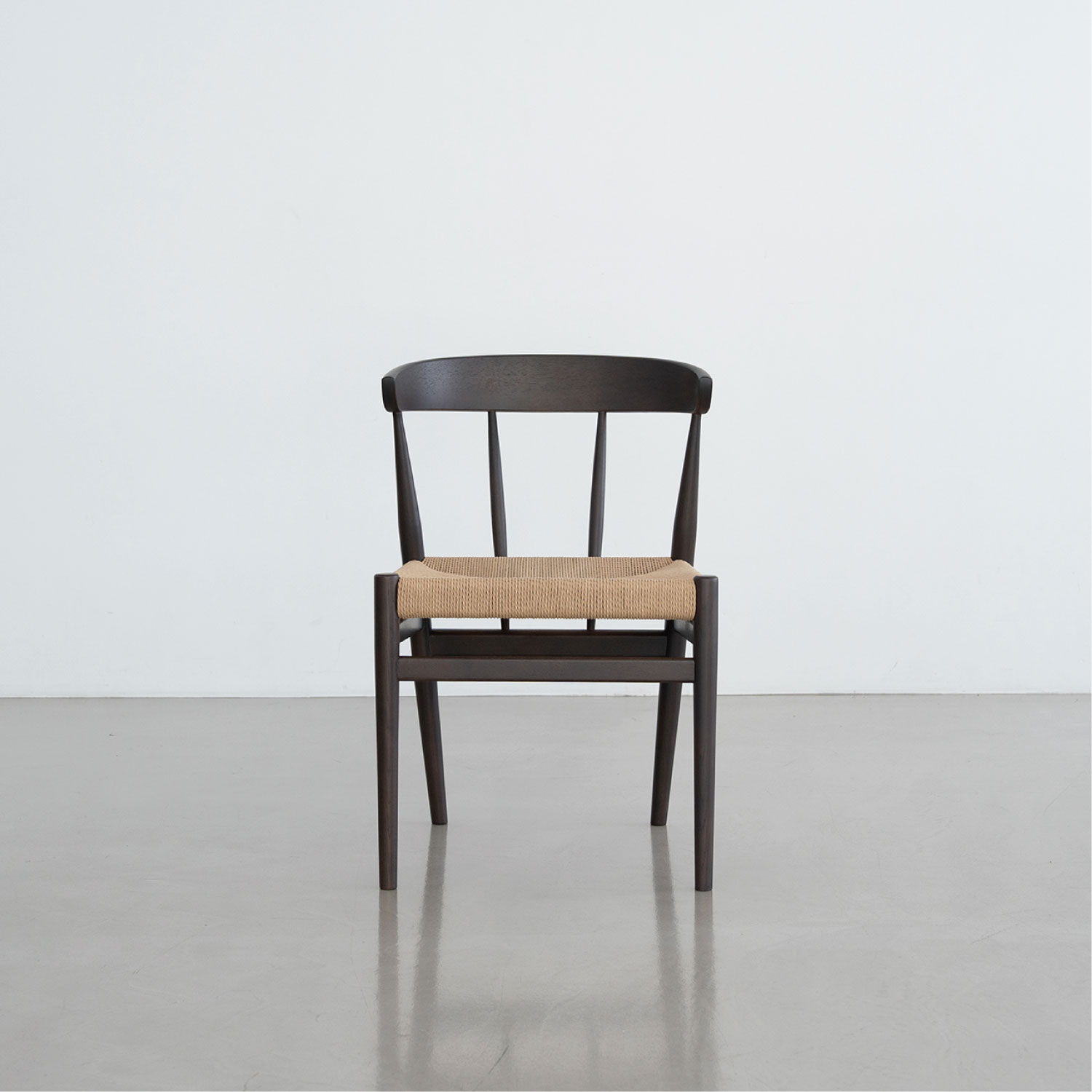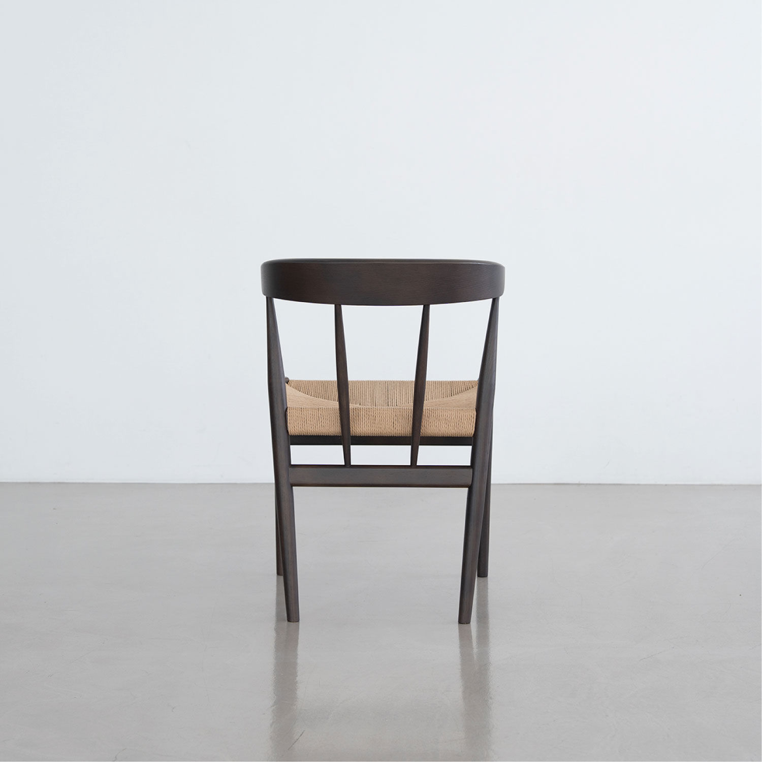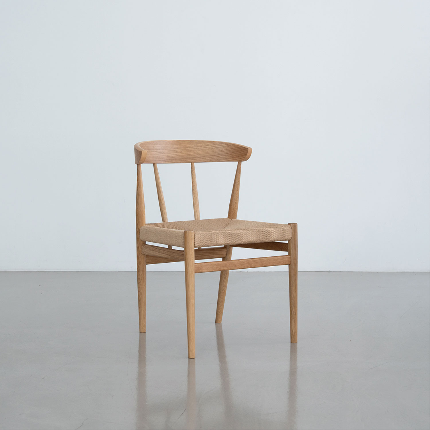 座面にペーパーコードを張り込んだハーフアームチェア。成型合板の笠木が背にフィットし、ちょっとした肘掛けにもなります。トラディショナルな北欧のデザインを踏襲し、後ろからの見た目も美しいデザインです。