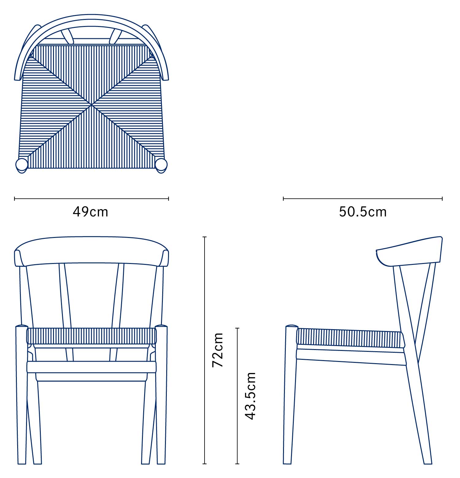 | サイズ | W49 × D50.5 × H72cm | SH43.5cm |