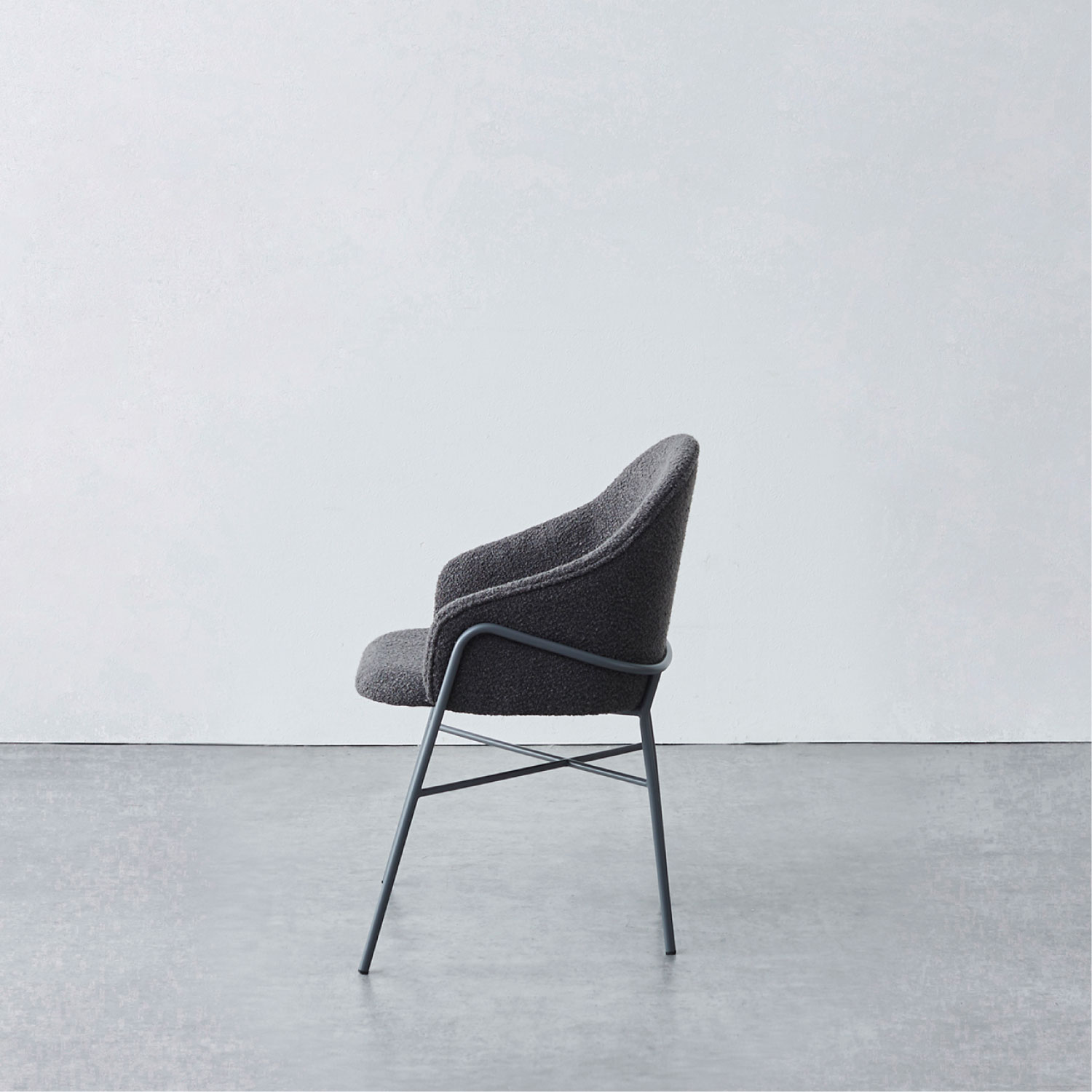 ゆったりと座れるアームチェア。ファブリックとフレームが同系色のワントーンカラーと、空間に馴染む主張しないデザインで、複数台並べてもシンプルで上品にまとまります。グレー系のカラーリングで、さまざまなシーンに合わせやすいチェアです。