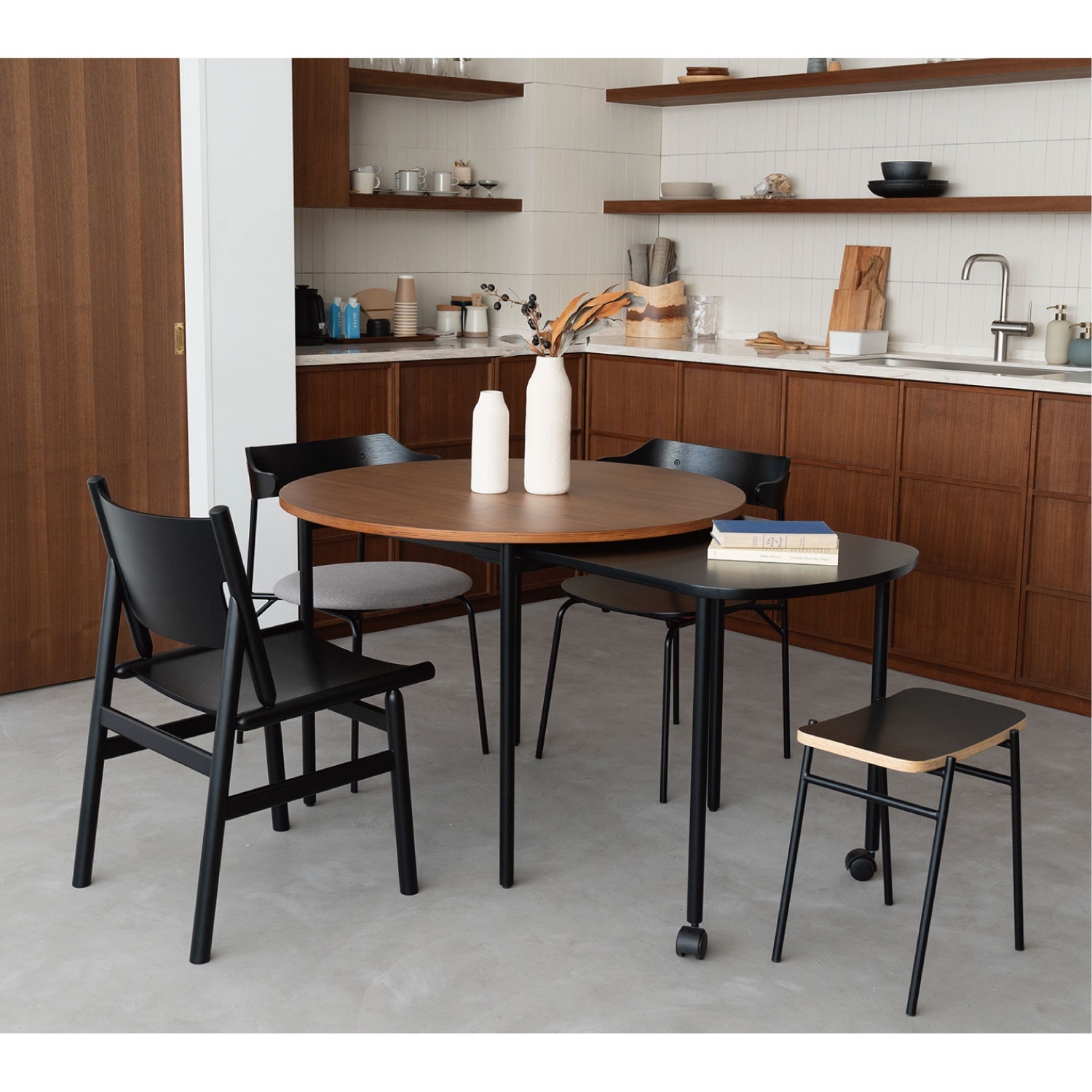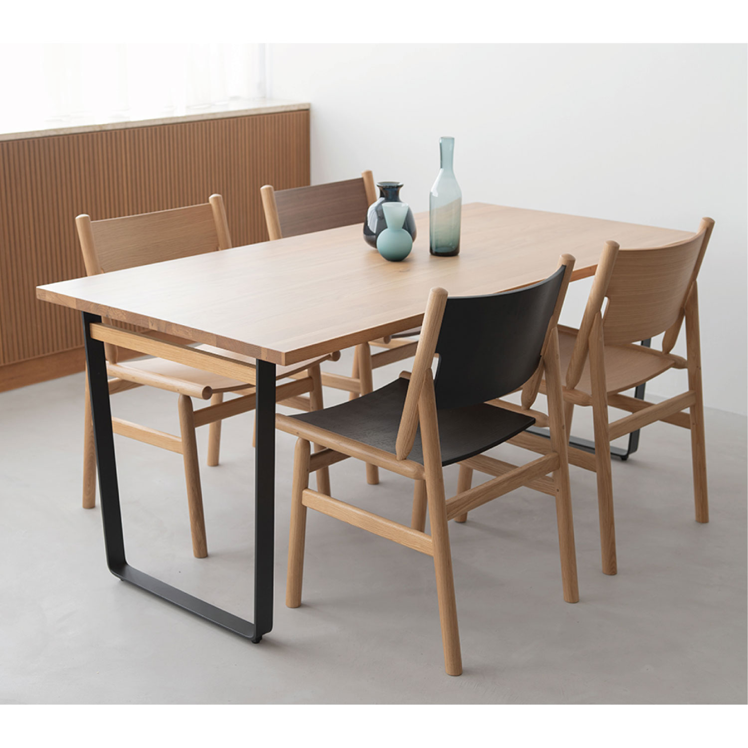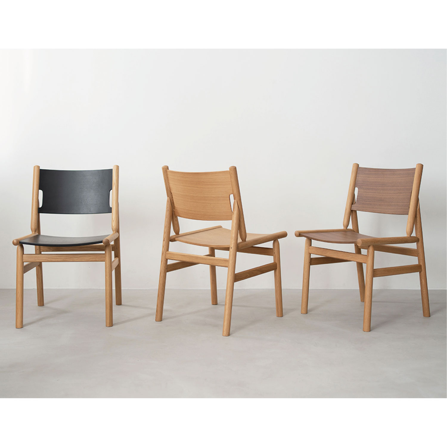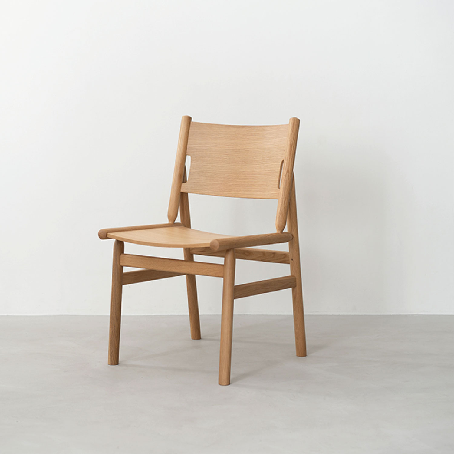 オークの丸棒と成型合板を組み合わせた独特な構造のダイニングチェア。思わず全色揃えたくなる4色のカラーバリエーションで、毎日の食卓に楽しさをもたらしてくれます。