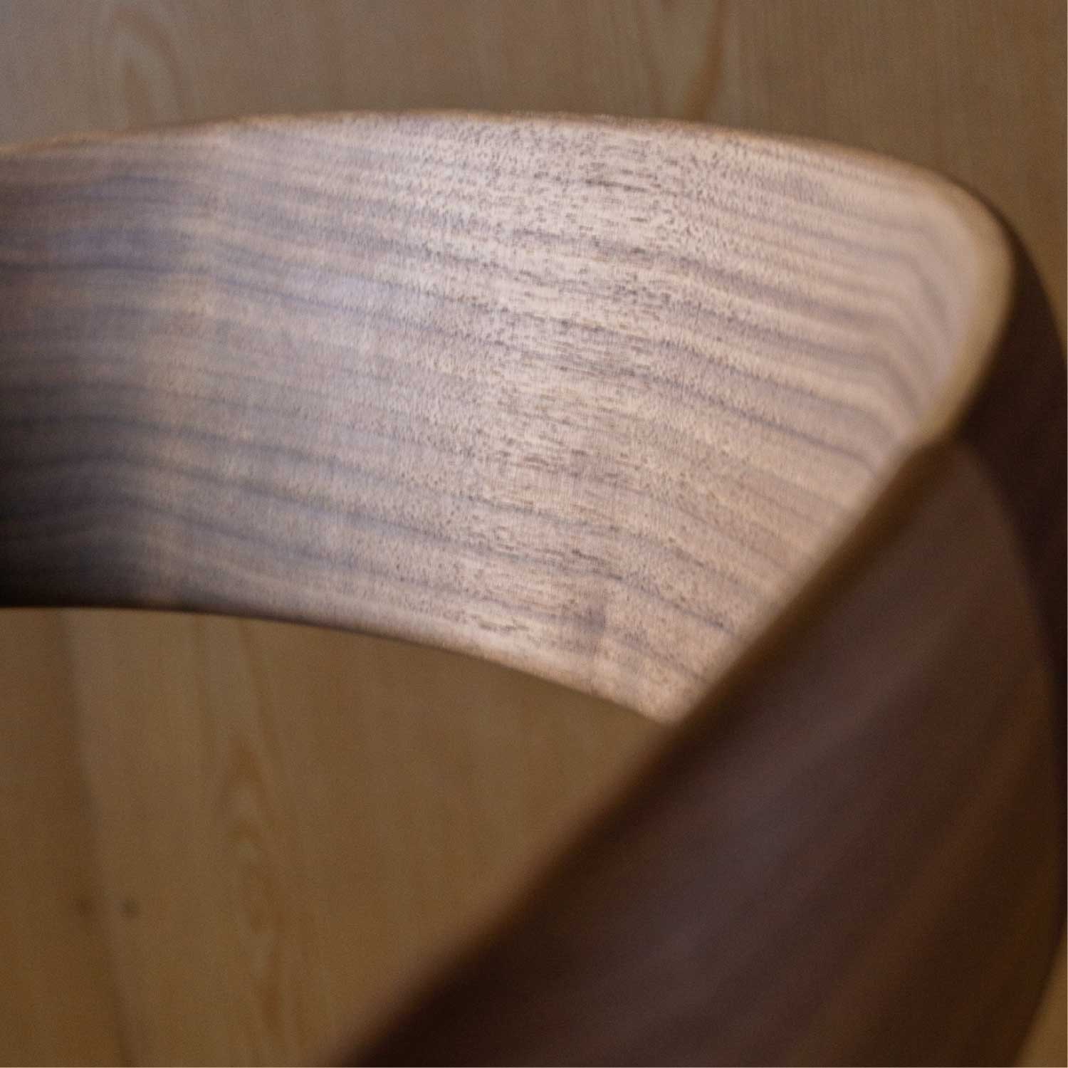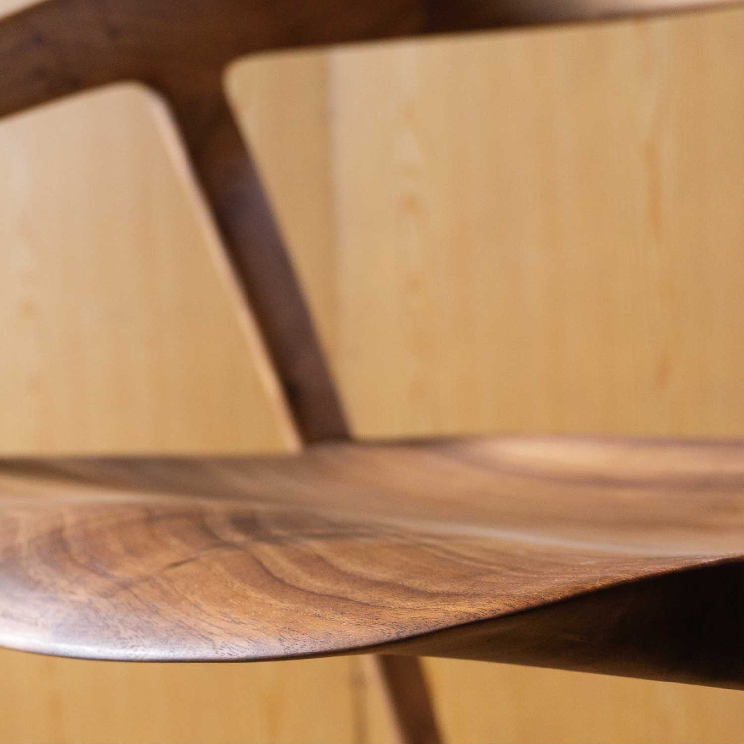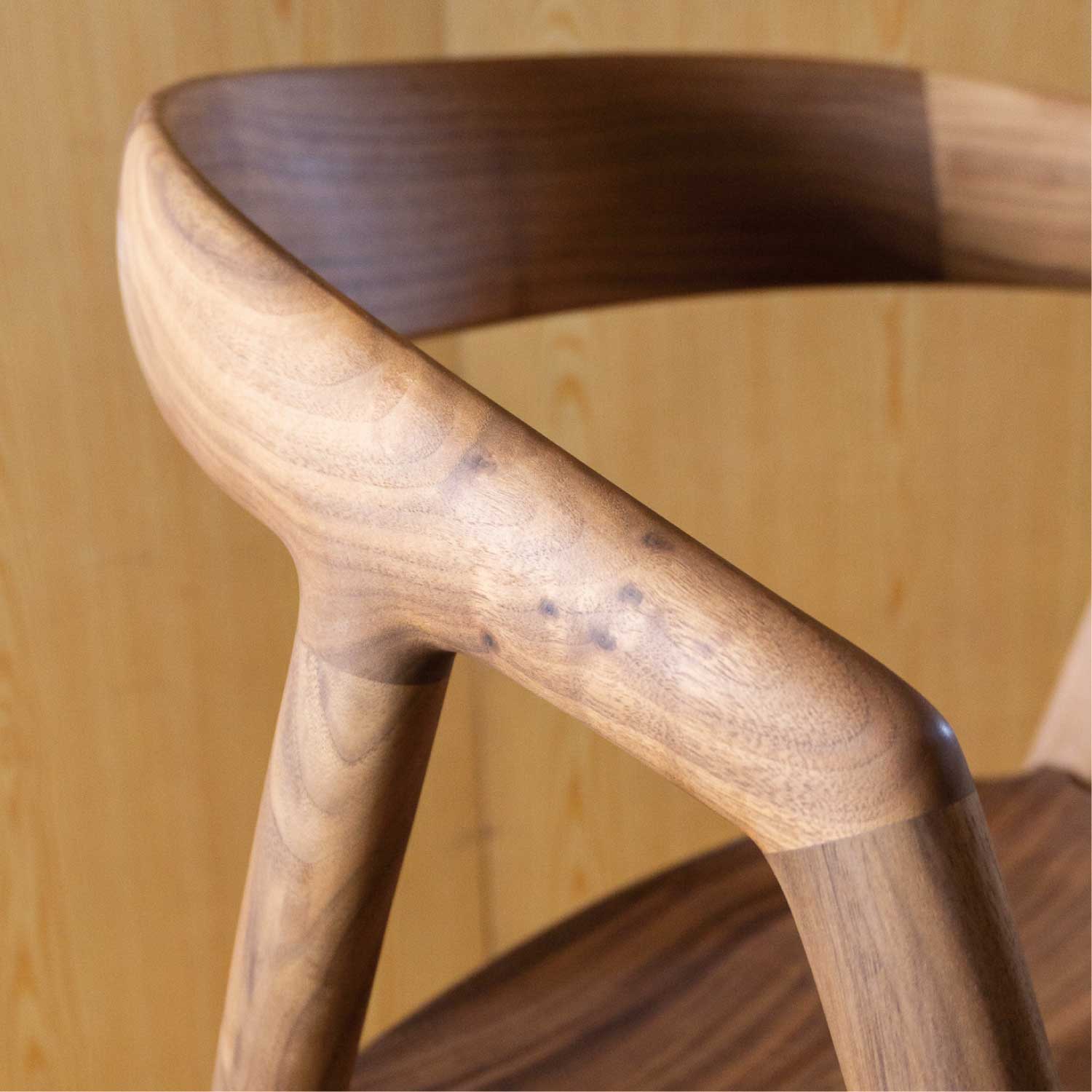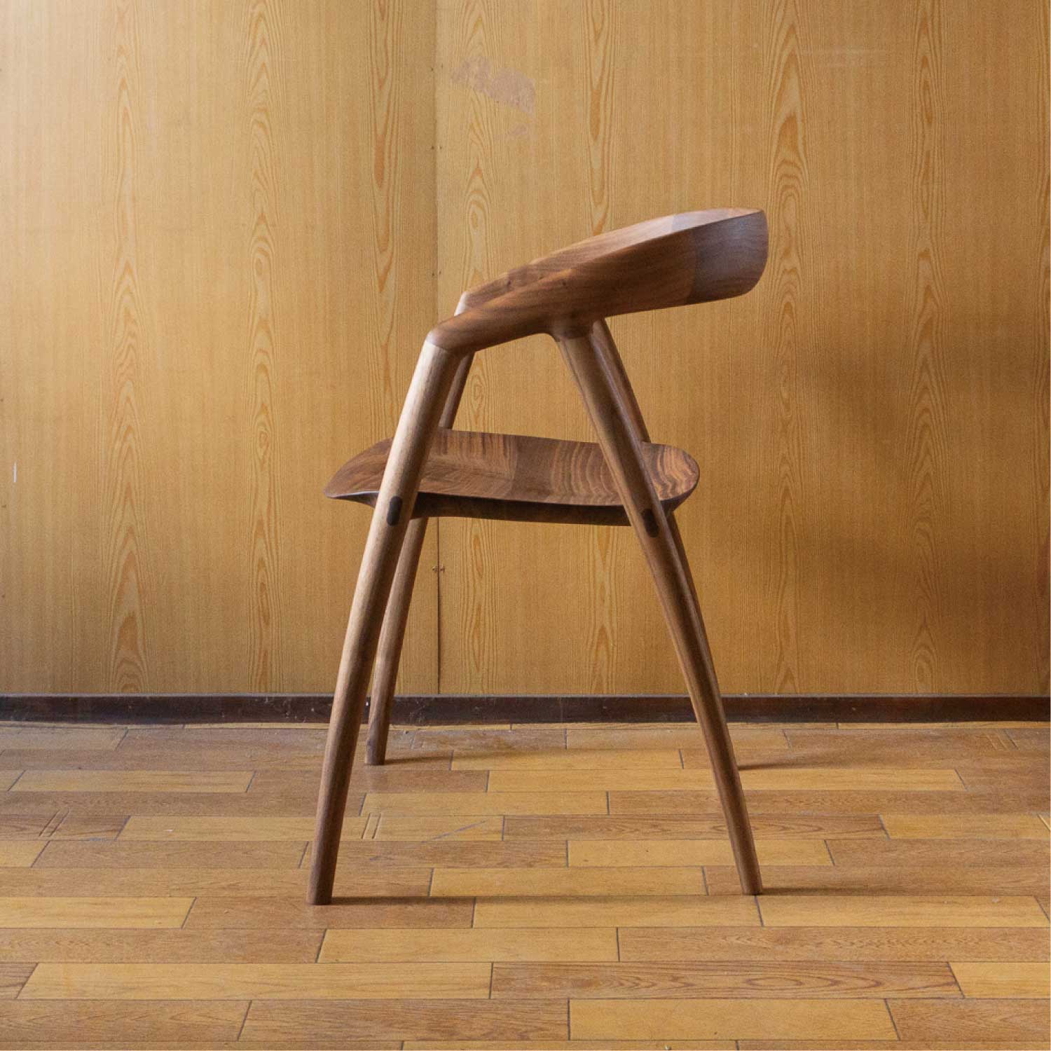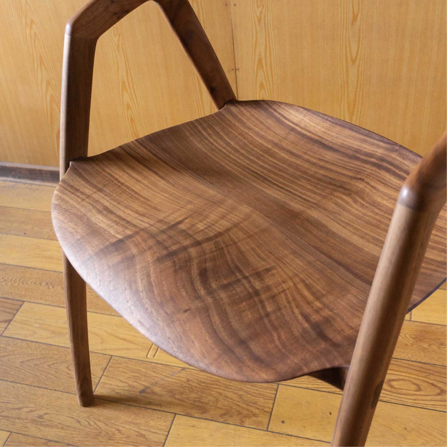 流線型のフォルムで、彫刻のような座が特徴的なDC09チェア。 無垢の木を時間をかけて削ってできた、重厚感の中にも軽快さを取り込んだ椅子です。 無垢座ながら長時間の使用でも負担が無いように、人の体に合わせ機能と美しさを両立させています。 板座とは思えないほど柔らかなフィット感と、無垢の木の肌触りの良さは、いつまでもずっと座っていたくなるほどです。あなたもこの椅子の虜になってみませんか。笠木と肘は1枚板から削り出しです。
