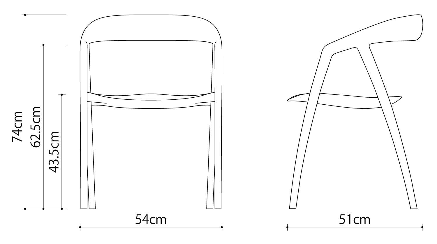 | サイズ | W54 × D51 × H74cm | SH43.5cm |