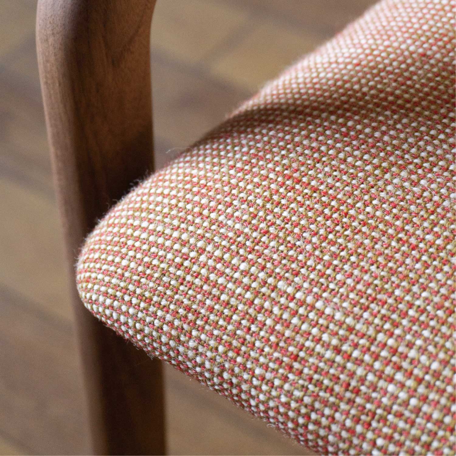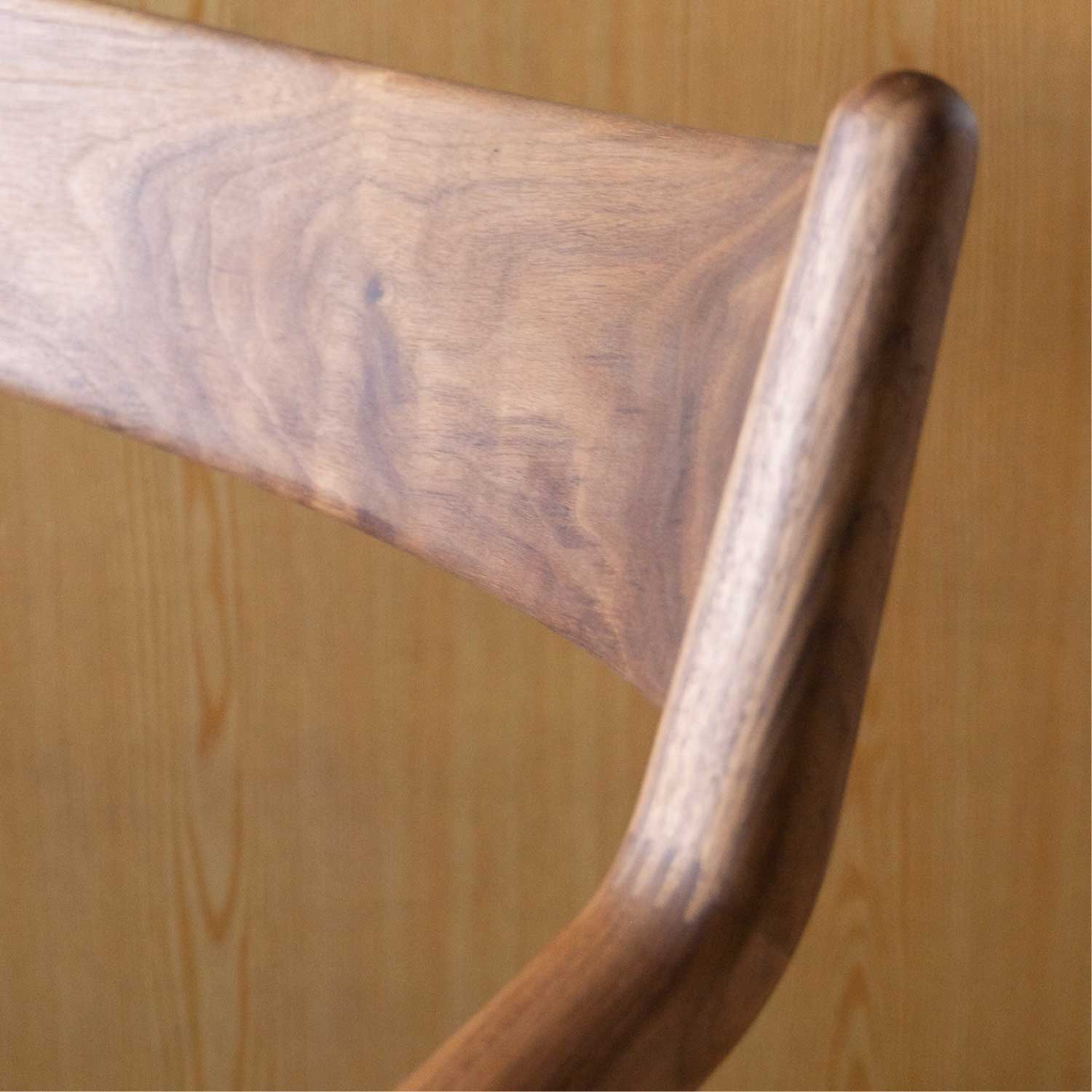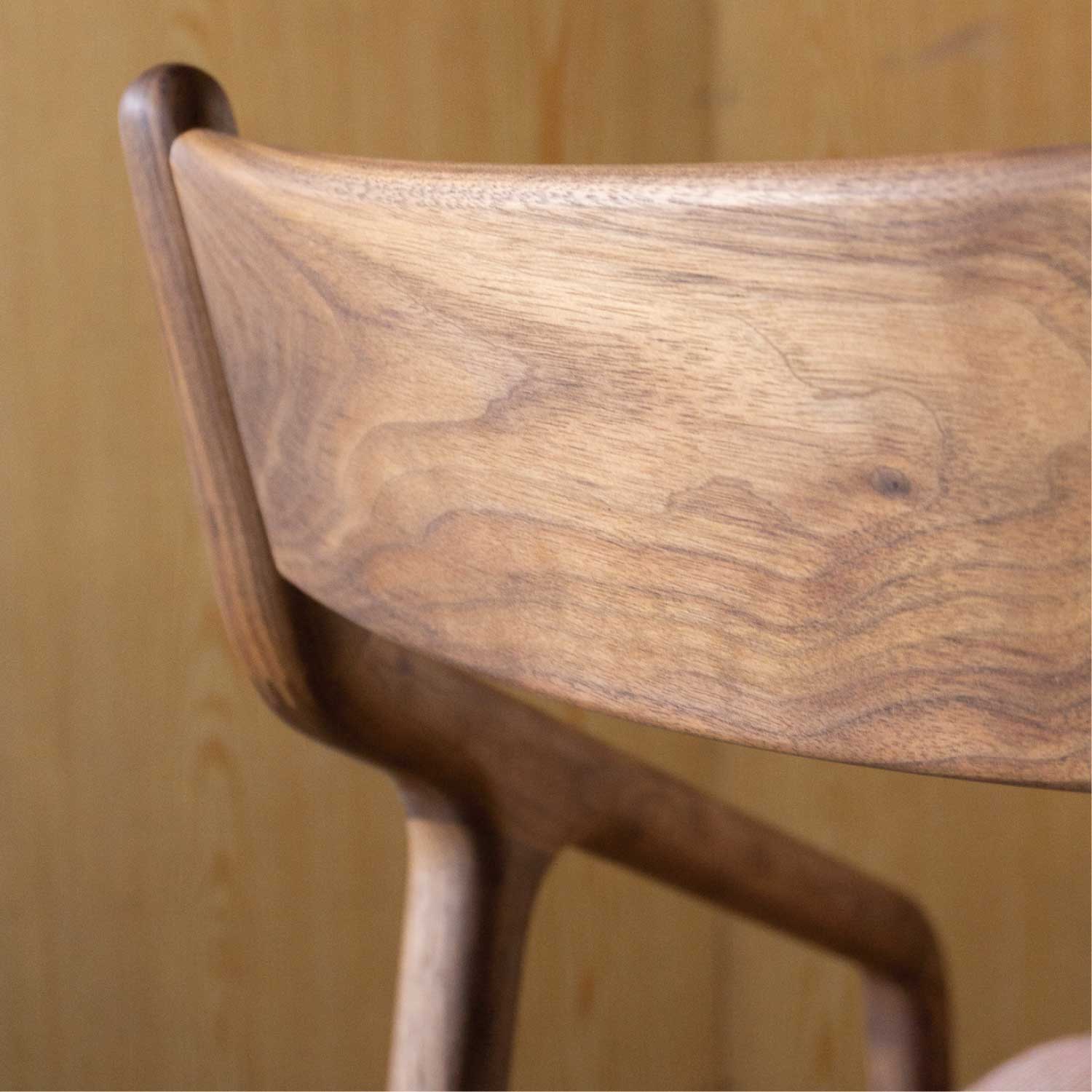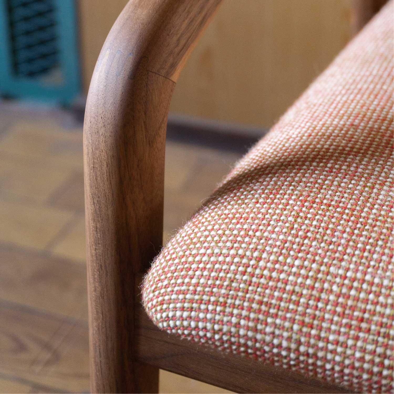 強度のためだけではなく、デザインのポイントになっているフィンガージョイント。このイスでは四角と丸が融合しています。脚先では丸い断面が徐々にアームの部分では丸四角になり手にやさしい触り心地を与えます。そして背で丸に戻る。こんなところにも胡椒(=pepe)のような技術の隠し味が効いているのです。