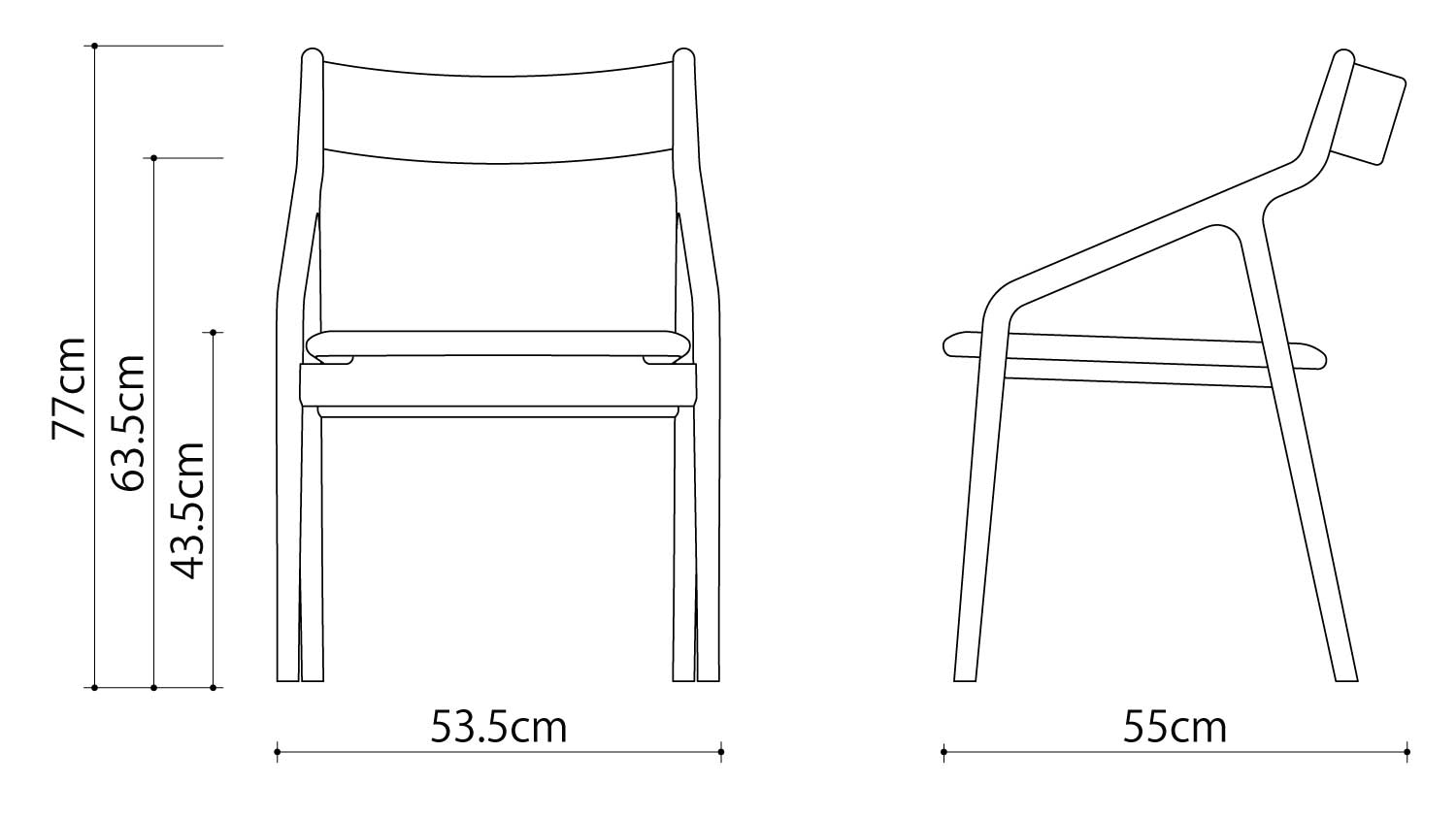 | サイズ | W53.5 × D55 × H77cm | SH43.5cm |