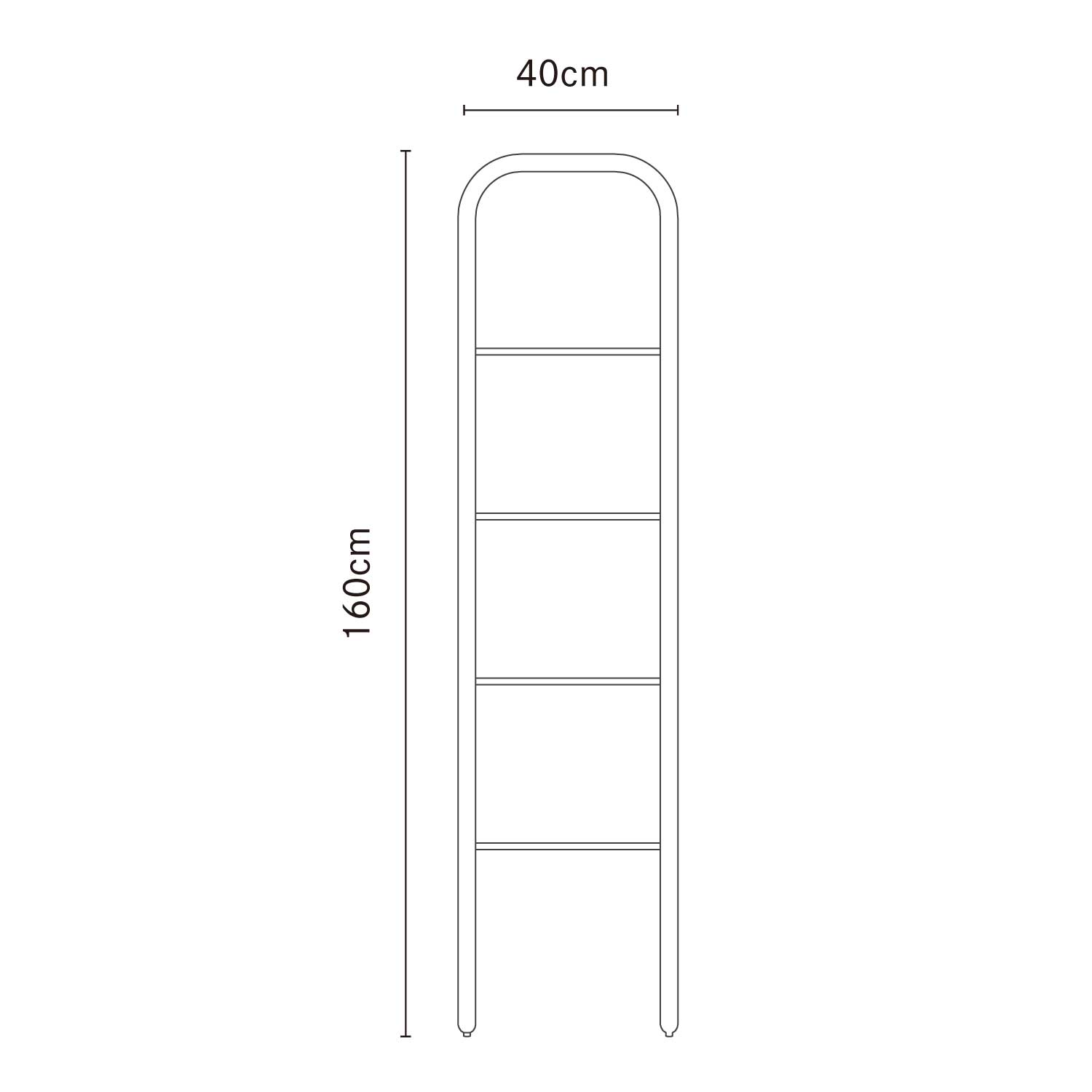 1本の丸棒を曲げてでできたようなミニマムなデザインのミラーとハシゴ状のハンガー。