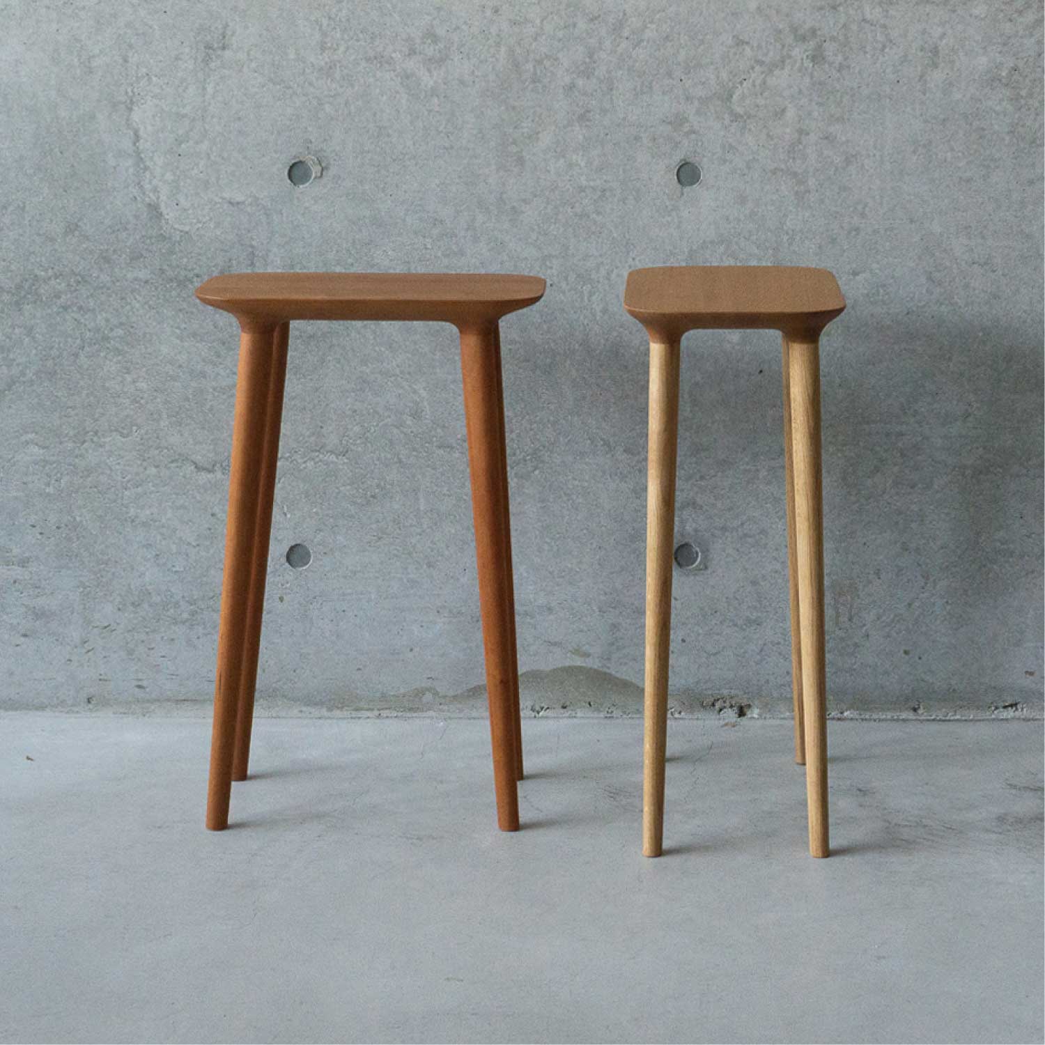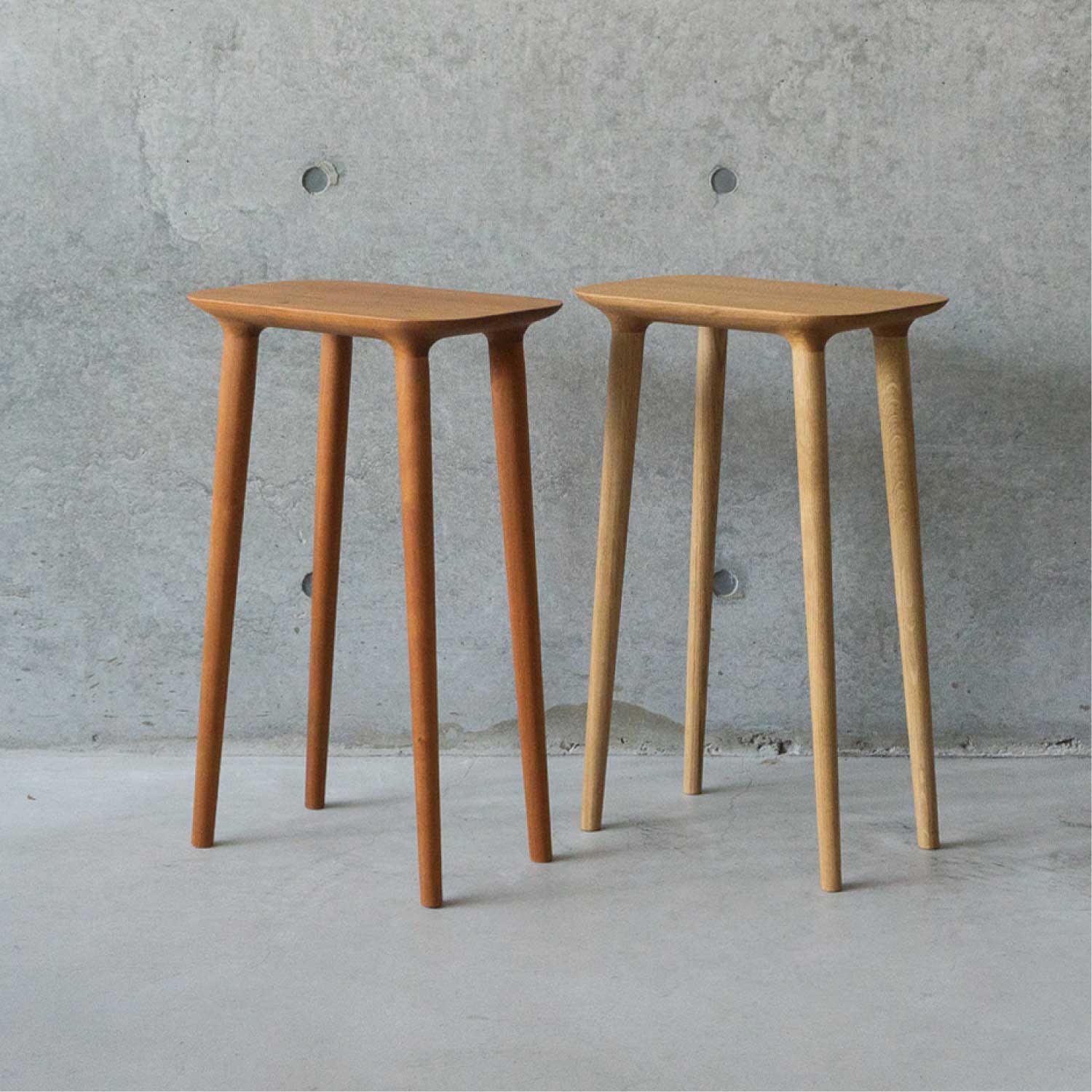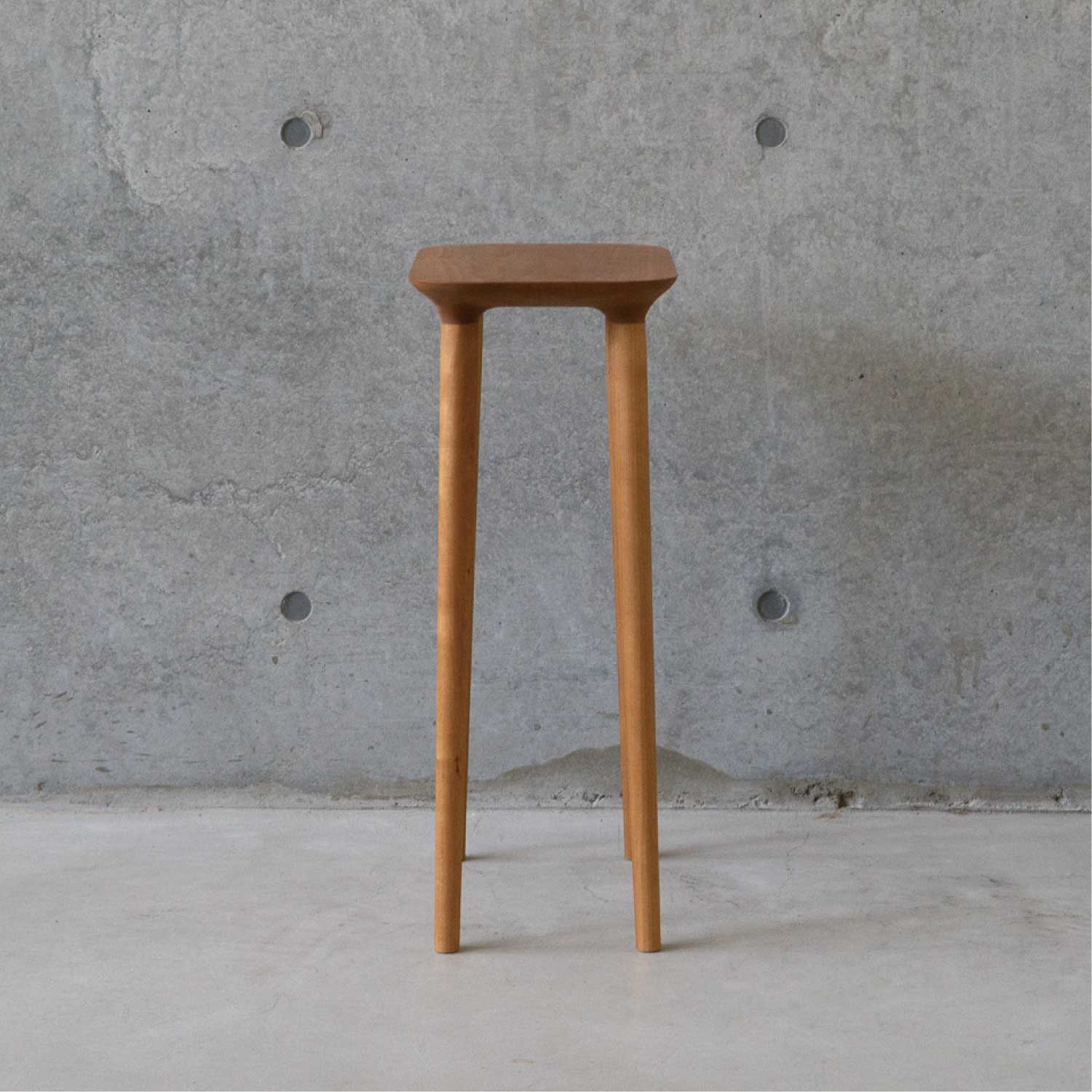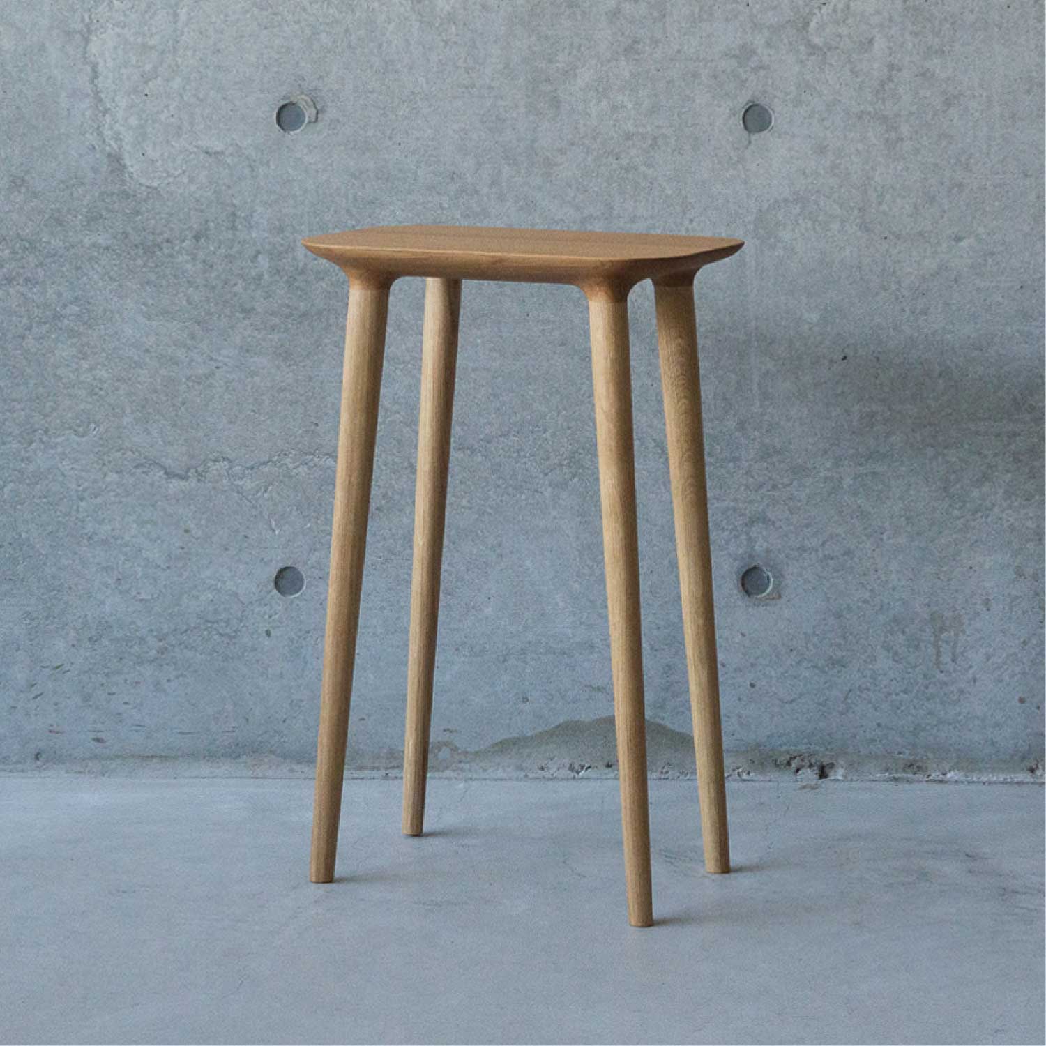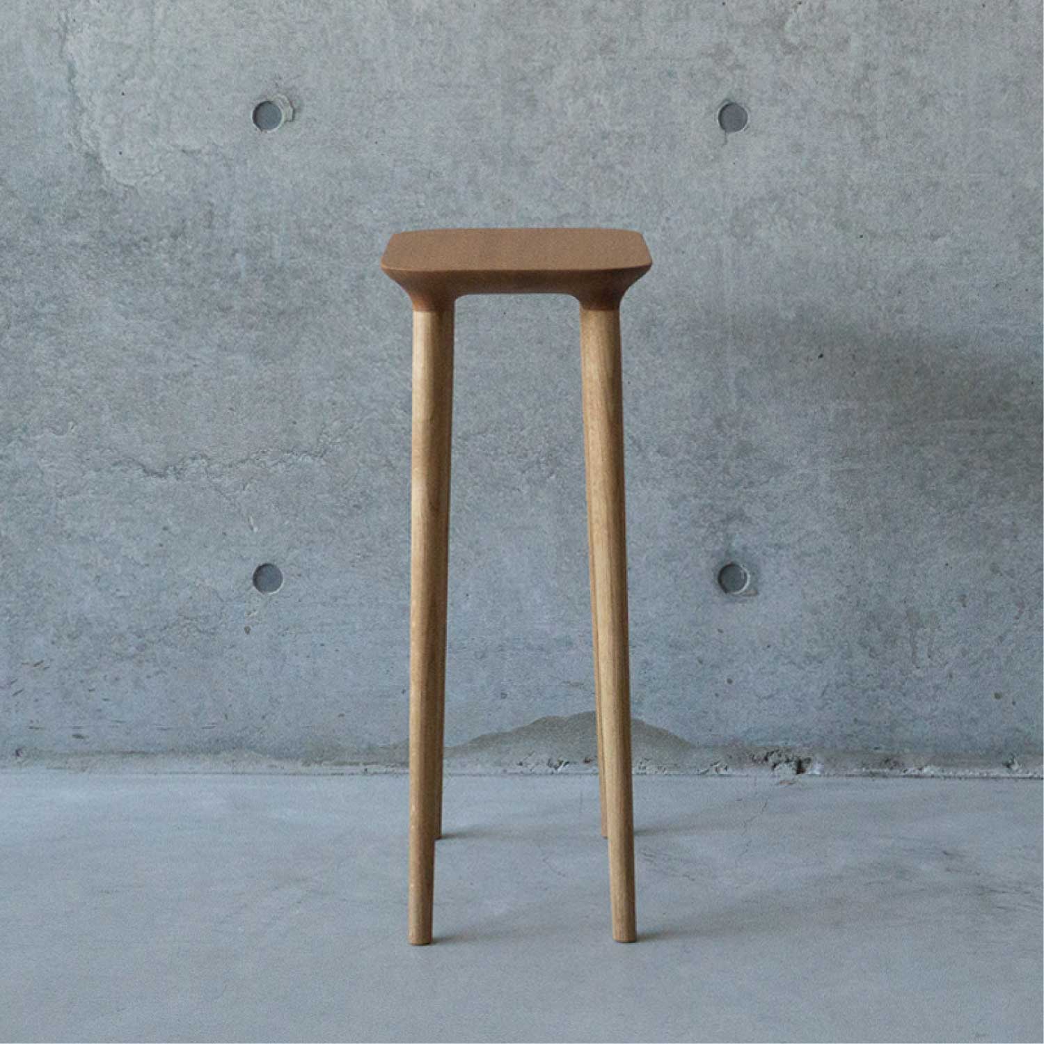 主にキッチン空間で使われることを考えて作られたシンプルで小ぶりなスツールです。料理中に少し腰掛けたり、何か物を置いたりできるように座面が高く、フラットになっています。お好みで脚をカットすることができるのでスツールやサイドテーブルとしても色々な場所でお使いいただけます。座面の裏側のディティールにもこだわって作られています。