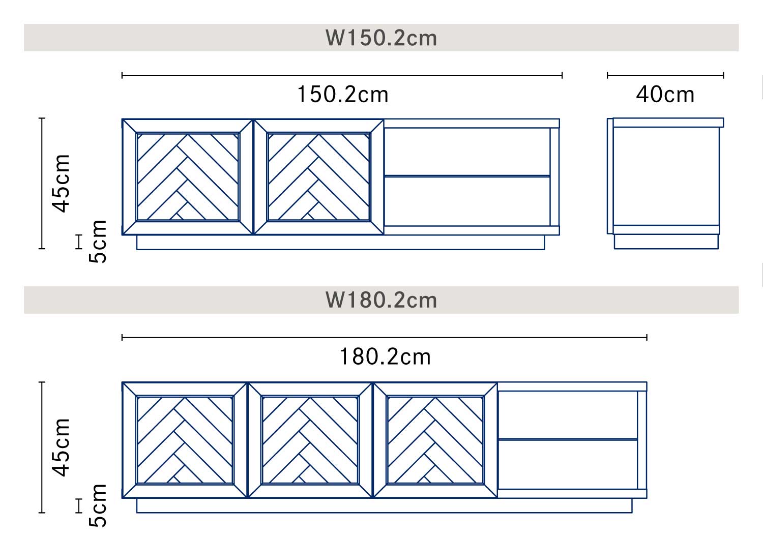 | サイズ | W150.2cm:W150.2 × D40 × H45cm W180.2cm:W180.2 × D40 × H45cm |