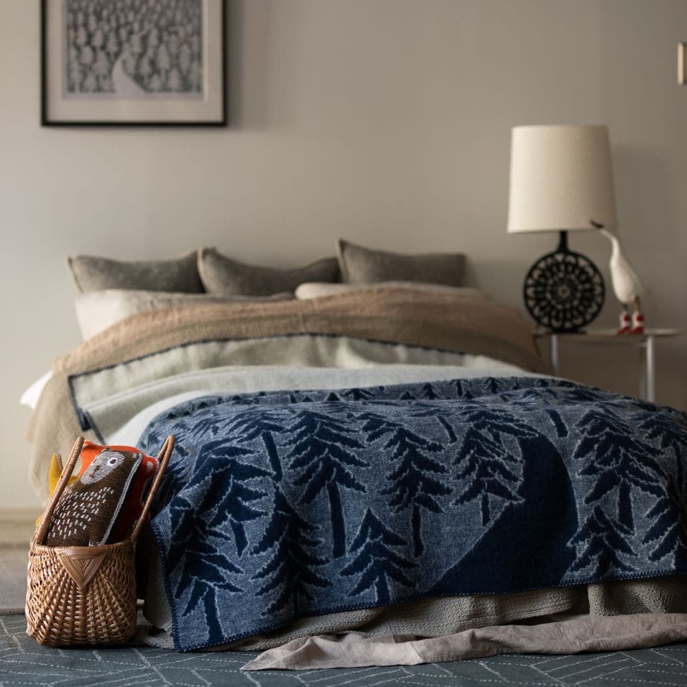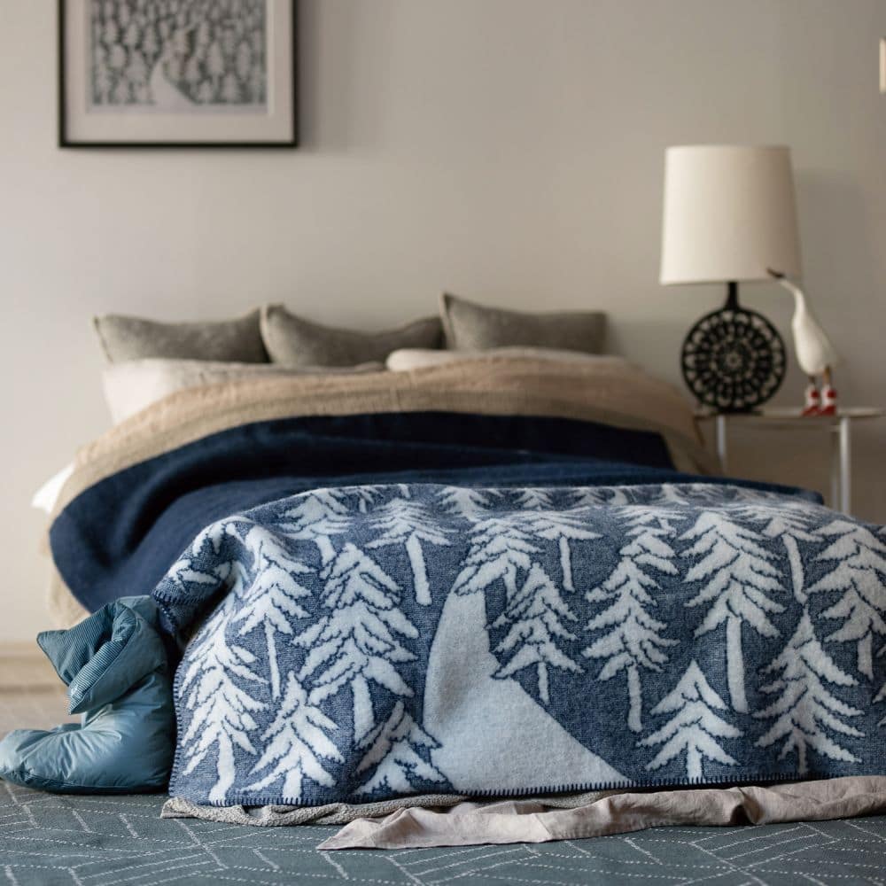 「HOUSE IN THE FOREST」は、上質なKLIPPANウールを贅沢に使用した180cm×130cmの大判サイズ。
