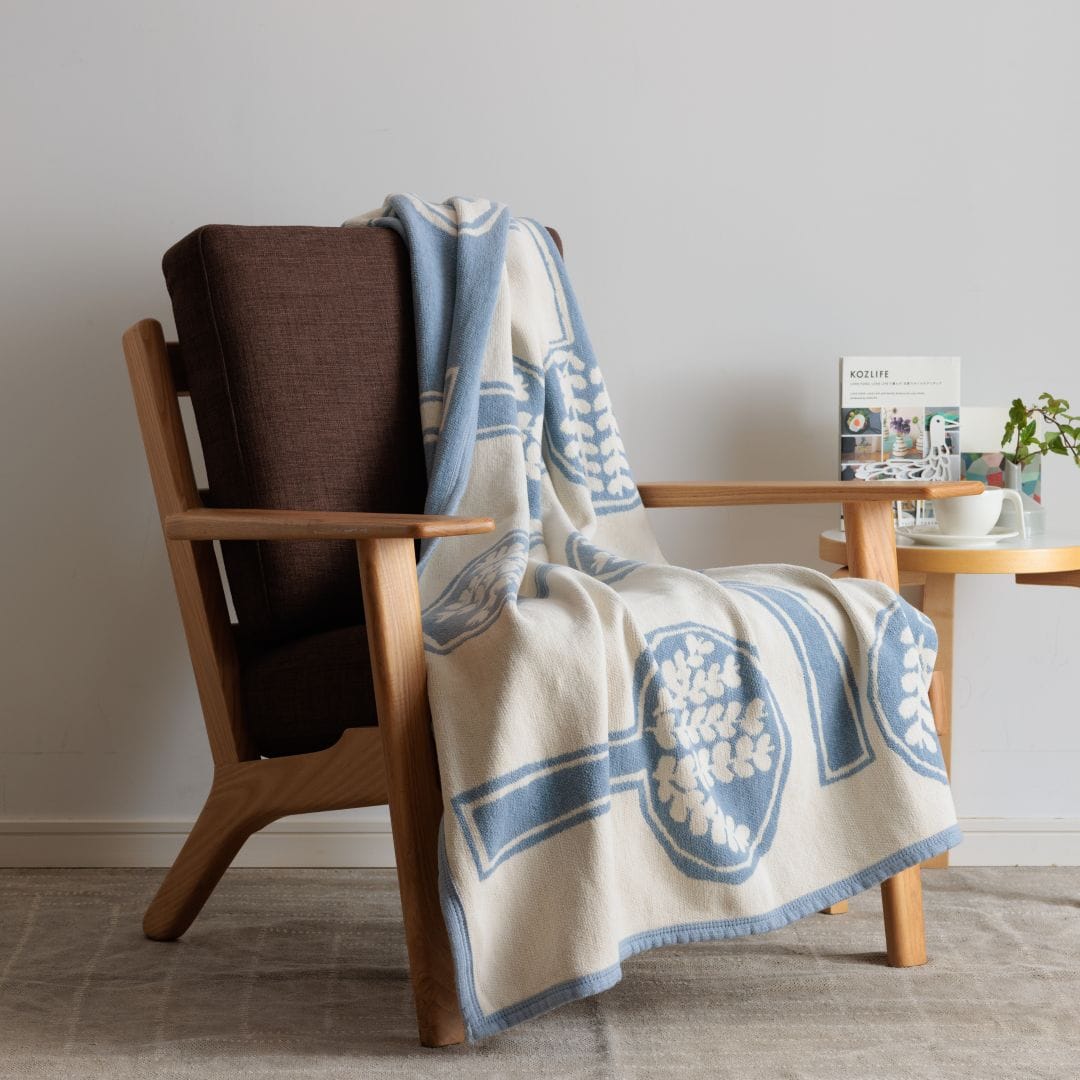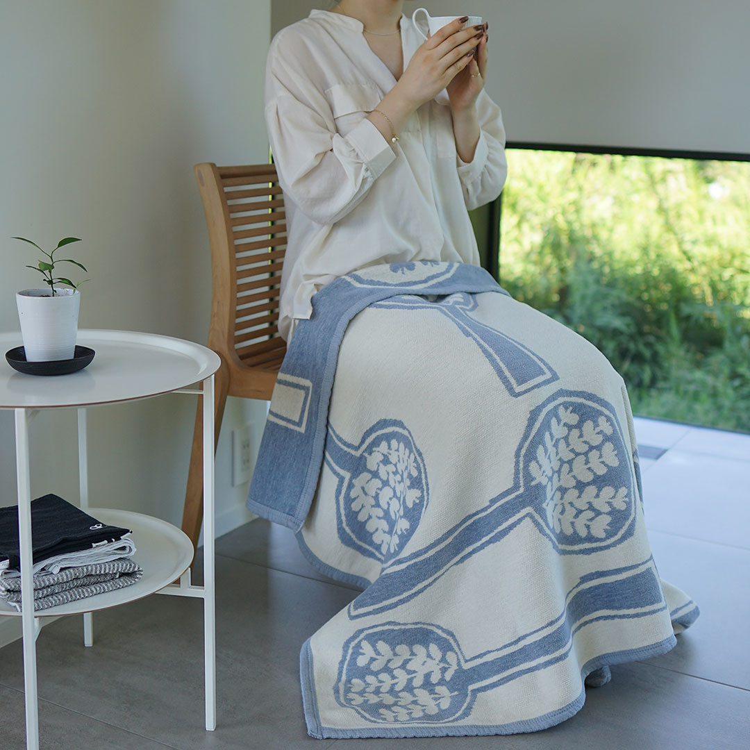 「FOREST SPOON」は、2014年にミナ ペルホネンとクリッパンがはじめてコットンブランケットのコラボレーションを開始した年に生まれた、記念すべき1枚です。スプーンの中に広がる森の世界は、デザイナーの皆川 明氏が「ピクニックにでかけるイメージ」でデザインしました。植物の生命力あふれるモチーフが、お部屋に躍動感を生み出します。