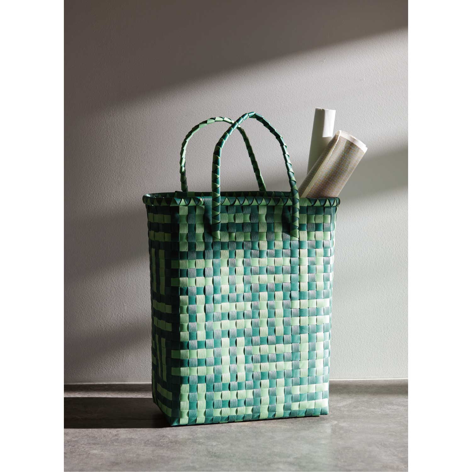 お買い物バッグとしてはもちろん、雑誌やブランケットの収納など、インテリアの一部としても活躍します。