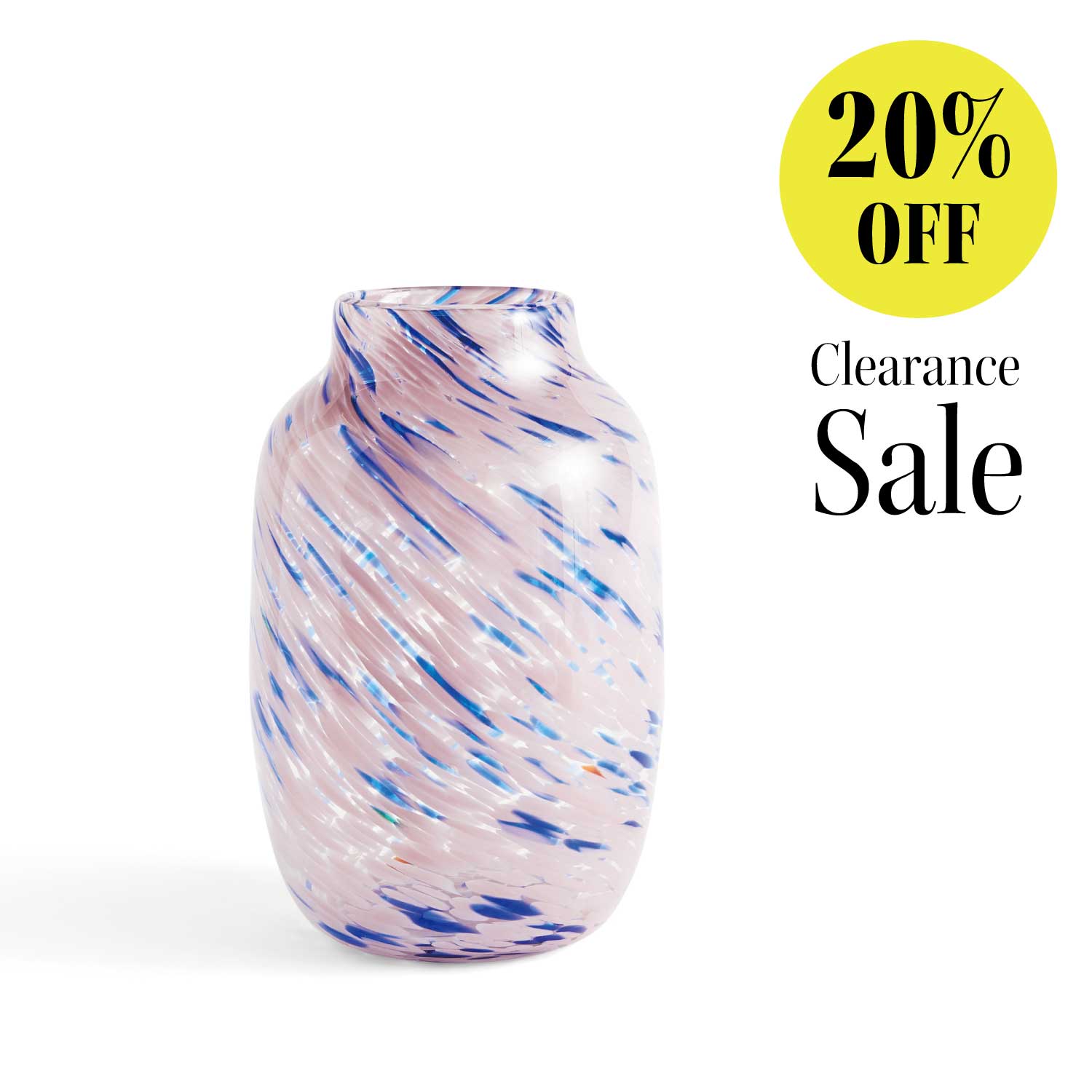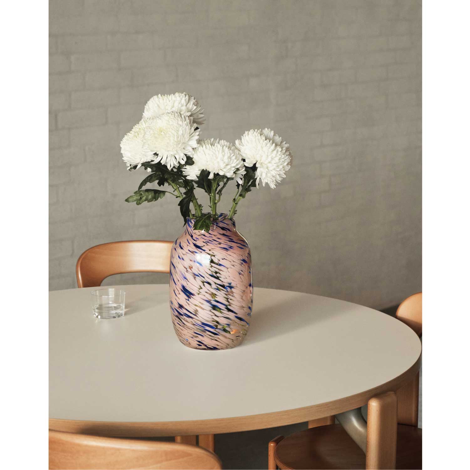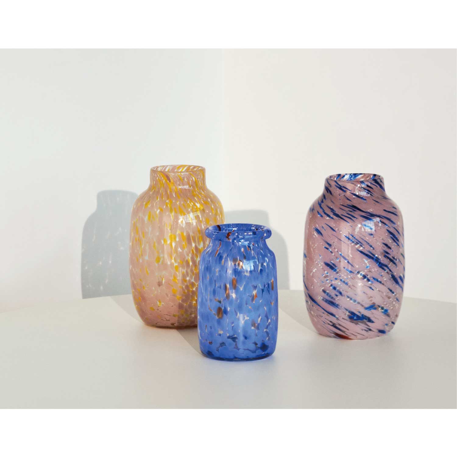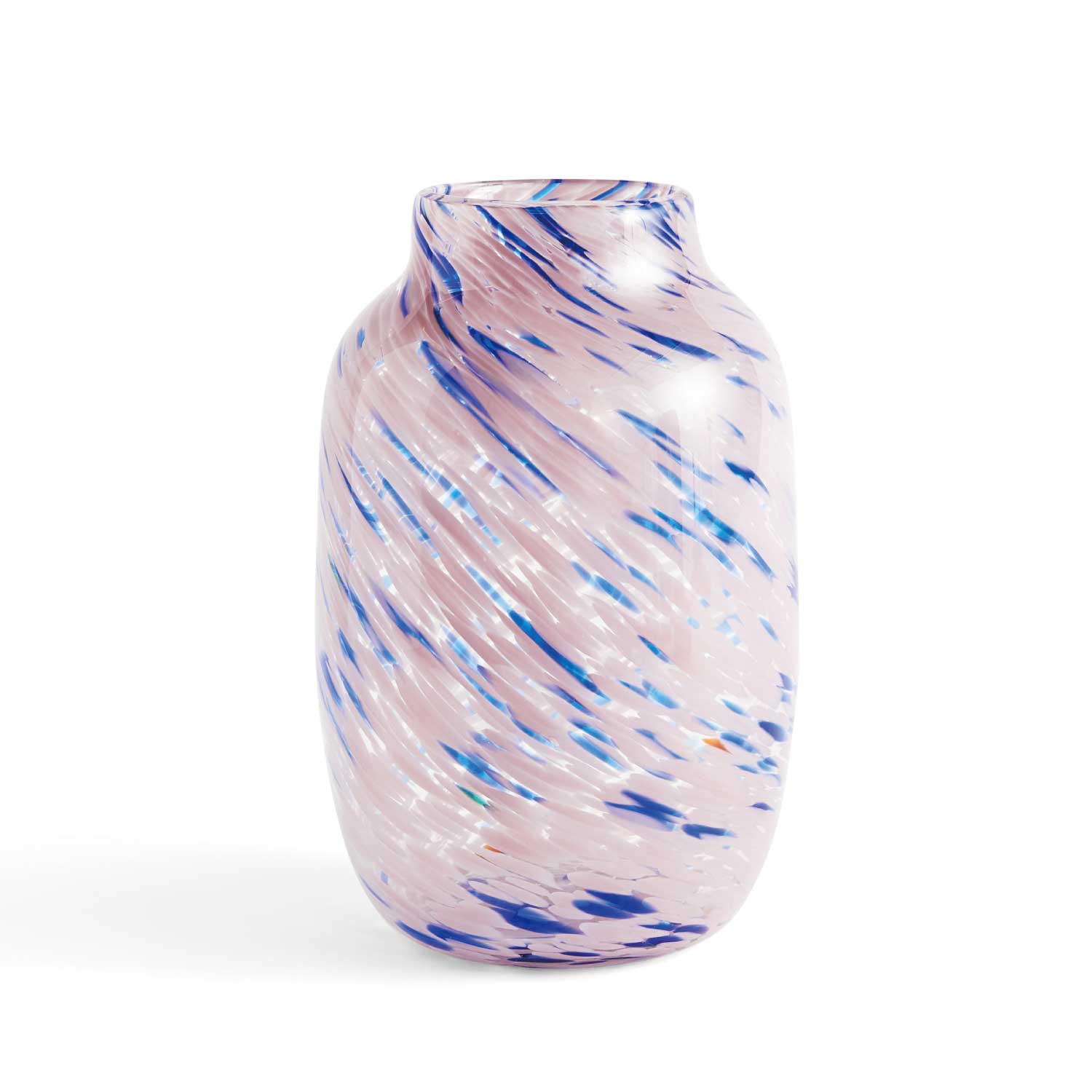 複数の色ガラスの点を重ねる特別なガラス吹き技法を用いて手作りされたスプラッシュベースは、独特の渦巻き模様が特徴です。さまざまなデザインがあり、花を飾るためだけでなく、装飾品としても使用できます。