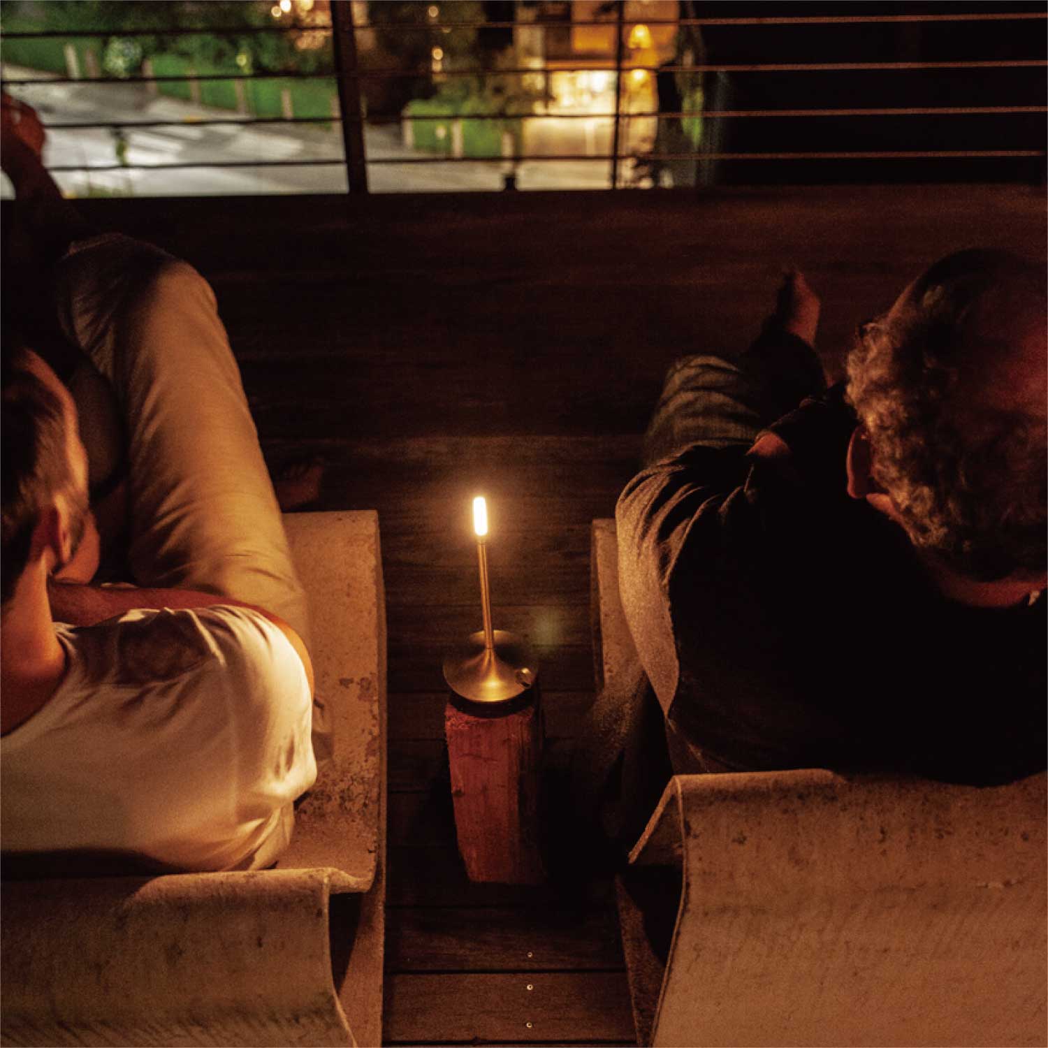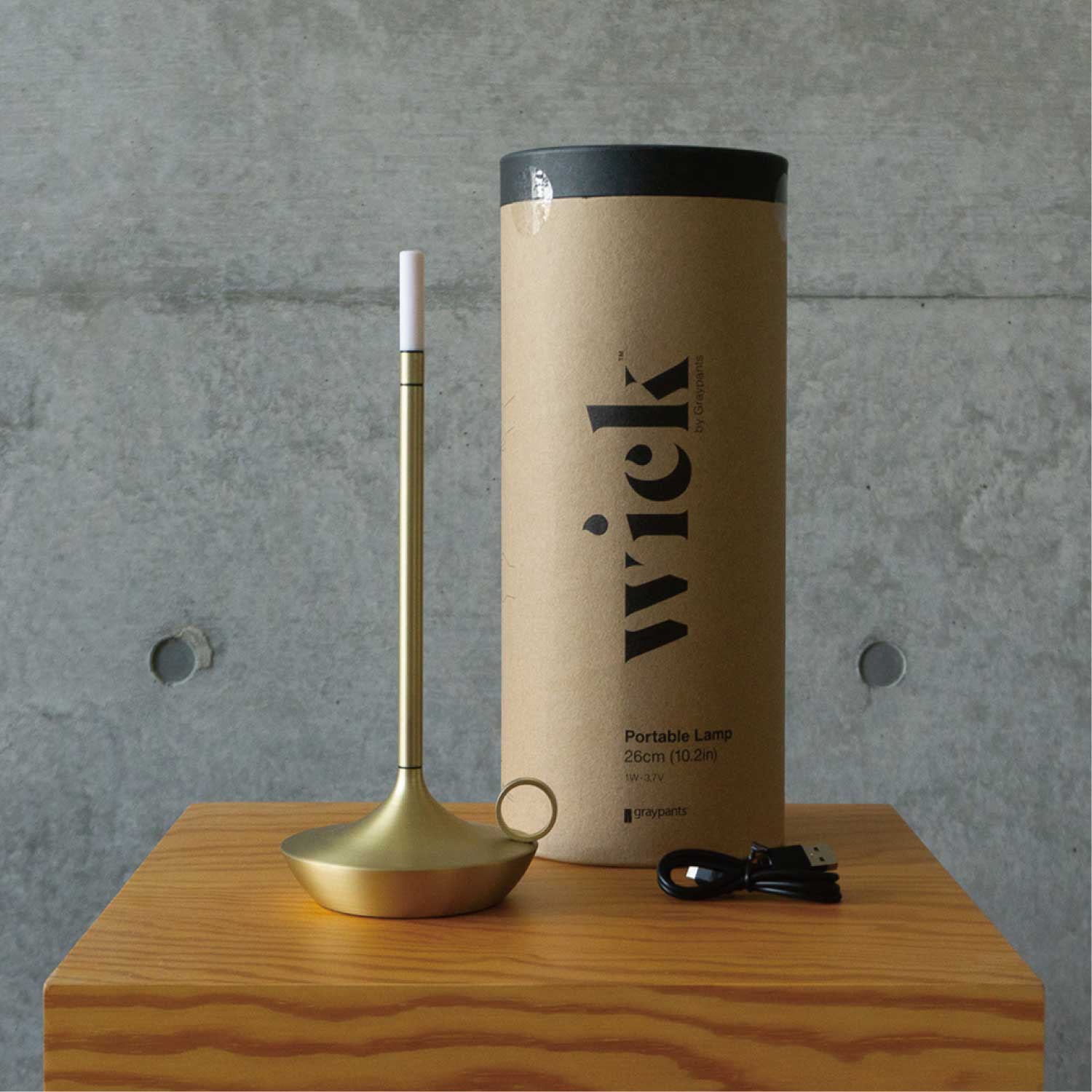 手持ちキャンドルホルダーのような上品なポータブルライトです。LEDモジュールの下を指でタッチすると3段階で調光します。カラーはゴールドとなります。