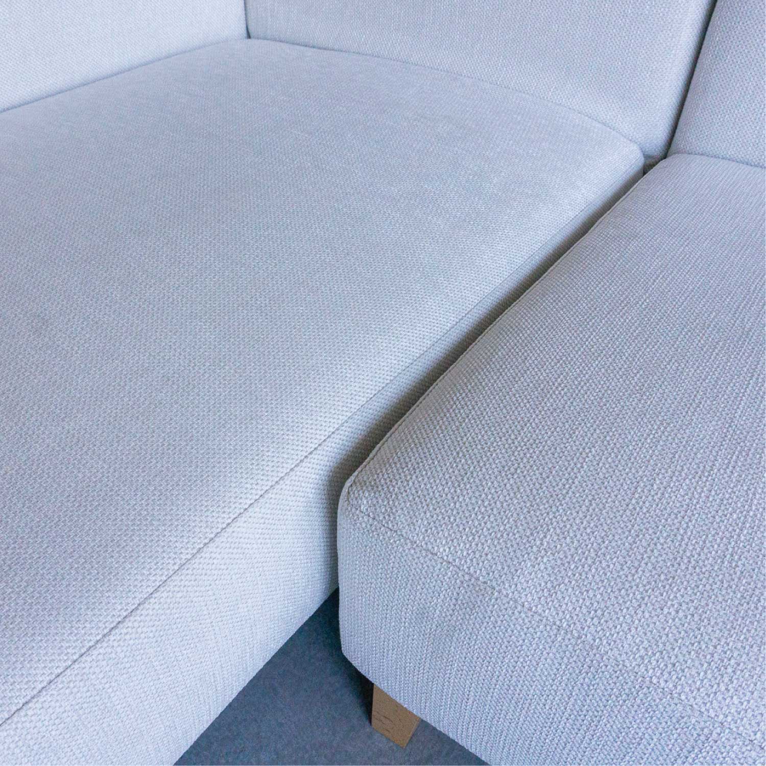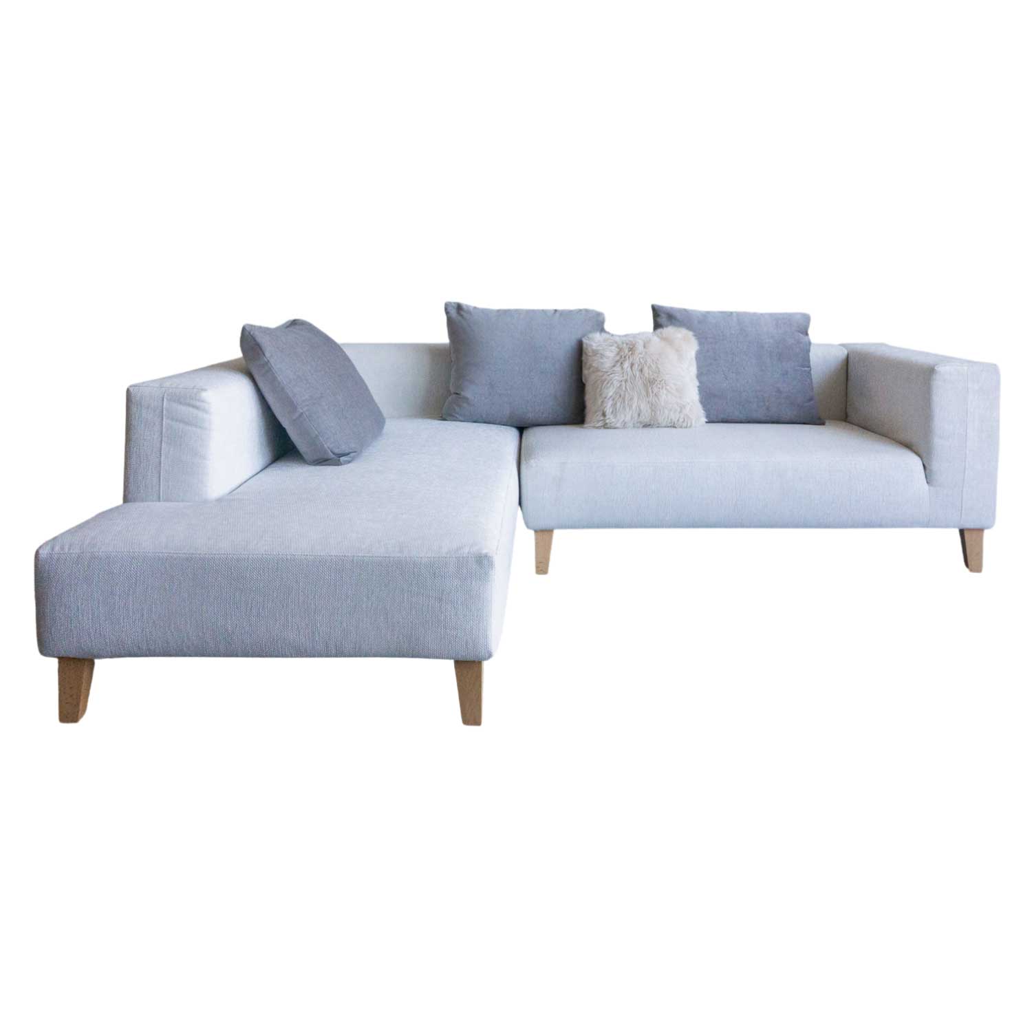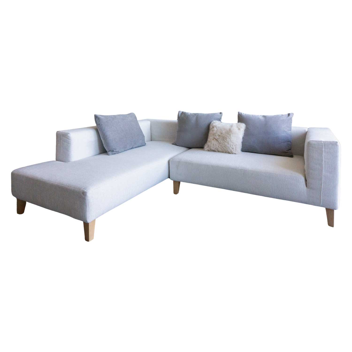 こちらの商品は写真左:3P カウチソファ(右側カウチ)と右:2PS 片肘ソファ(左)セットでの販売です。クッションは付属いたしません。お客様でご用意くださいませ。