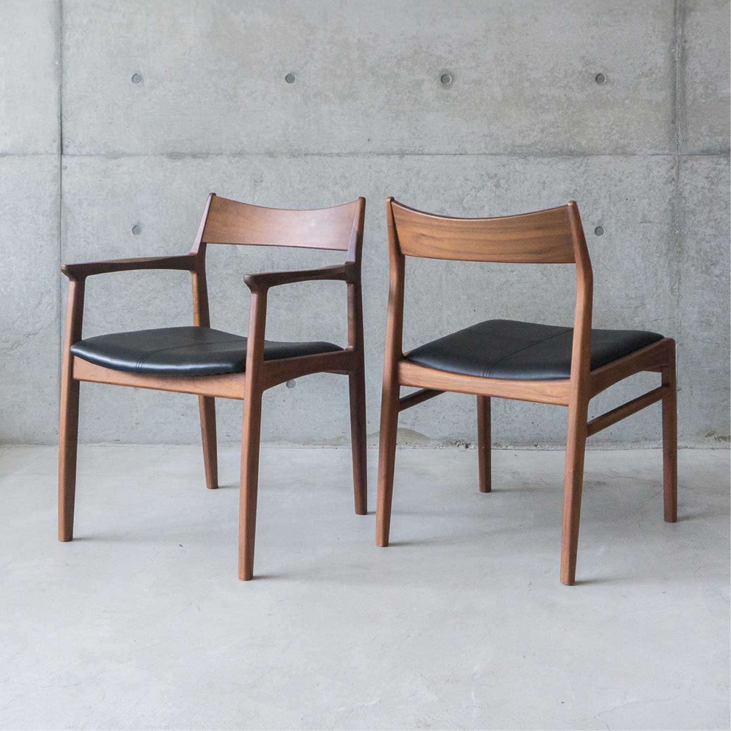 こちらの商品はアームチェア1脚+アームレスチェア1脚の2脚セットでの販売です。