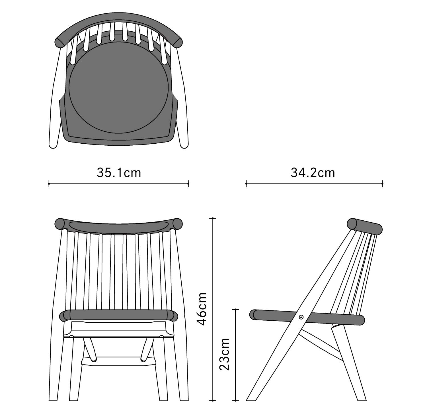 | サイズ | W35.1 × D34.2 × H46cm | SH23cm |