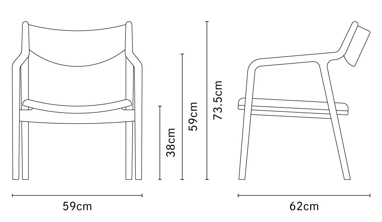 | サイズ | W59 × D62 × H73.5cm | SH38cm | AH56〜59cm |
