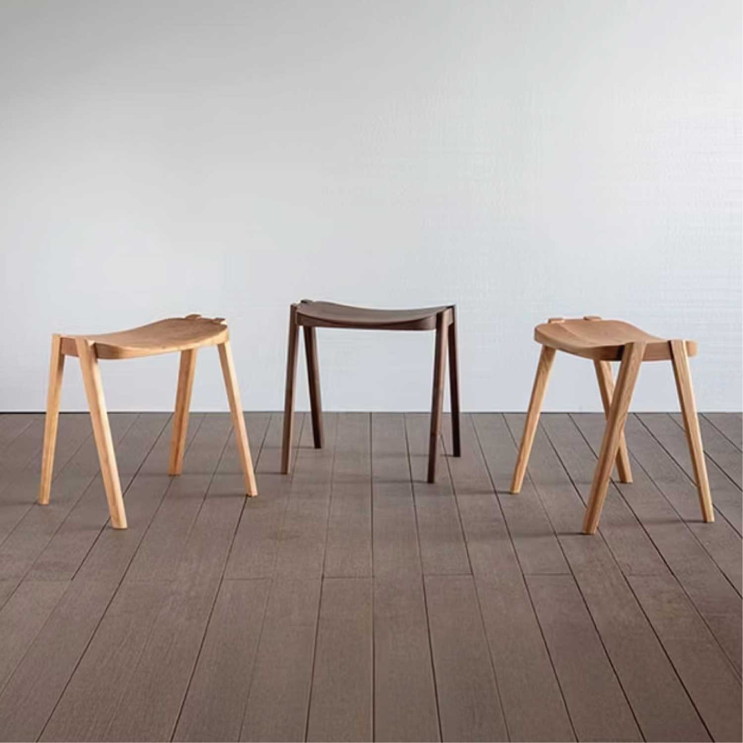 オール無垢材のシンプルなスツールです。キャッチチェアと同様に座板に直接脚が付き、貫がないユニークな構造。座板は大きなカーブに削られて、無垢材のチェアでありながら、軽快なイメージを醸し出しています。又、スタッキングも可能で使わない時はお部屋の隅に置いておけます。