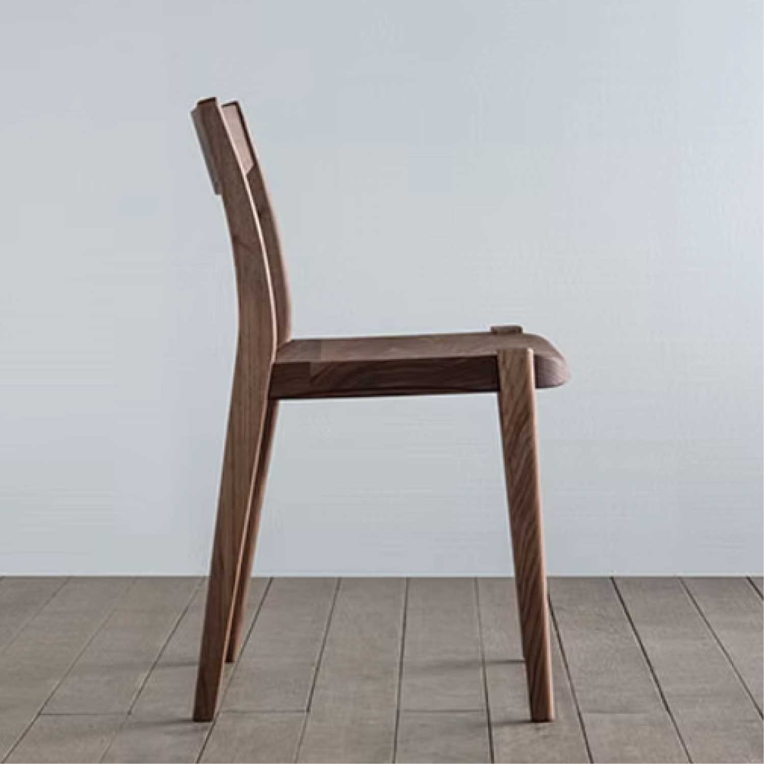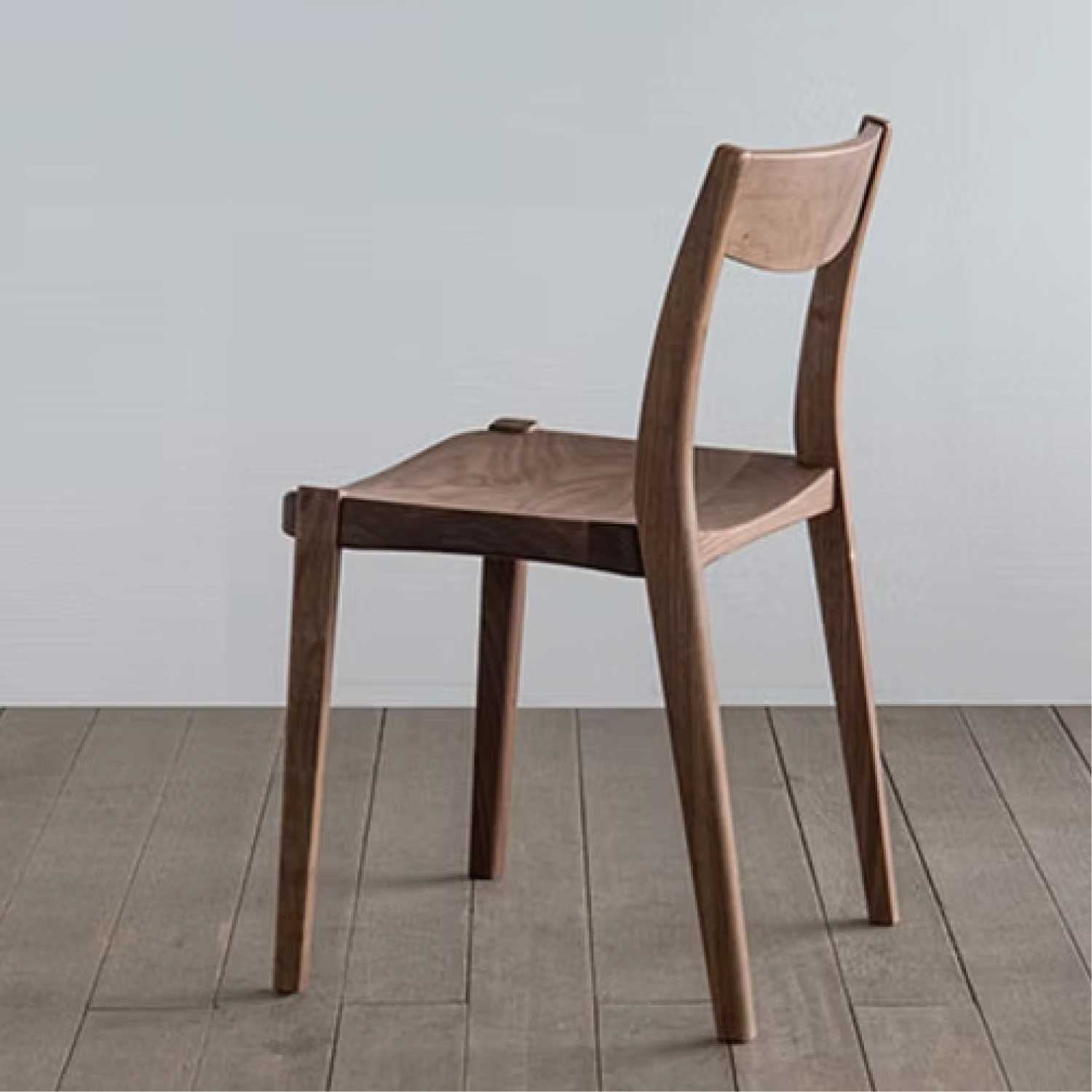 オール無垢材のシンプルなチェアです。座板に直接脚が付き、貫がないユニークな構造。座板は大きなカーブに削られて、無垢材のチェアでありながら、軽快なイメージを醸し出しています。背板も曲げ木で、座り心地もよいチェアです。