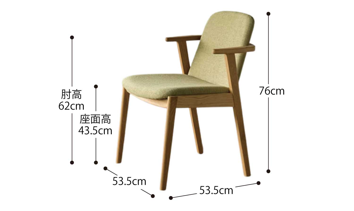 | サイズ | W53.5 × D53.5 × H76cm | SH43.5cm | AH62cm |
