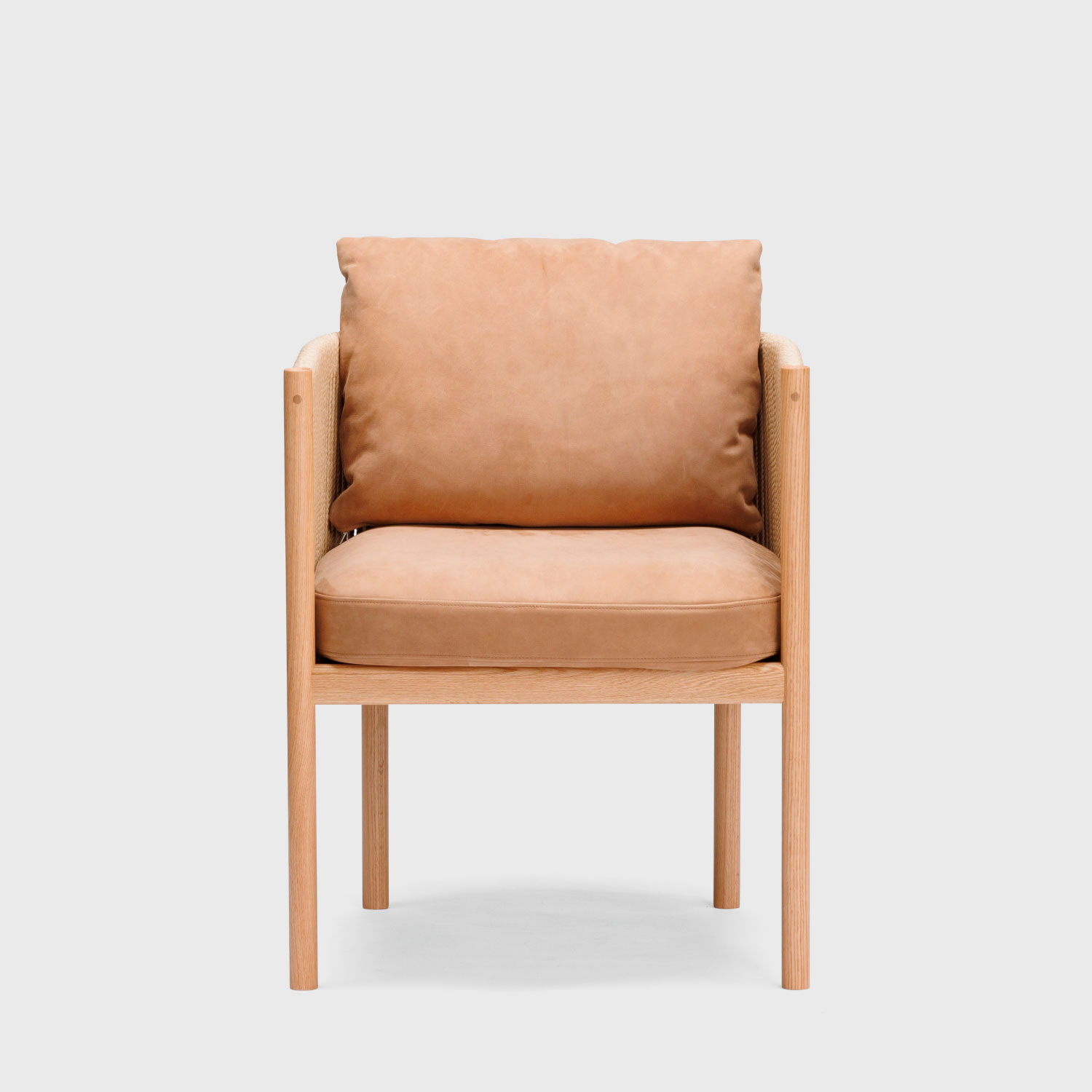 ブレイドチェアは、ノームアーキテクツのブレイドコレクションに新たに追加されたアイテムです。ブレイドコレクションでお馴染みのペーパーコードで編まれたアームレストに加え、三日月型の背もたれが特徴的なこのチェアは、贅沢なダイニングルームだけでなく、ライティングデスクにも合わせることができ、またコンパクトなラウンジチェアとしてもお使いいただけます。ブレイドチェアは元々、トランクホテル代々木公園のためにデザインされたチェアでしたが、2023年の有明デザインワークショップでさらにブラッシュアップされ、私たちのコレクションに採用されました。座面の高さはダイニング用とラウンジ用の2種類からお選びいただけます。
