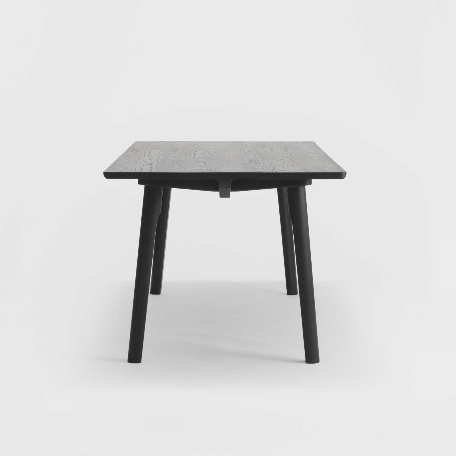 テーブル下にのぞく「梁」は、天板と一体となってそのまま脚へとつながる構造。普段はあまり意識されない部分ですが、このテーブルの見どころのひとつです。