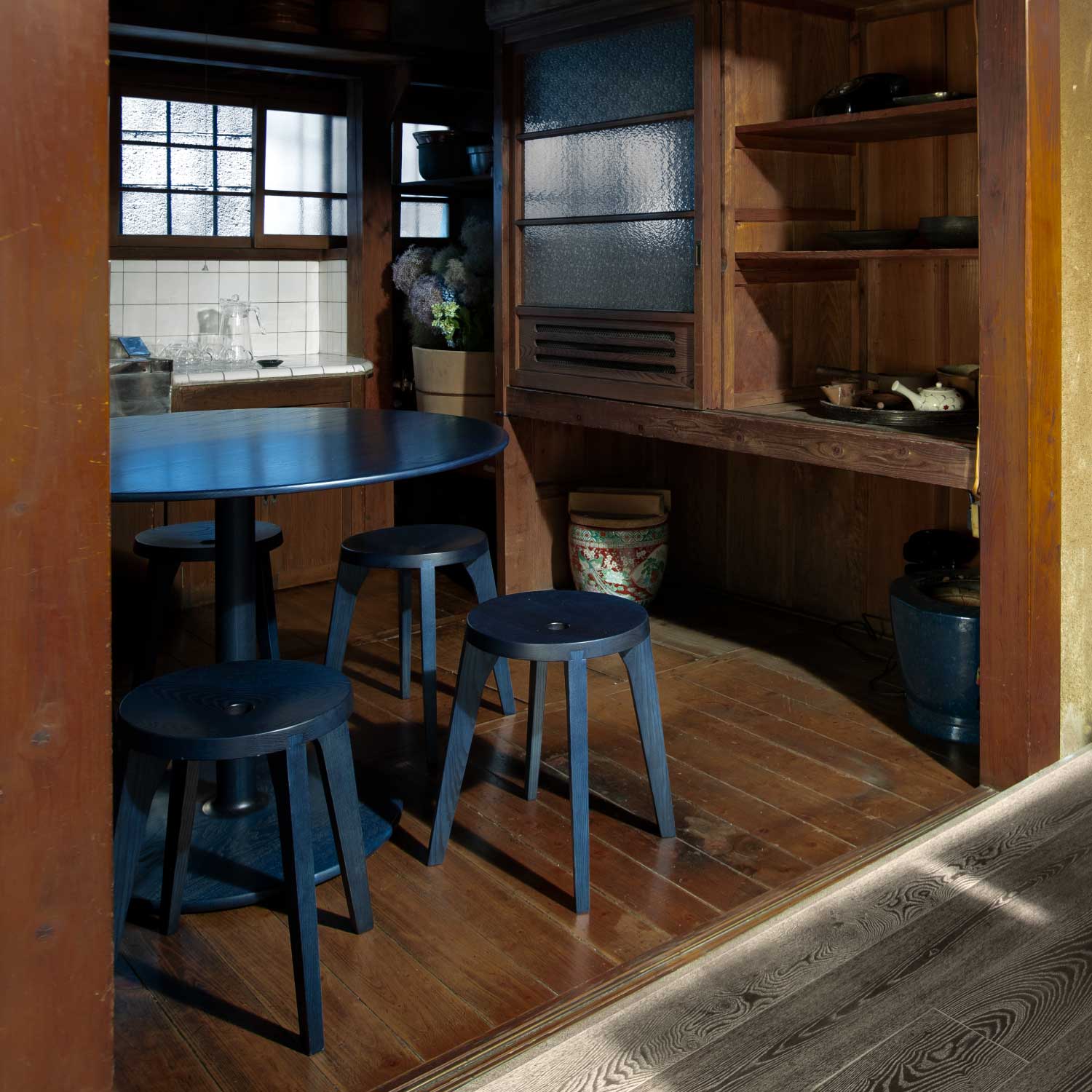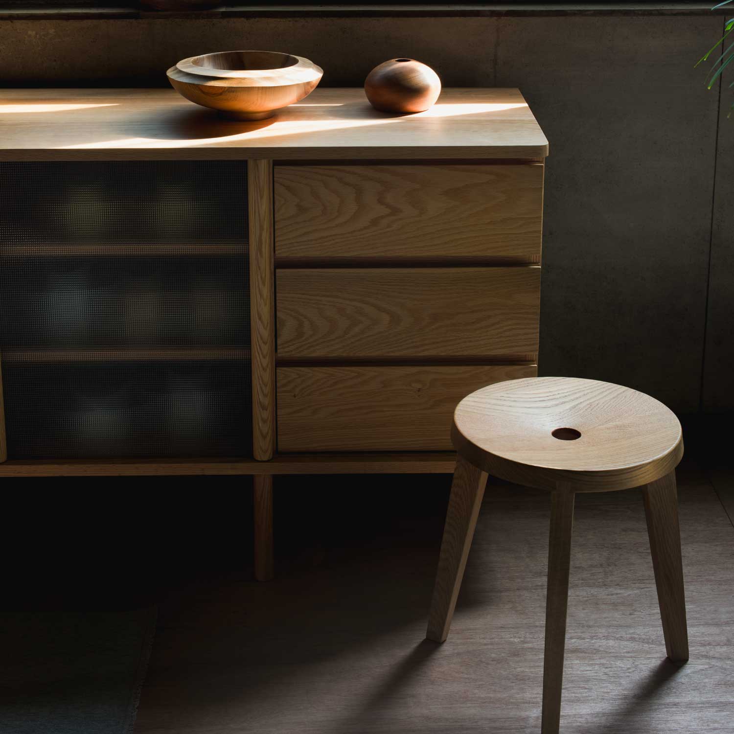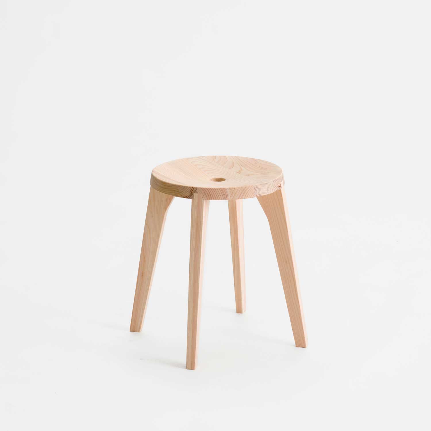 非常に珍しいジョイントのやり方であると感じている。新しい継ぎ手を追い求め数千年の歴史の中でも、このダブテイル継ぎ手は私に取って最高の美しさ以外何ものでもない。私なりのやり方でこの美しさを表現したのがこのスツールである。座面の僅かなカーブにより座った時の掛け心地は体感してもらうしかない。