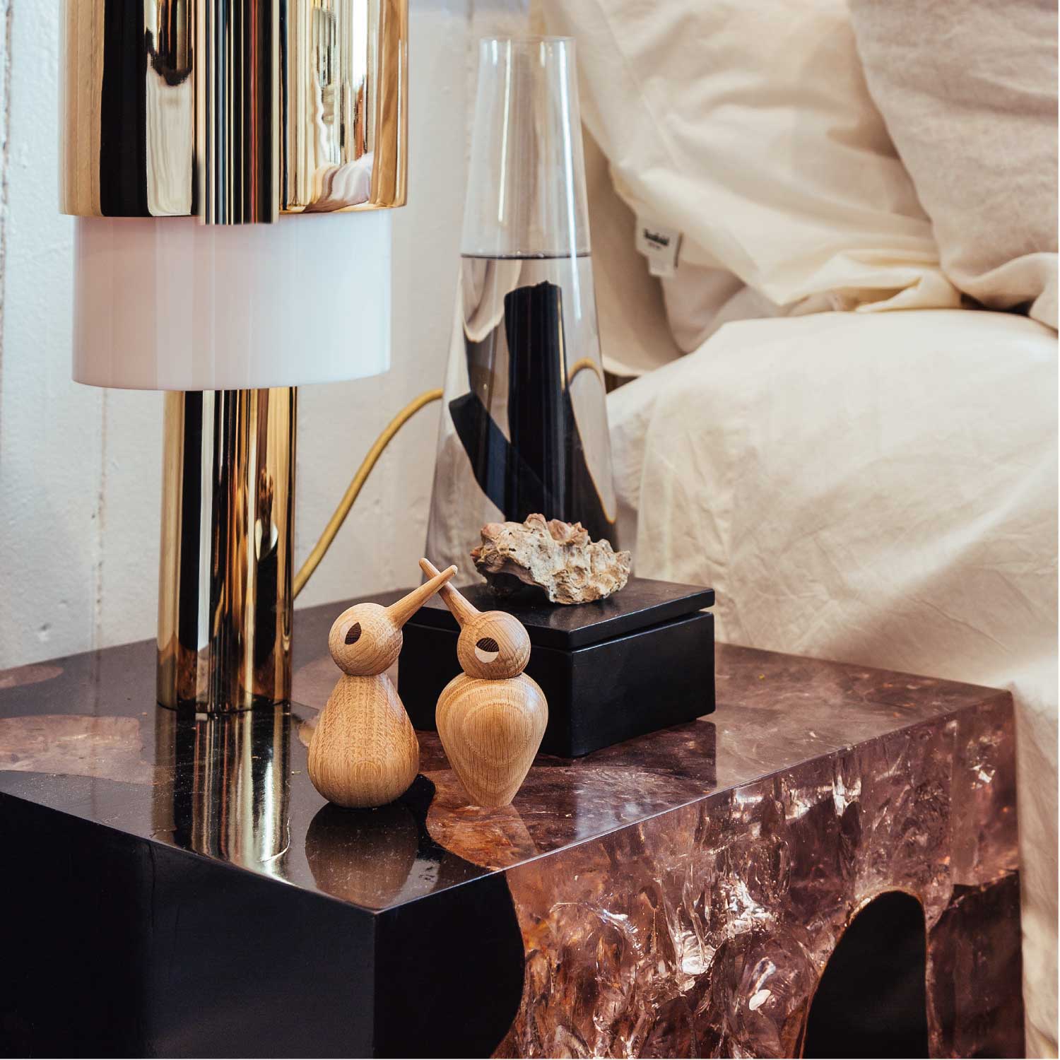 1959年に誕生した、デンマークデザインを象徴する木製オブジェ。頭の向きを変えるだけで表情が生まれ、見る角度によって異なる印象を楽しめます。シンプルな構造ながら、どこか感情を感じさせる佇まいが魅力です。無垢材ならではの自然な風合いと、一点ごとに異なる木目も特徴。サイズ違いで並べることで、空間にさりげないストーリーが生まれます。
