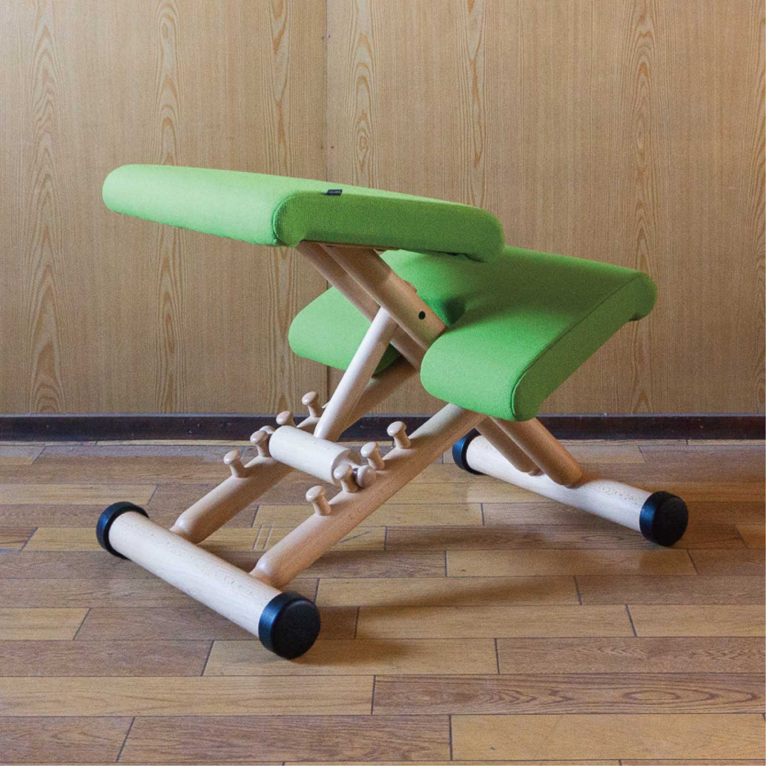 どこへ行くときも、何をするときも、「マルチ・バランス」を持って行ってください。この多機能チェアは持ち運びが可能な他に、高さ調節機能により様々な座り方ができるため、どのような場所でも応用性を生み出します。マルチ・バランスでは、胴体と大腿部の間の角度をどのくらいにするべきかを自分で決められます。その角度を最も急にすれば、背骨にかかる緊張は立っているときと同じくらいに軽減され、逆に緩くすれば、子どもにとっては椅子と机が一体となるような機能を果たします。しかし、この椅子の多機能性はそれだけではありません。持ち運ぶのに軽く、折りたたむことも出来るので、壁に引っ掛けたり、立て掛けたりすることもできます。