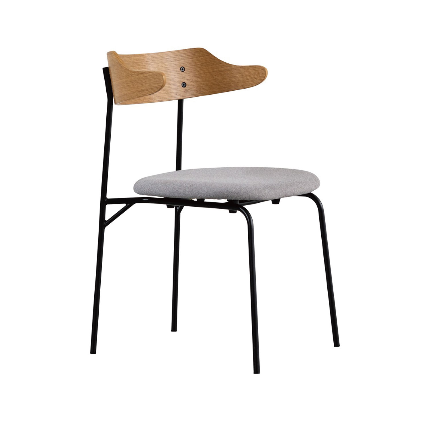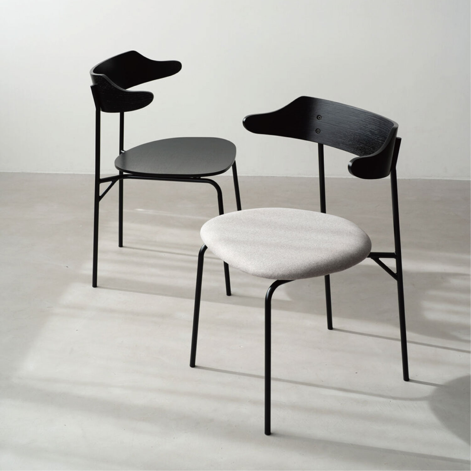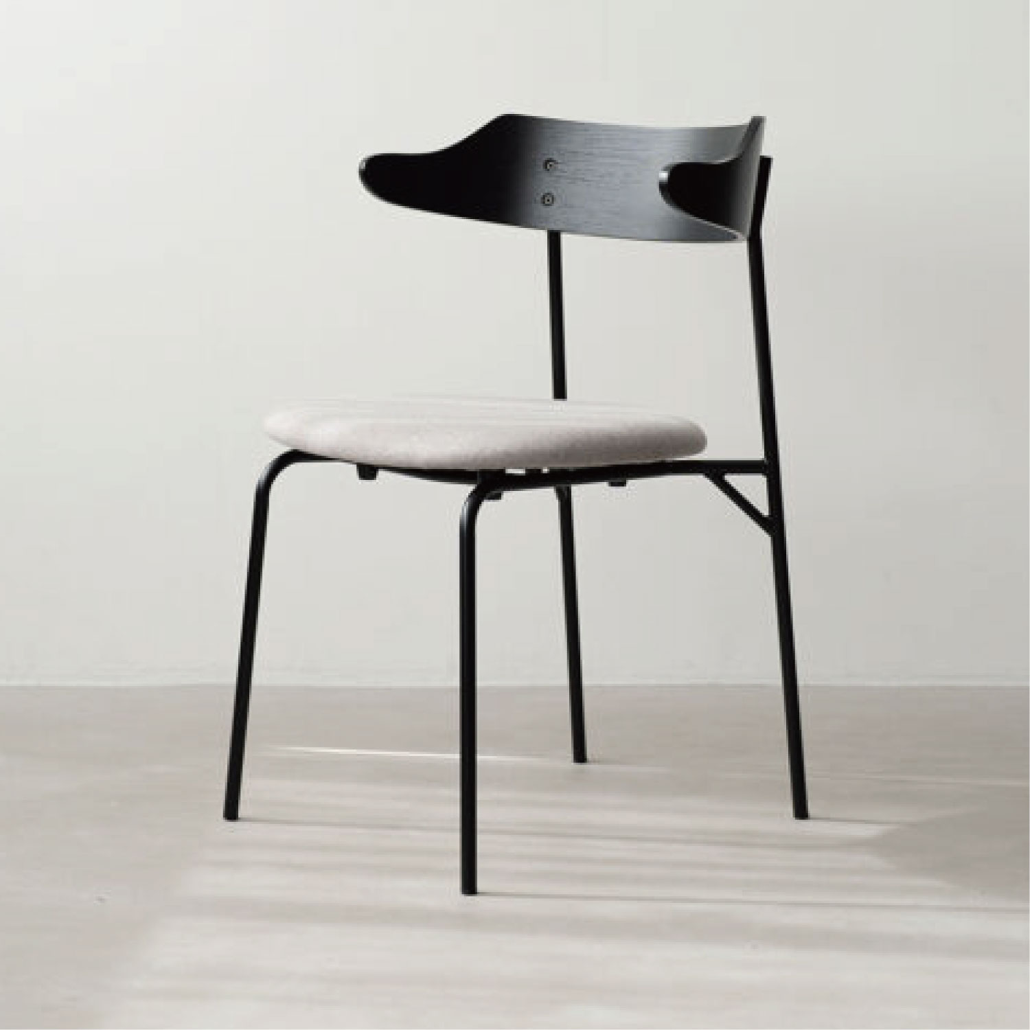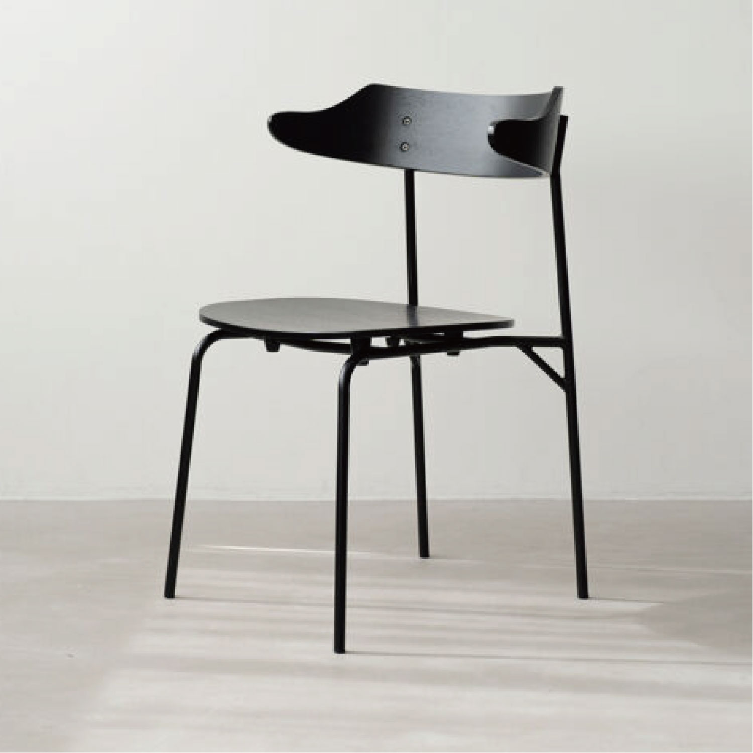 繊細なラインのシンプルなフォルムが魅力のチェア。曲線美の美しい湾曲した背面は背あたりが良い形にデザインされています。