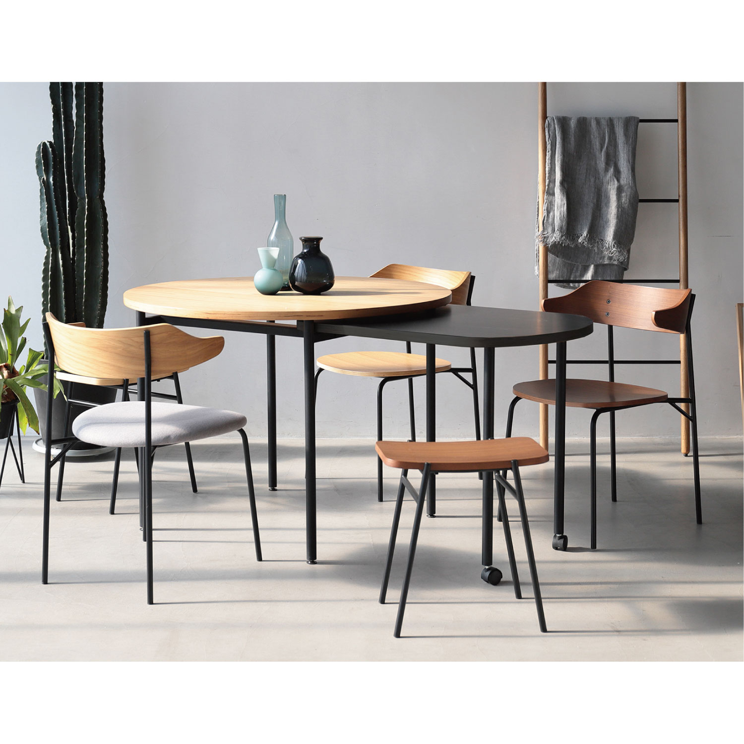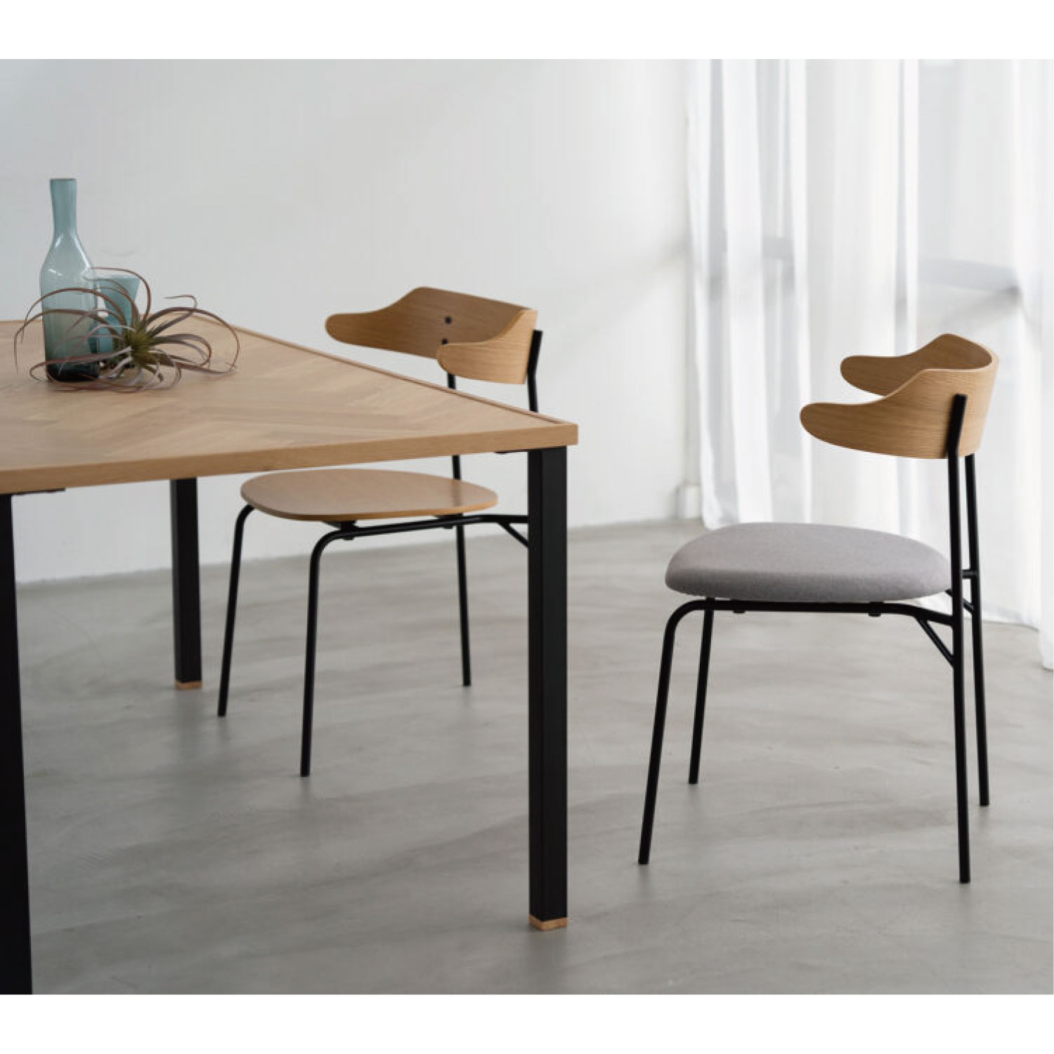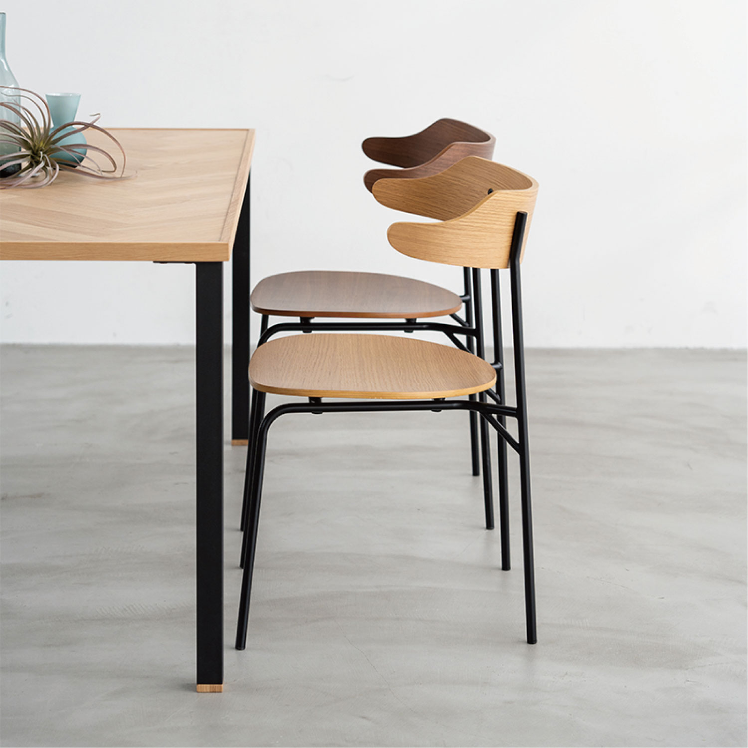 | 素材 | OAK・BK 板座 オーク突板、スチール OAK・BK 布座 オーク突板、スチール、ファブリック、ウレタンフォーム WN 板座 ウォールナット突板、スチール WN 布座 ウォールナット突板、スチール、ファブリック、ウレタンフォーム |