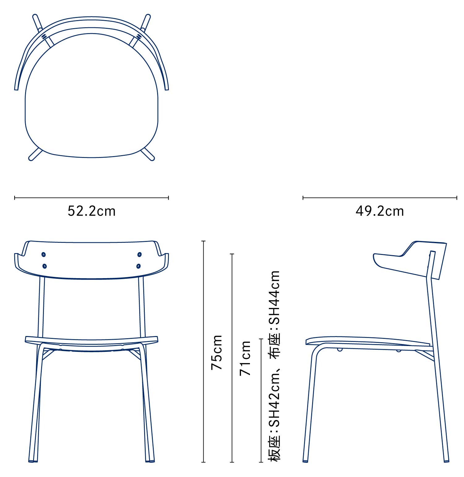 | サイズ | [CHAIR / WOOD] W52.2 × D49.2 × H75 × SH42cm [CHAIR / FABRIC] W52.2 × D49.2 × H75 × SH44cm |