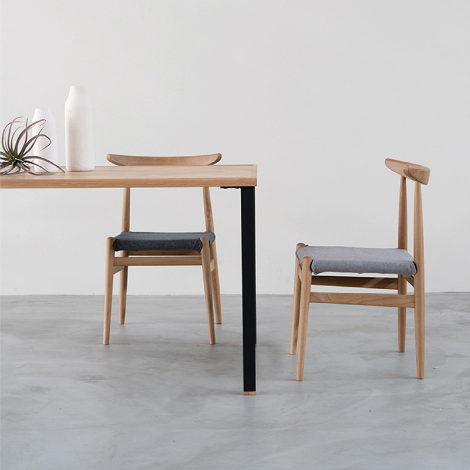 無駄な要素を省いた細身のラインで、軽さと座り心地を追求したダイニングチェア。PVCのカバーを外してメッシュの状態で使えば、座面の通気性も良くモダンな雰囲気に変わります。