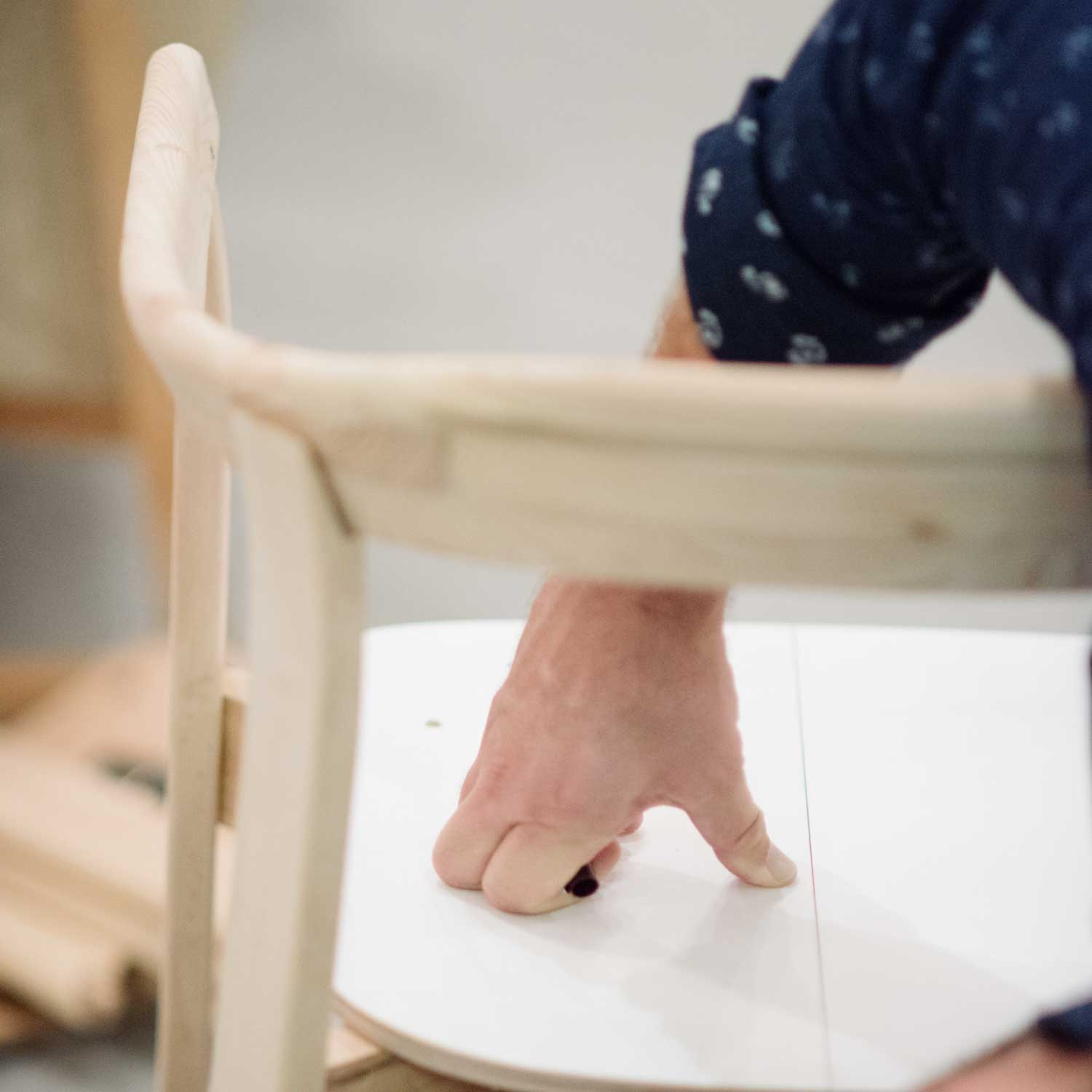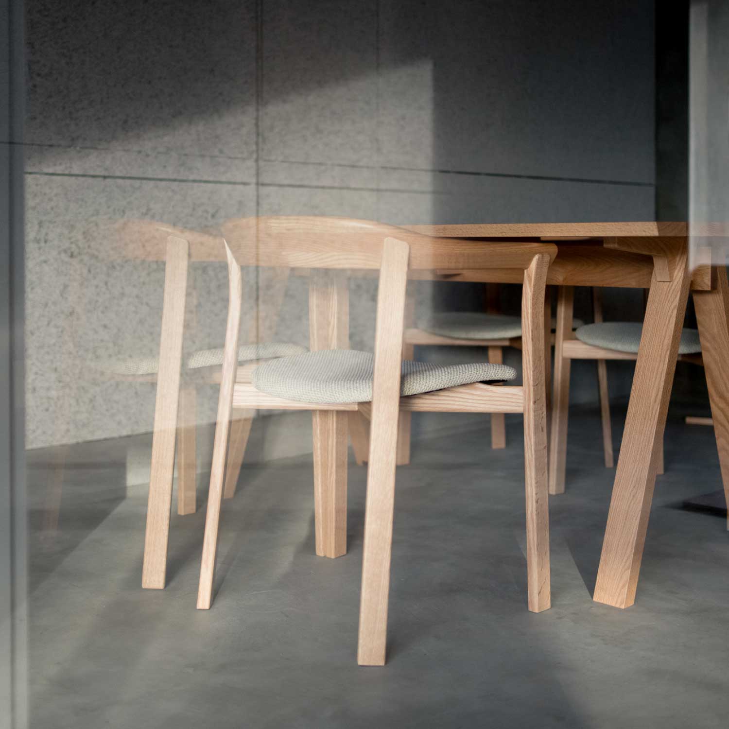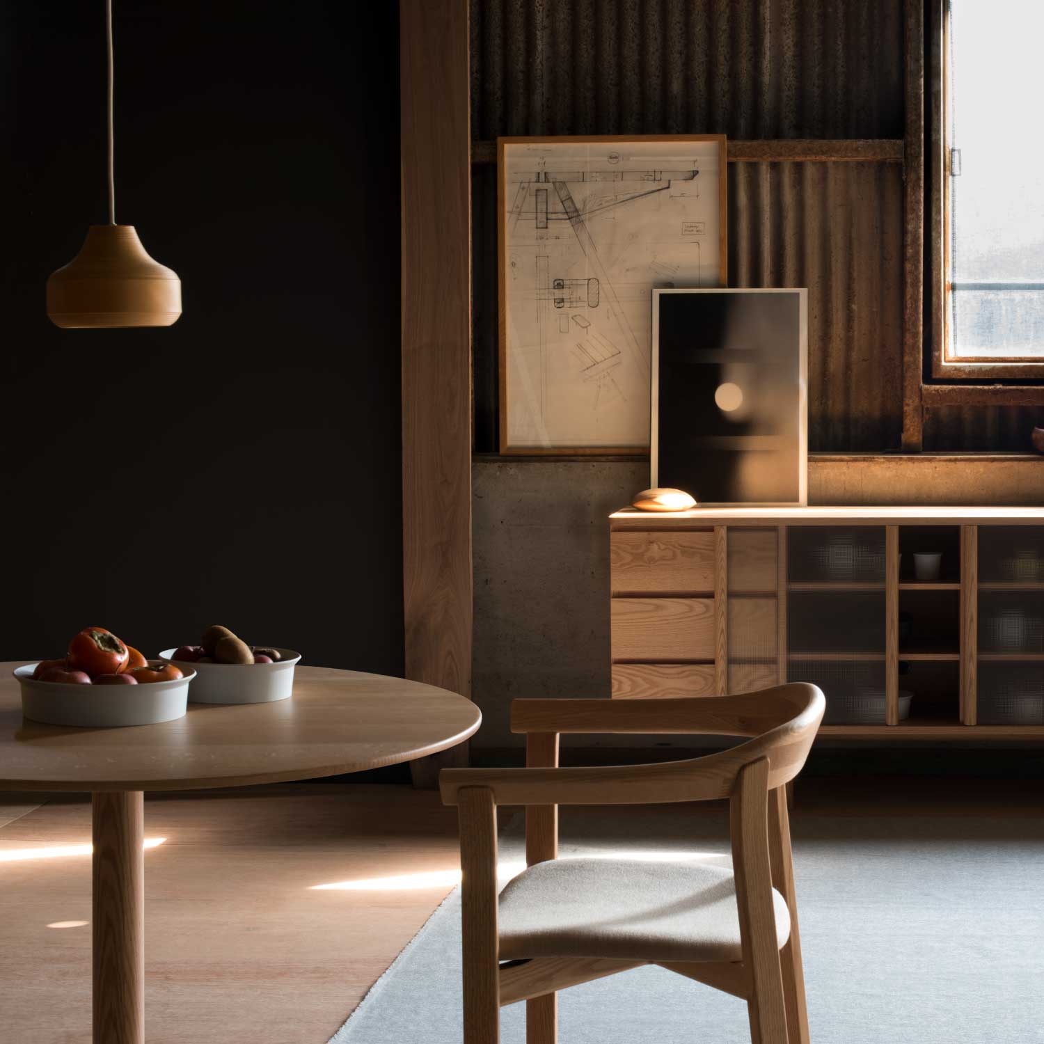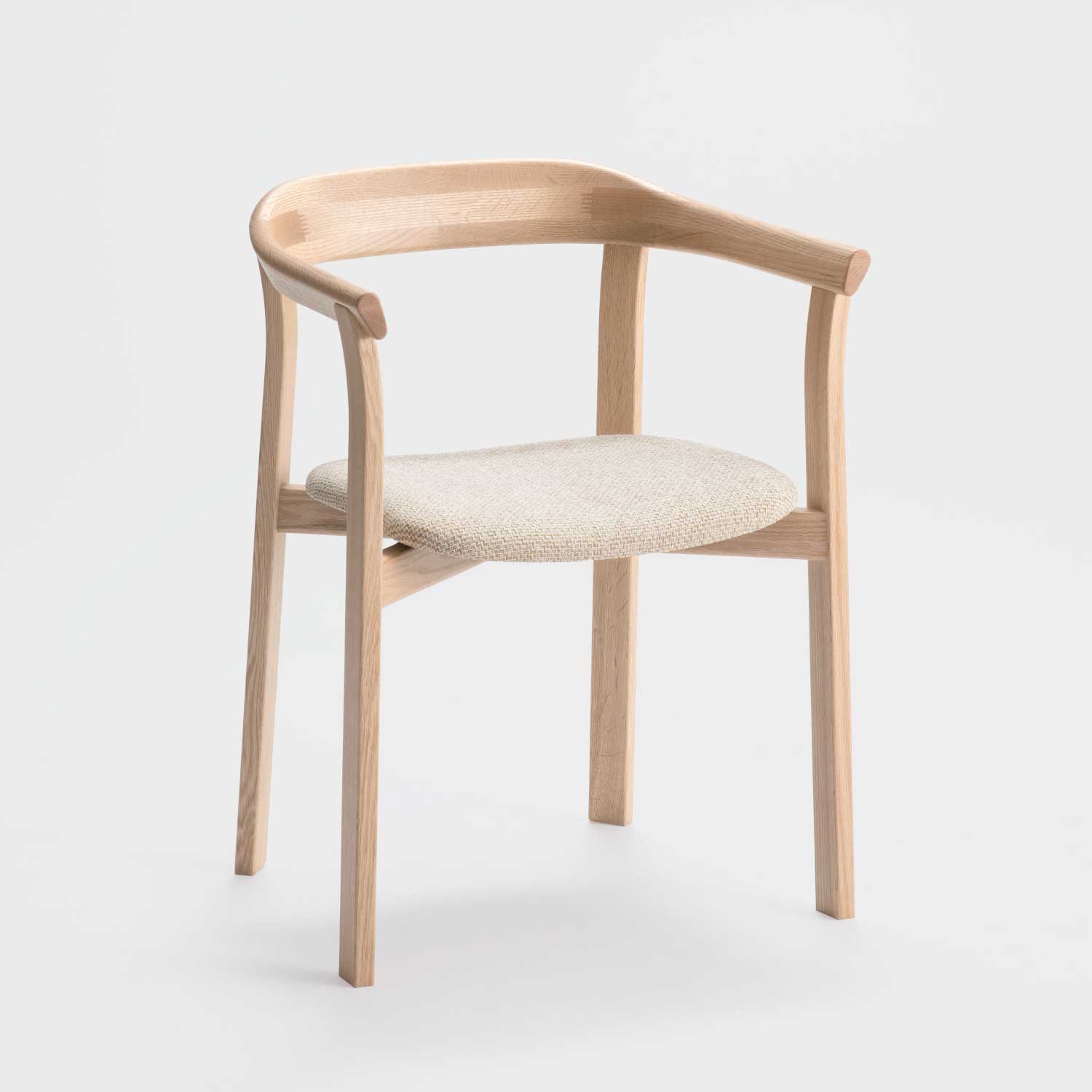 ホルム・チェアは、伝統的な北欧の肘掛け椅子に影響を受け、丈夫な作りと高い快適性を併せ持っています。座面が空中に浮揚するような感覚は、この椅子の軽快感、親しみ易さを生み、どんな場面にもしっくりと馴染みます。肘掛けと脚部の繊細な接続部分に細心の注意を払いました。